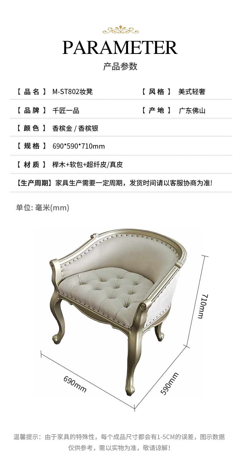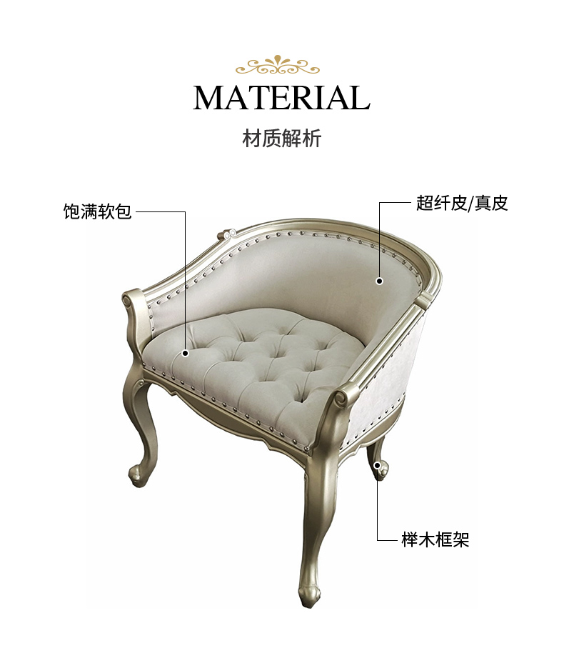 商品名称:【精品】千匠一品 美式轻奢风格 榉木+软包+超纤皮 真皮 时尚大气妆凳M-ST802-J