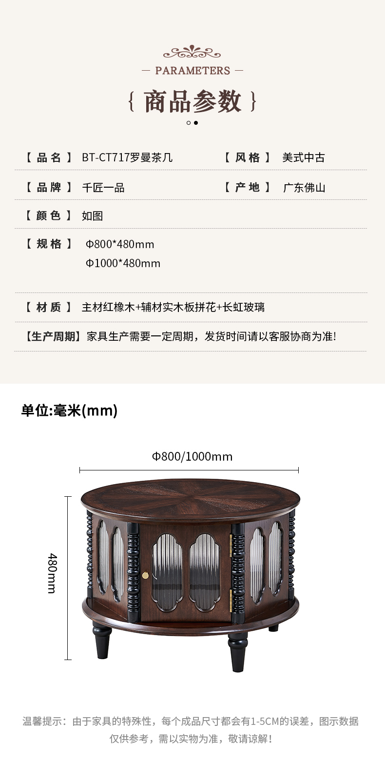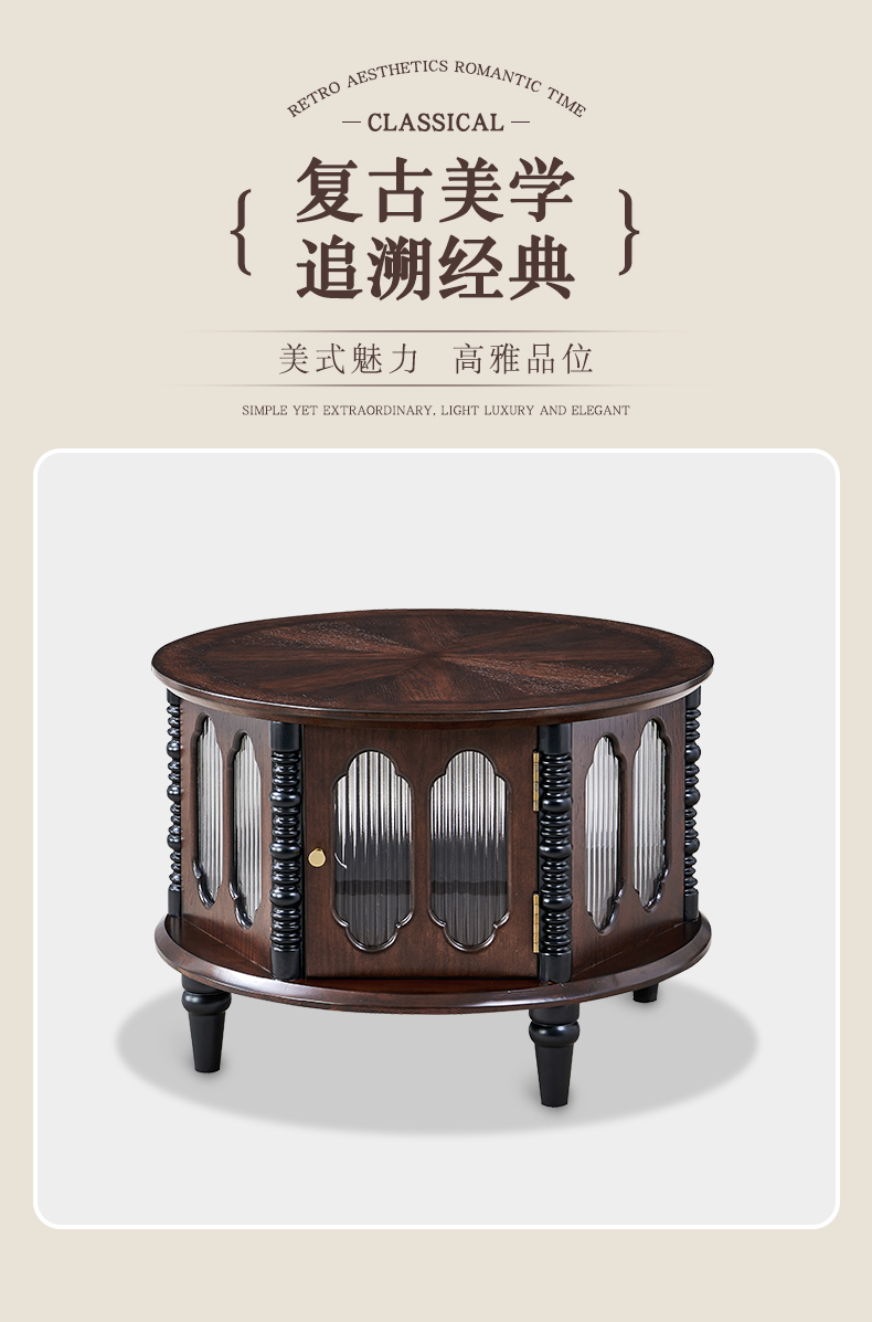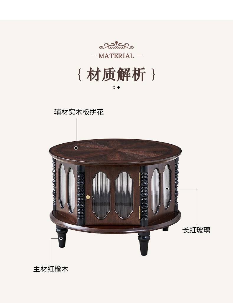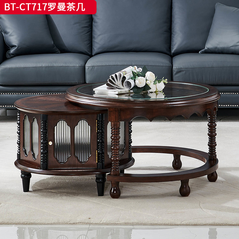 商品名称:【精品】 千匠一品 美式中古风格 主材红橡木+辅材实木板拼花+长虹玻璃 时尚大气罗曼茶几BT-CT717-J
