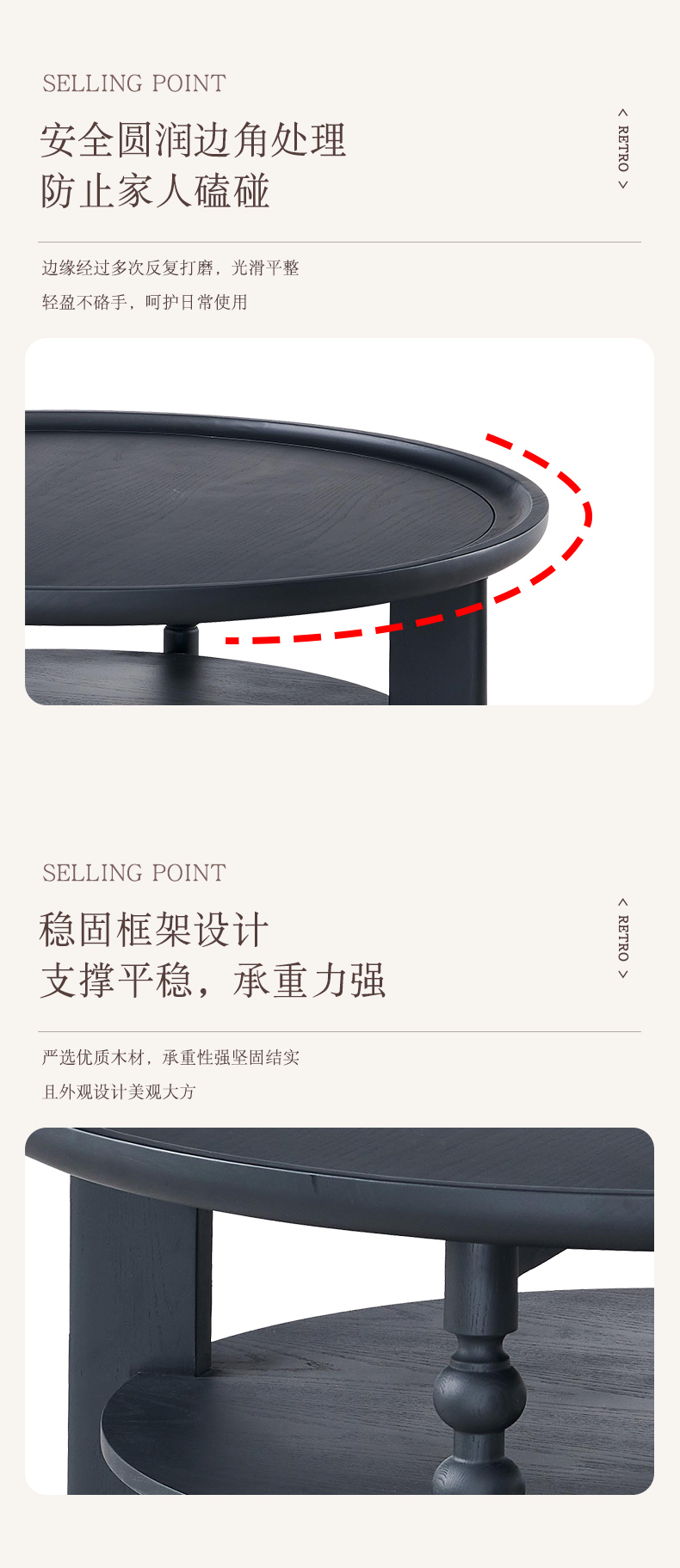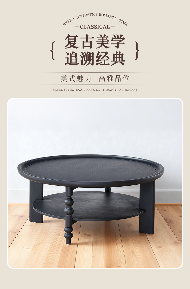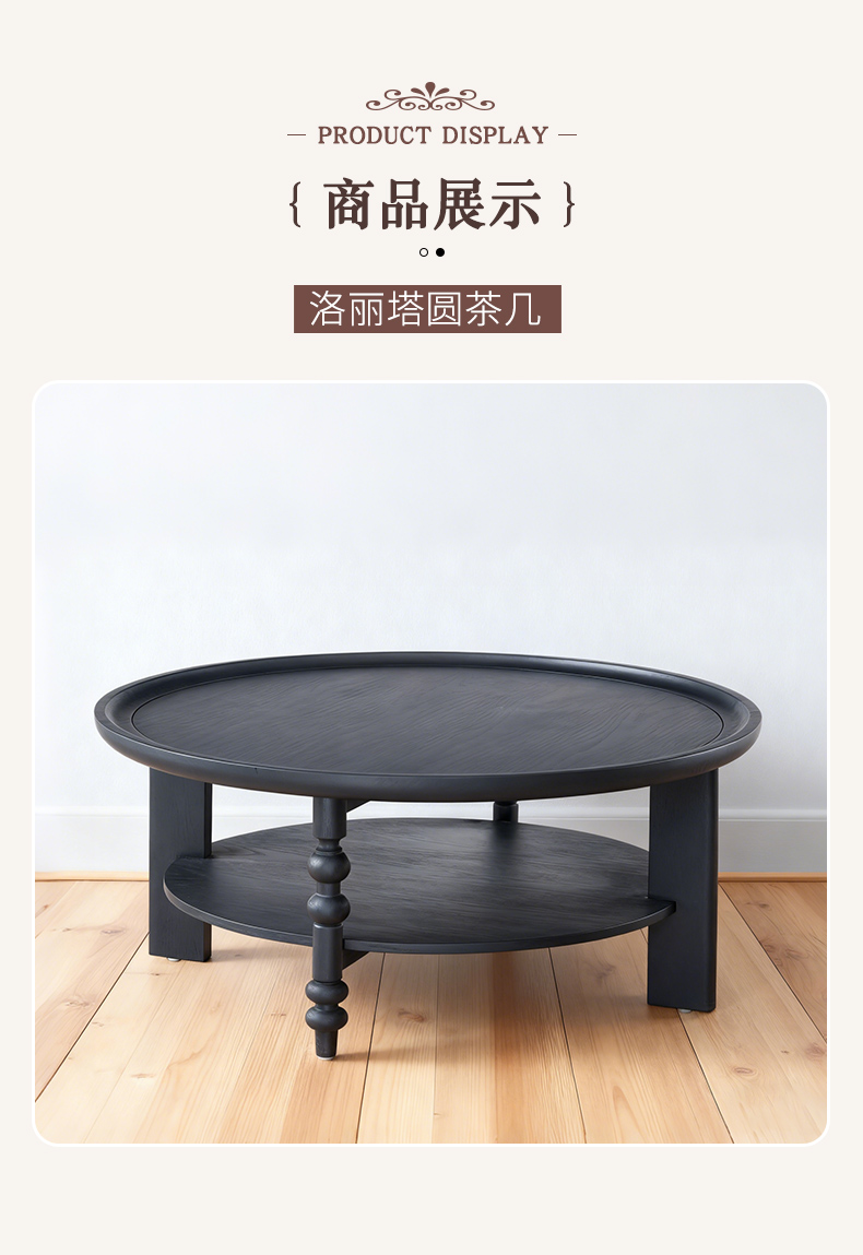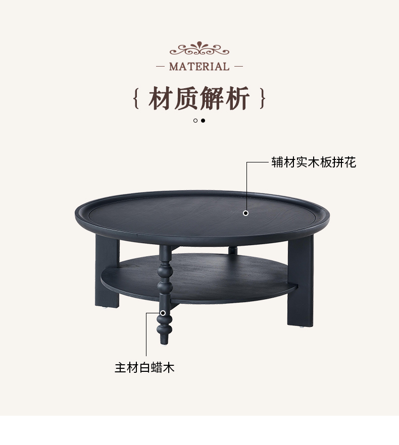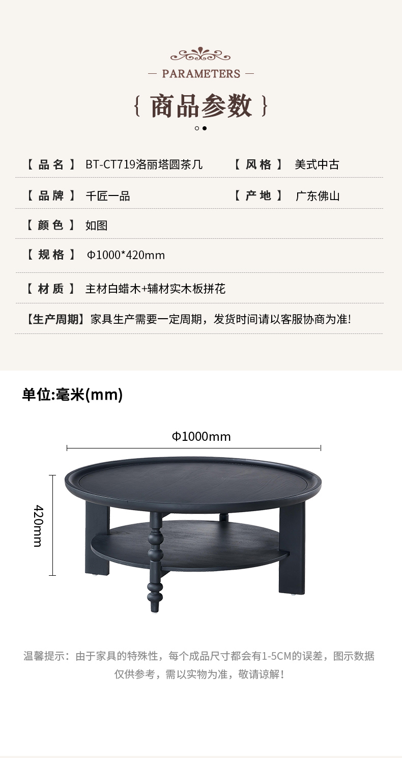 商品名称:【精品】 千匠一品 美式中古风格 主材白蜡木+辅材实木板拼花 时尚大气洛丽塔圆茶几BT-CT719-J