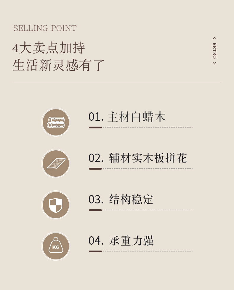 【精品】 千匠一品 美式中古风格 主材红橡木+辅材实木拼花+长虹玻璃 时尚大气摩尔圆几-J