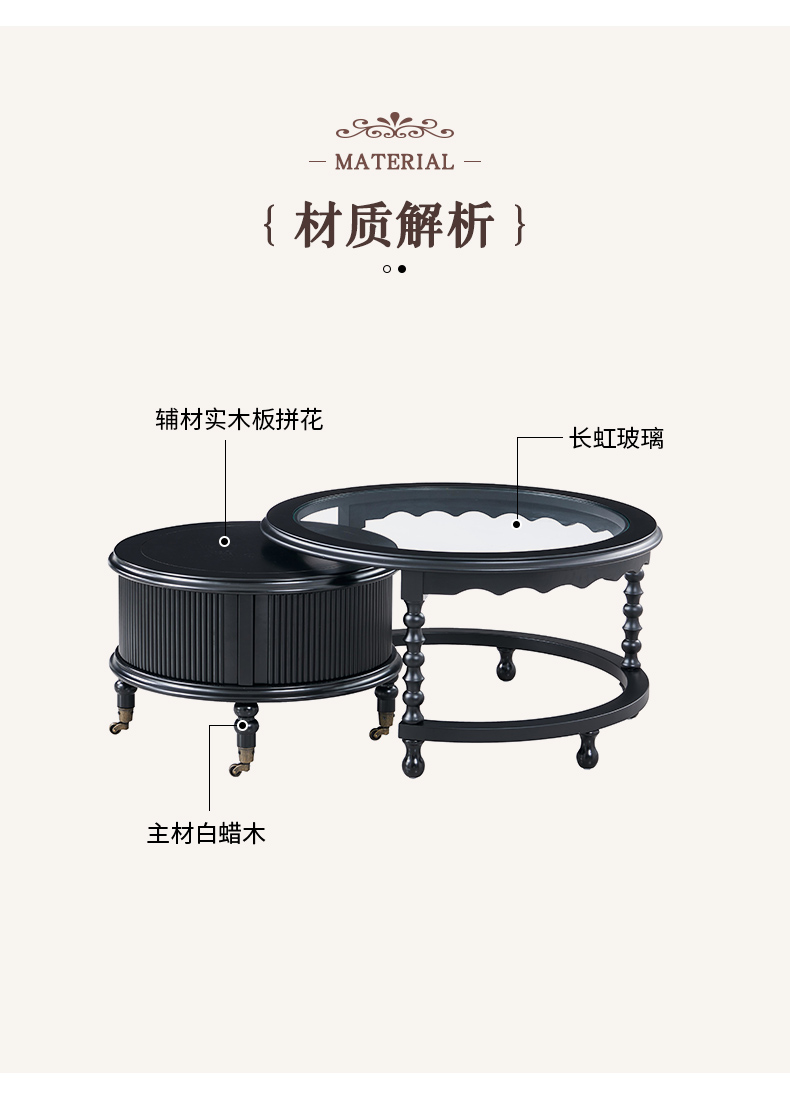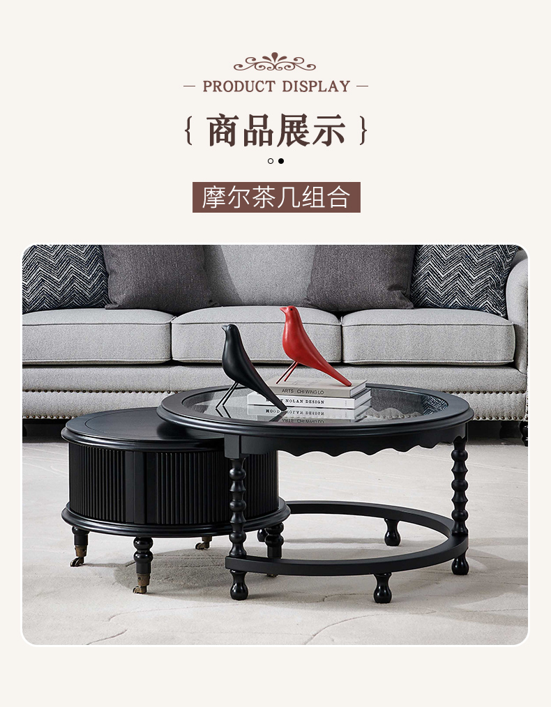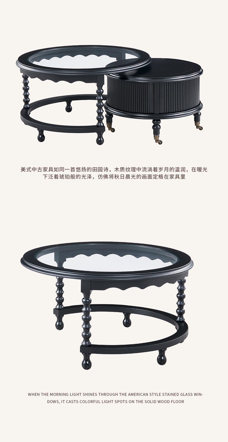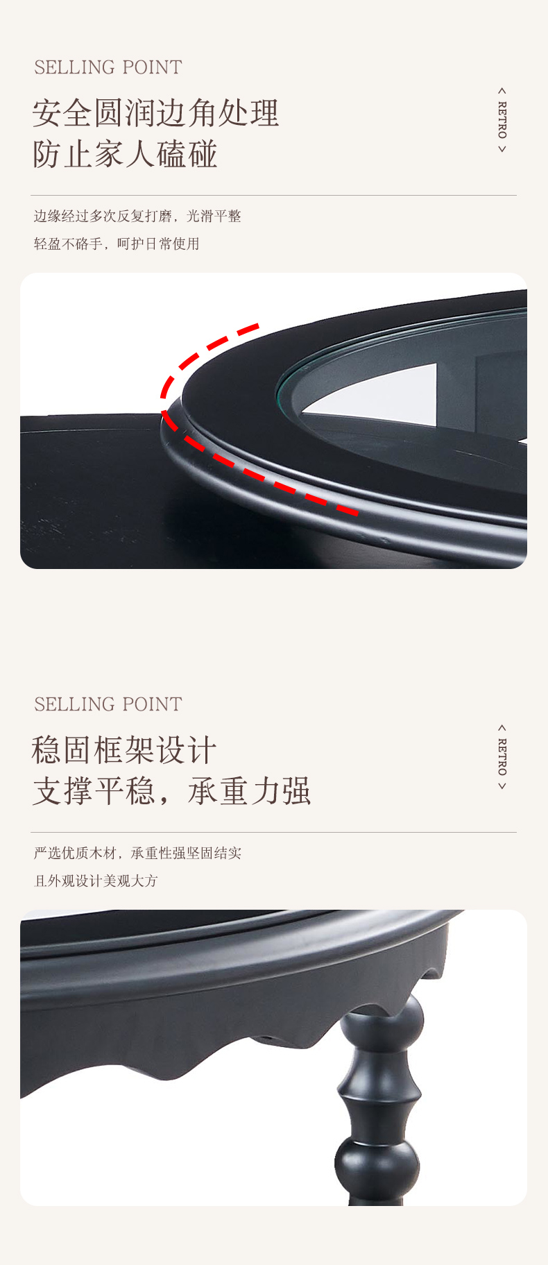 商品名称:【精品】 千匠一品 美式中古风格 主材红橡木+辅材实木拼花+长虹玻璃 时尚大气摩尔圆几-J