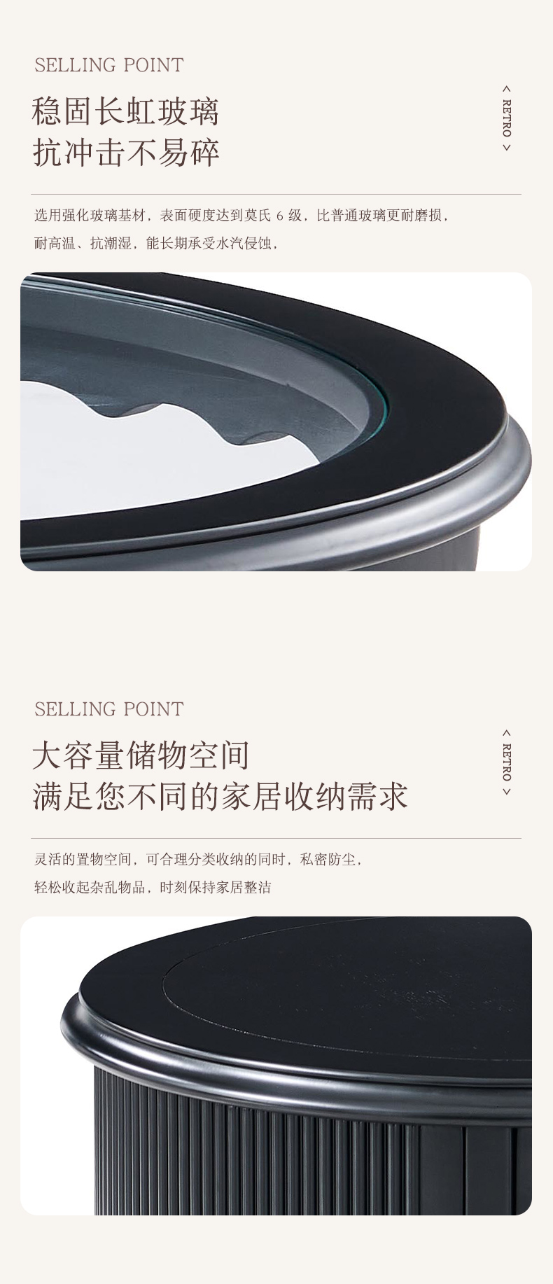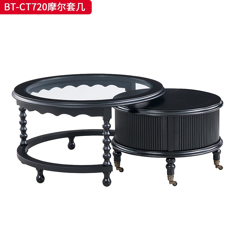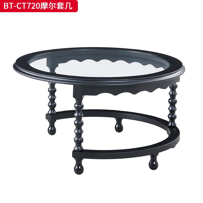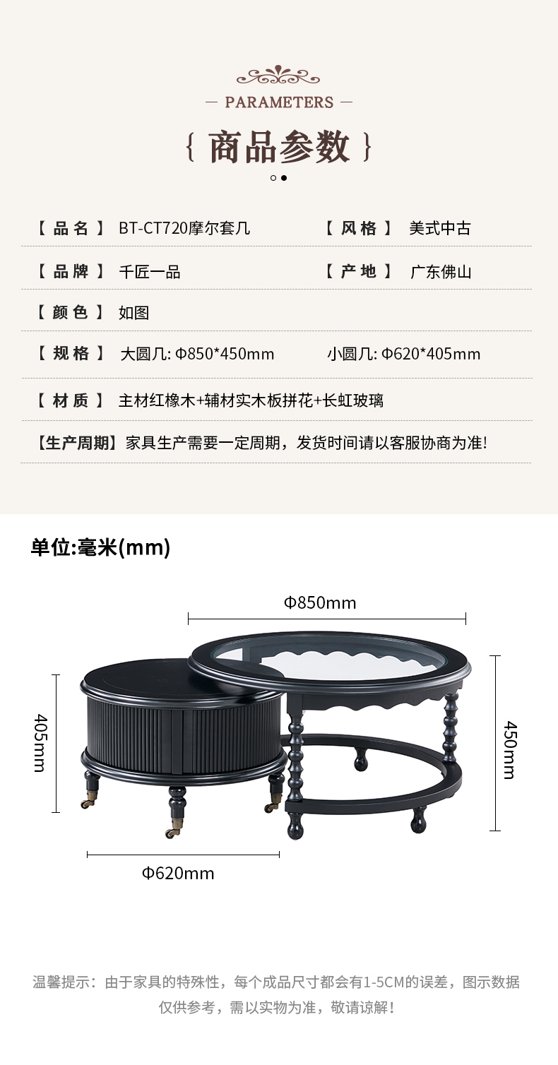 商品名称:【精品】 千匠一品 美式中古风格 主材红橡木+辅材实木拼花+长虹玻璃 时尚大气摩尔圆几-J