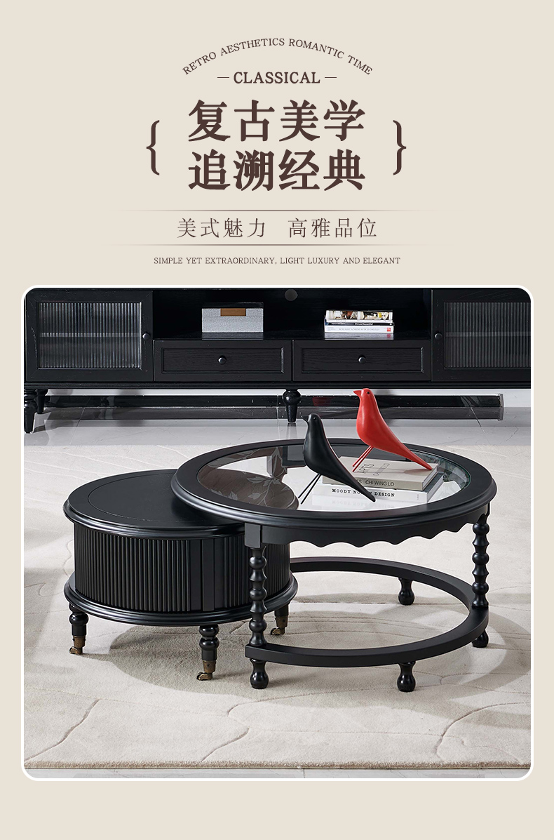 【精品】 千匠一品 美式中古风格 主材红橡木+辅材实木拼花+长虹玻璃 时尚大气摩尔圆几-J