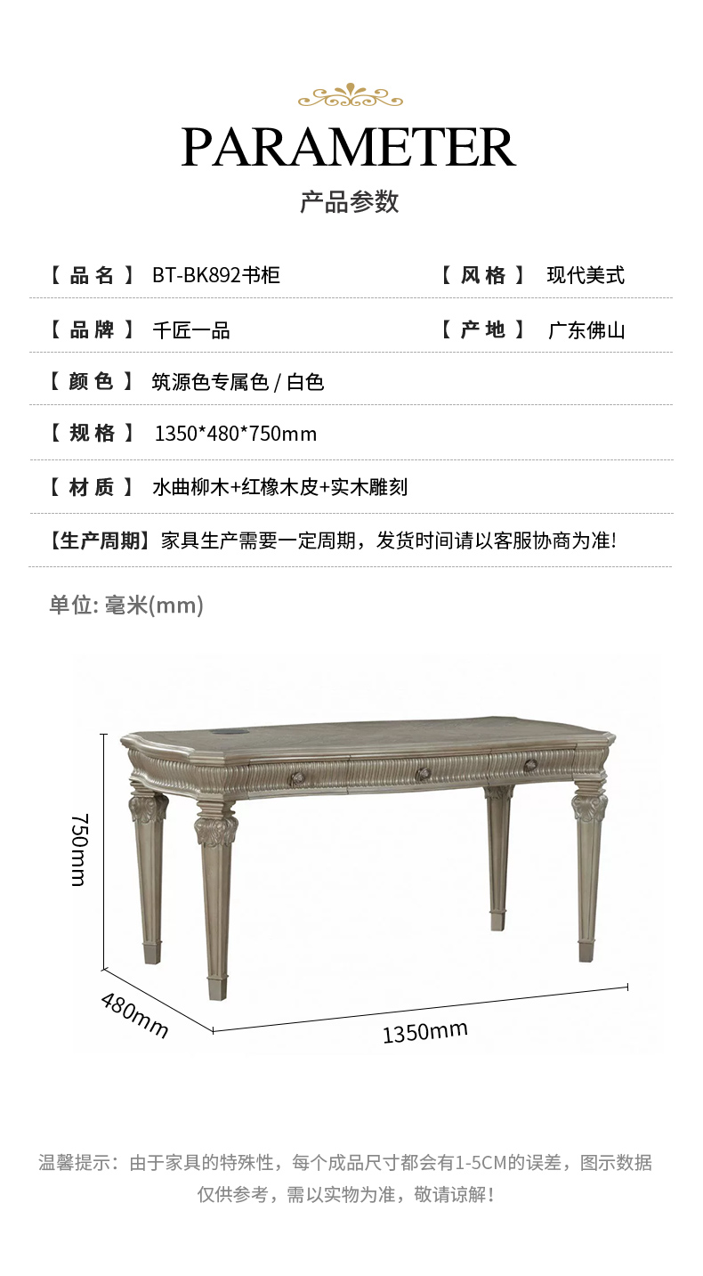 商品名称:【精品】千匠一品 现代美式风格 水曲柳木+红橡木皮+实木雕刻 时尚大气书柜BT-BK892-L