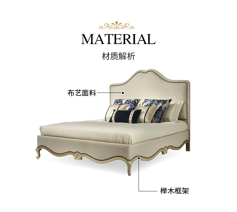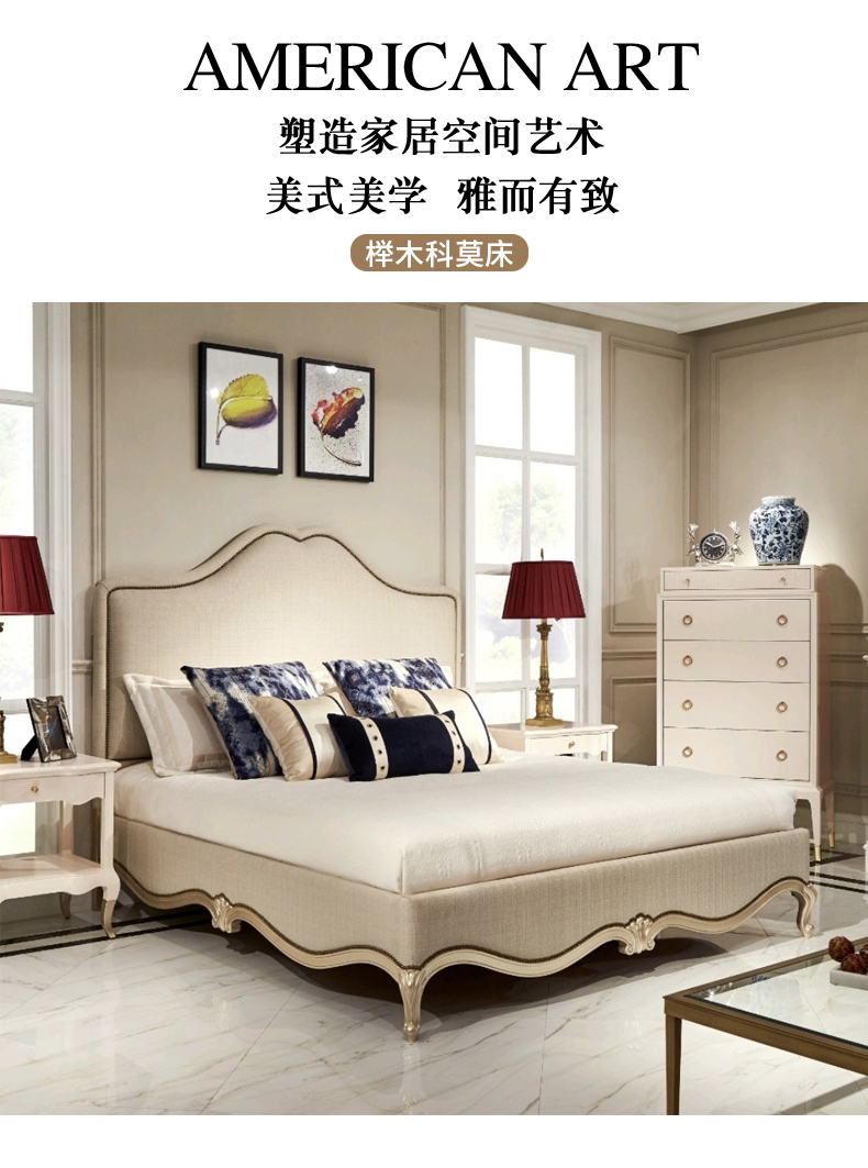 【精品】千匠一品 美式轻奢风格 榉木+布艺 时尚大气科莫床M-BD626-L