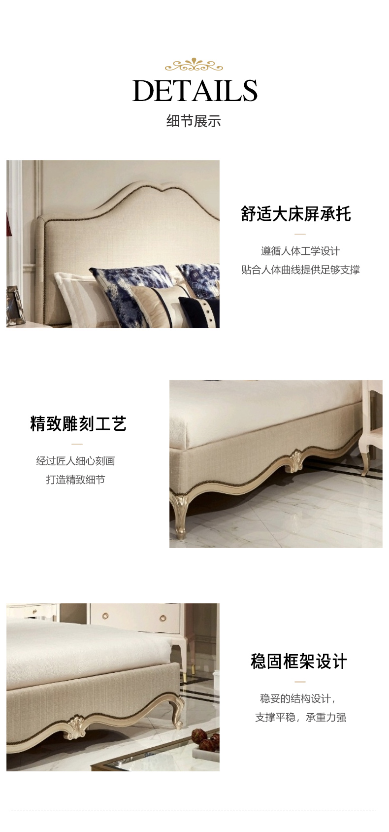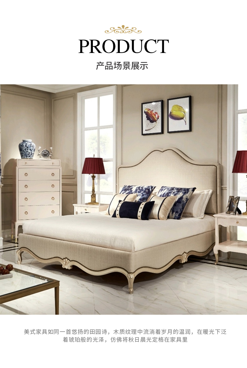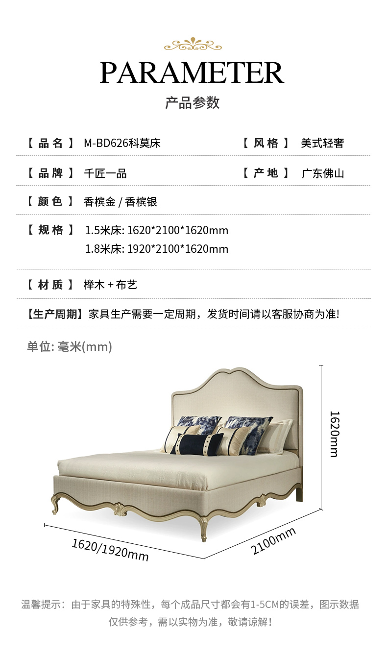 商品名称:【精品】千匠一品 美式轻奢风格 榉木+布艺 时尚大气科莫床M-BD626-L