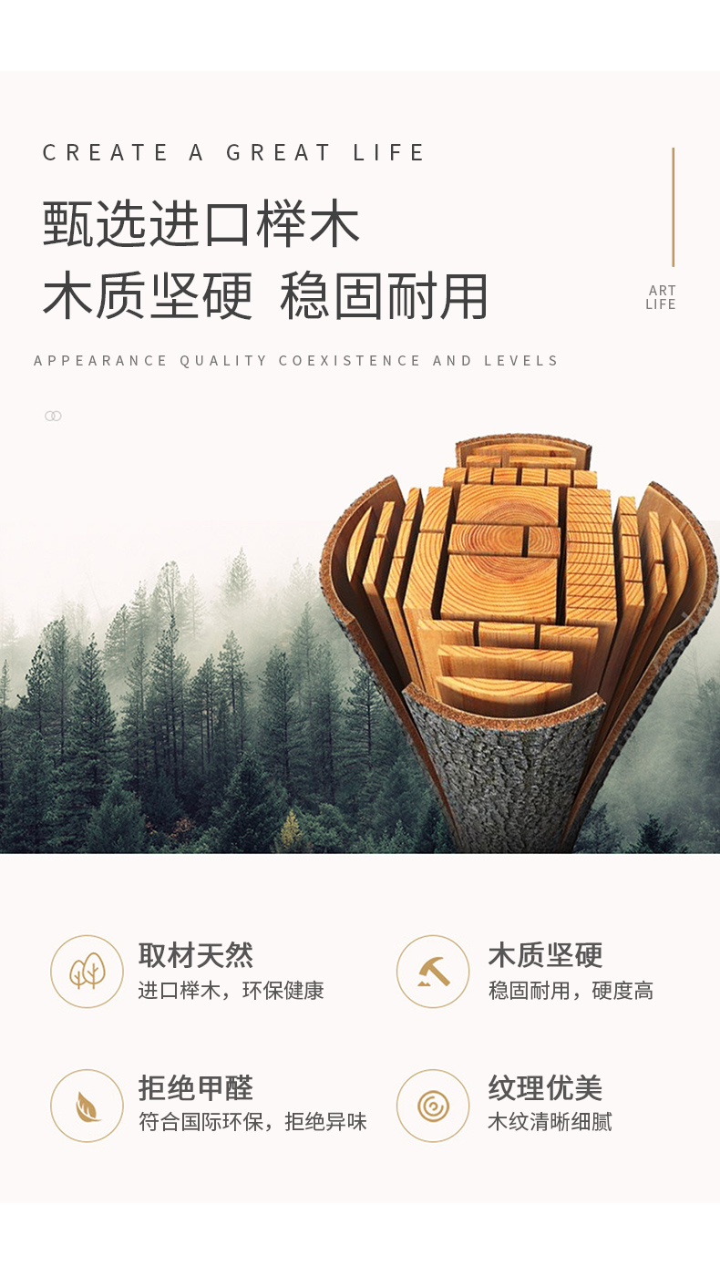 【精品】千匠一品 美式轻奢风格 榉木 时尚大气床头柜M-NT801-L