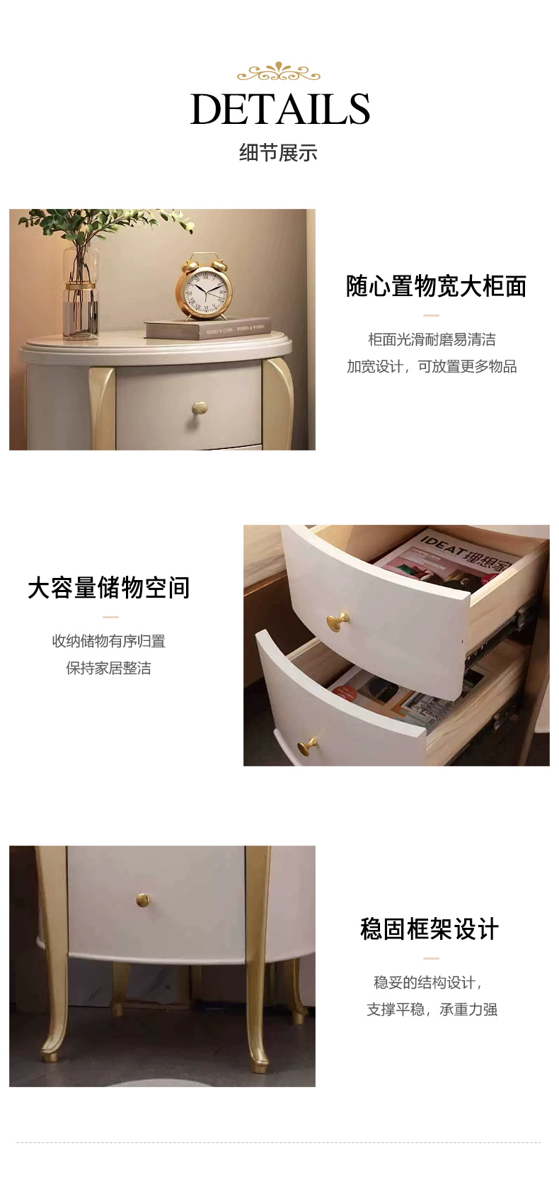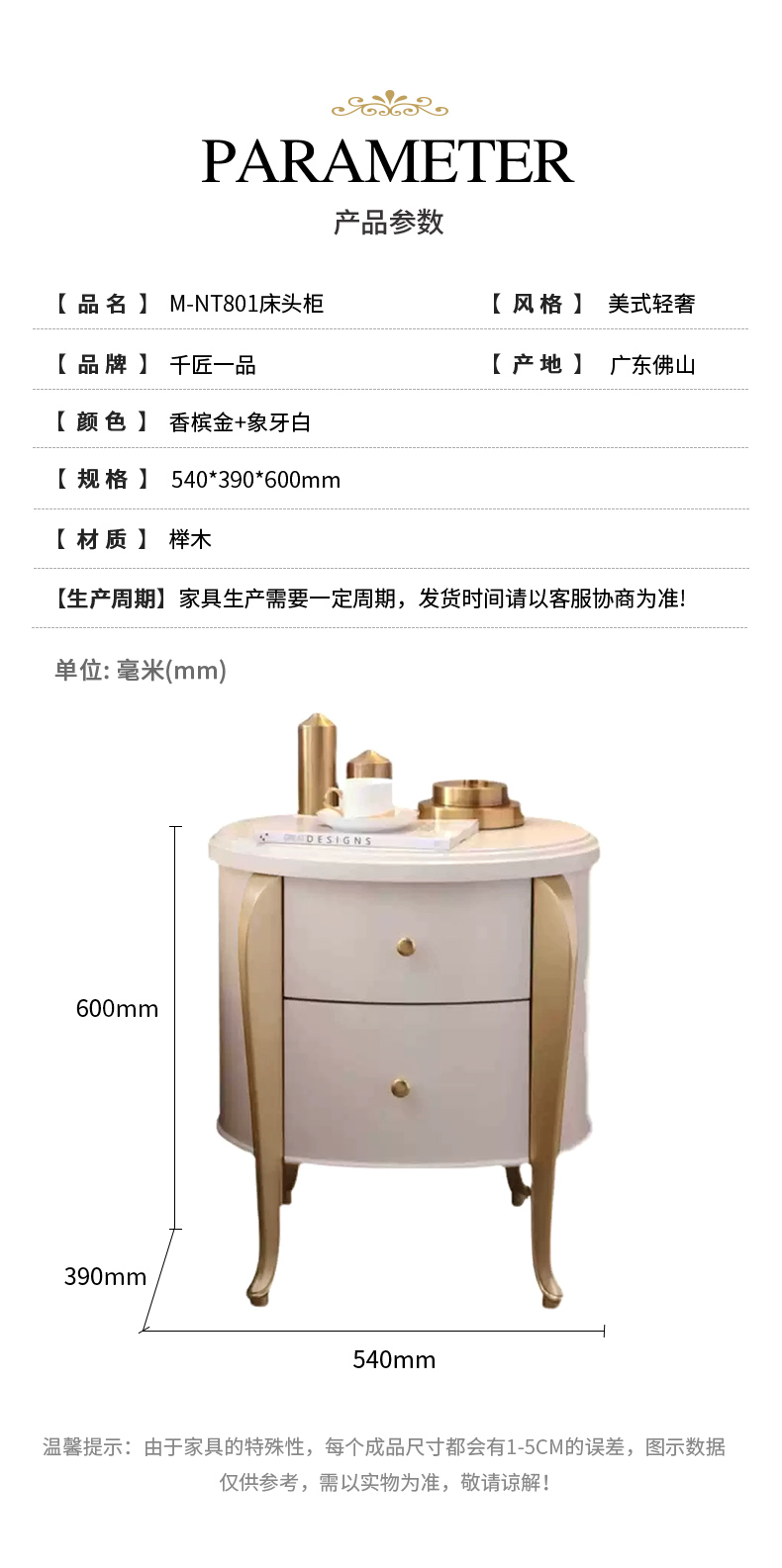 商品名称:【精品】千匠一品 美式轻奢风格 榉木 时尚大气床头柜M-NT801-L