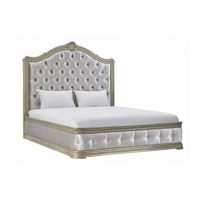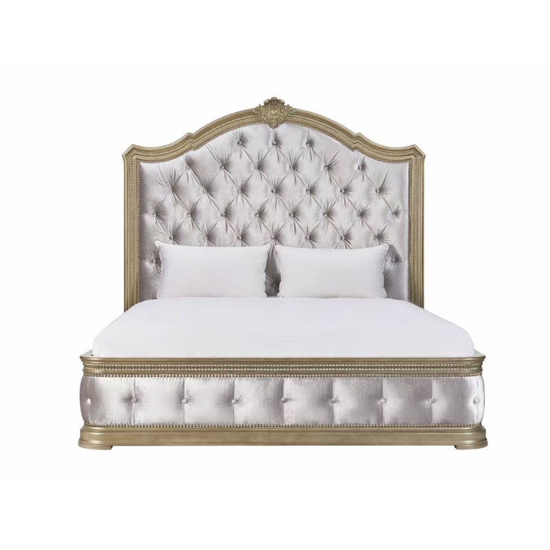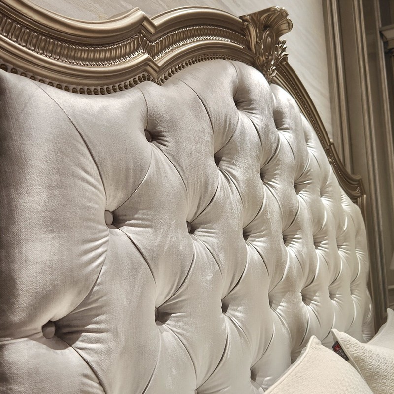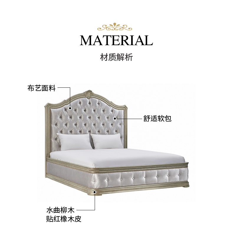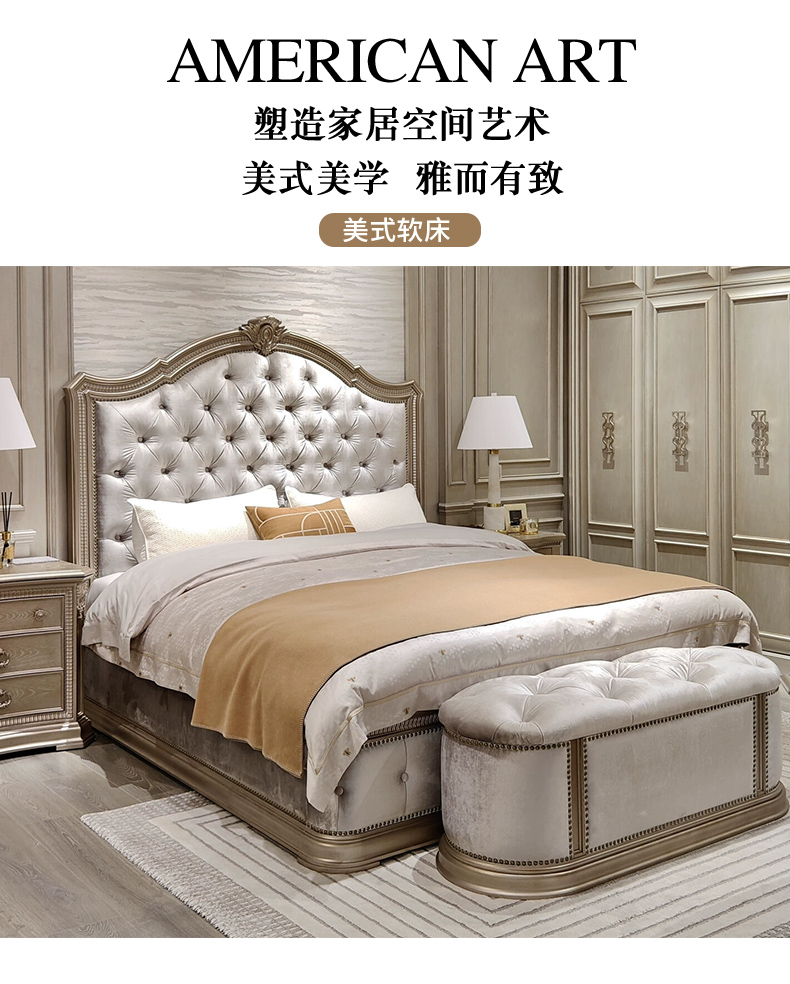 【精品】千匠一品 现代美式风格 水曲柳木+红橡木皮+实木雕刻+布艺+高回弹海绵 时尚大气床BT-BD892-L