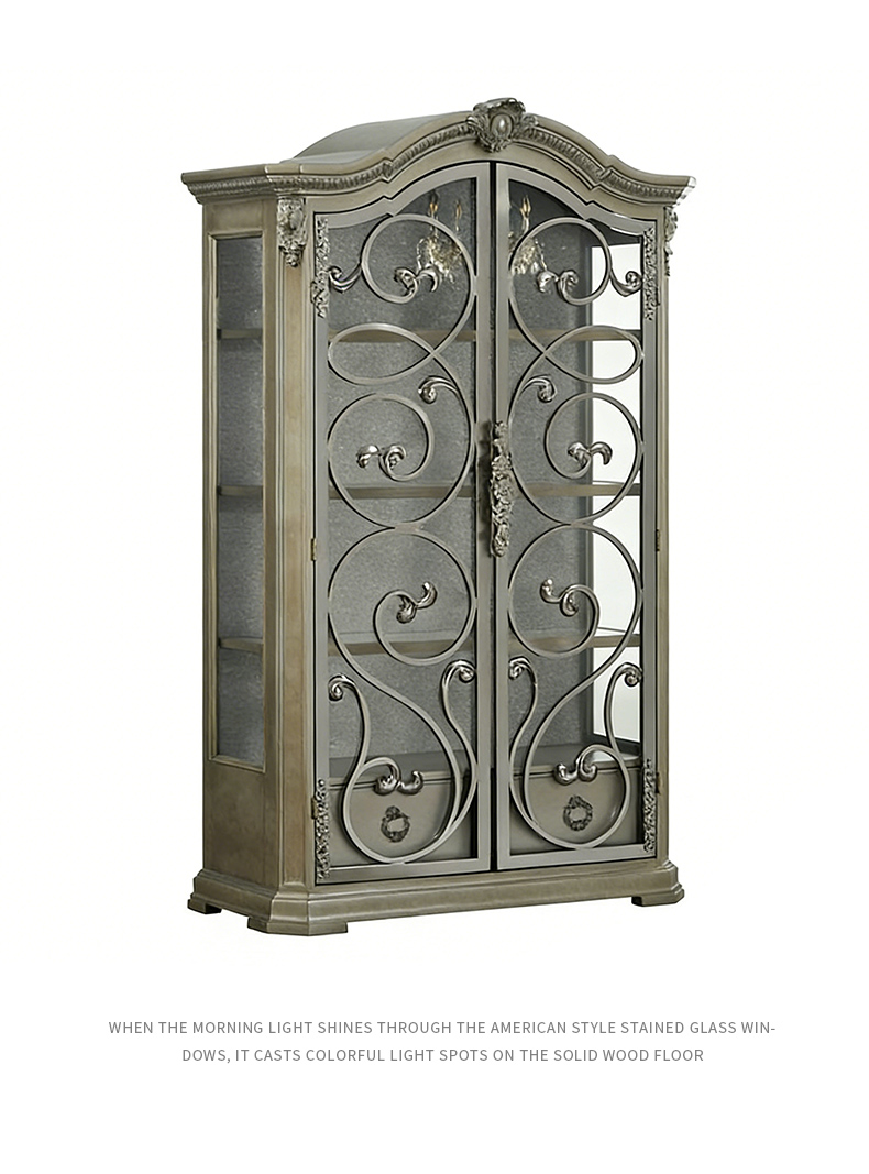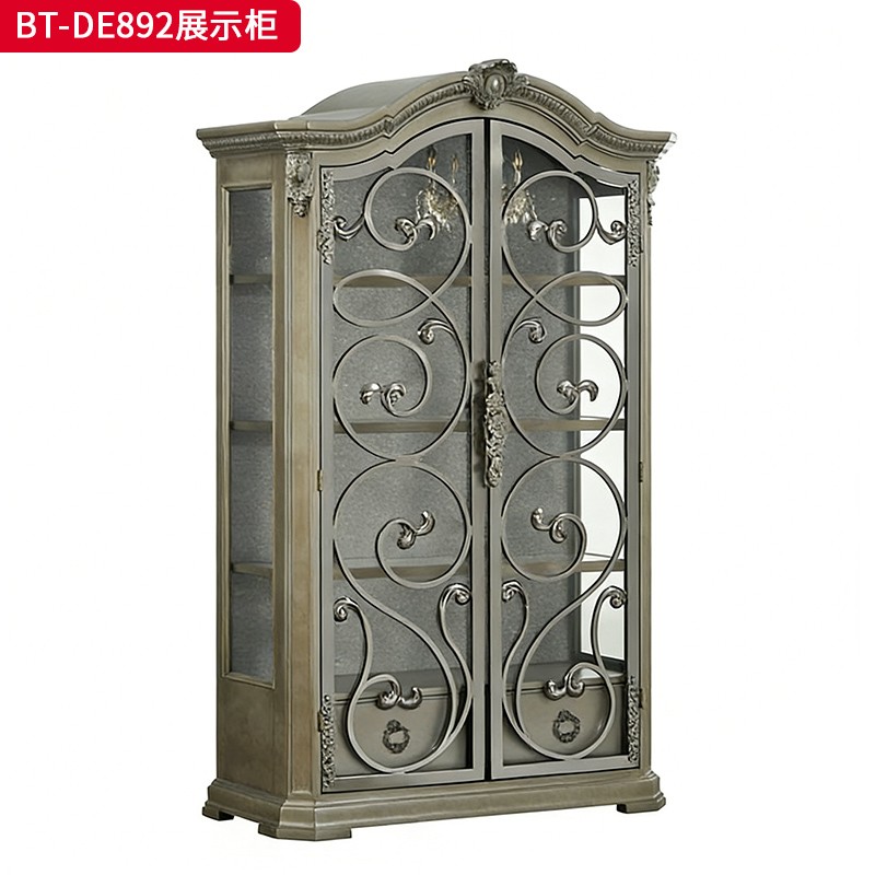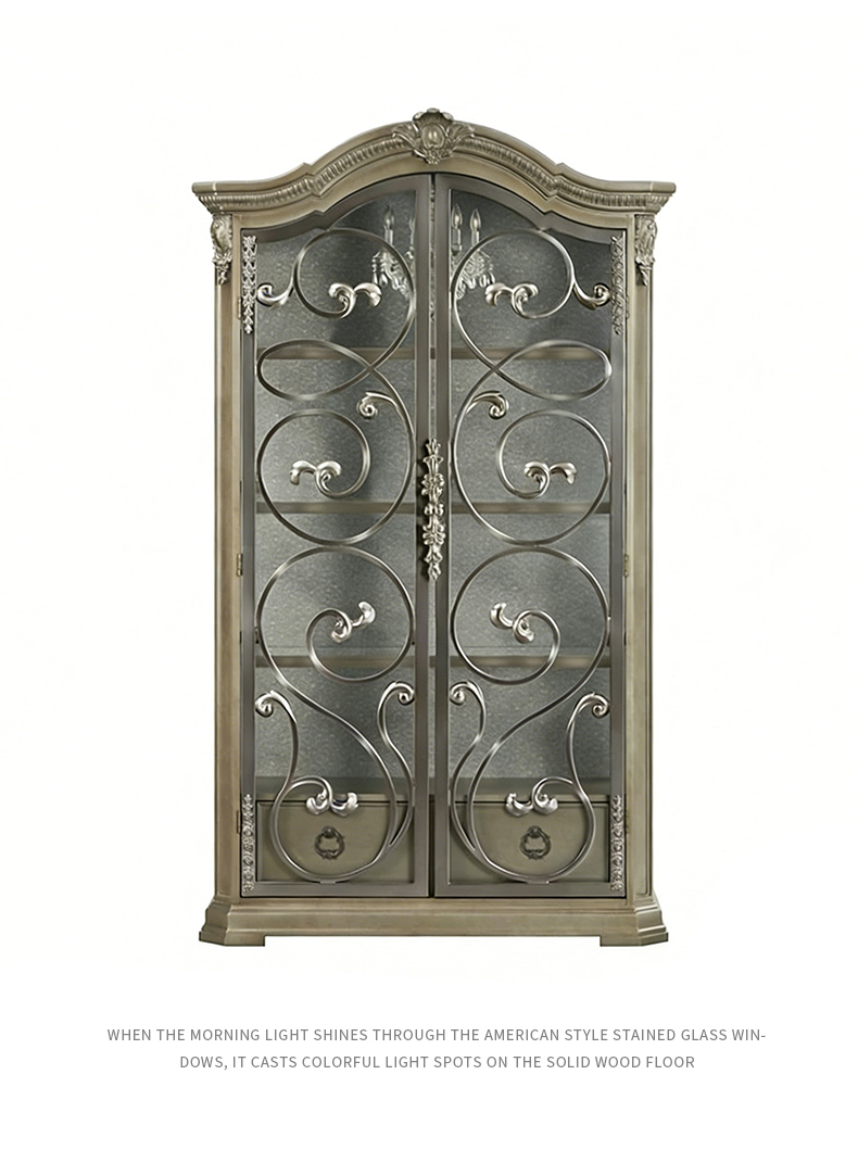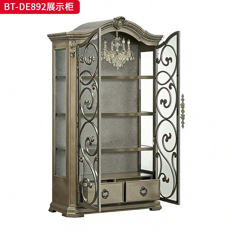 【精品】千匠一品 现代美式风格 水曲柳木+红橡木皮+实木雕刻+玻璃柜门+五金件 时尚大气展示柜BT-DE892-L