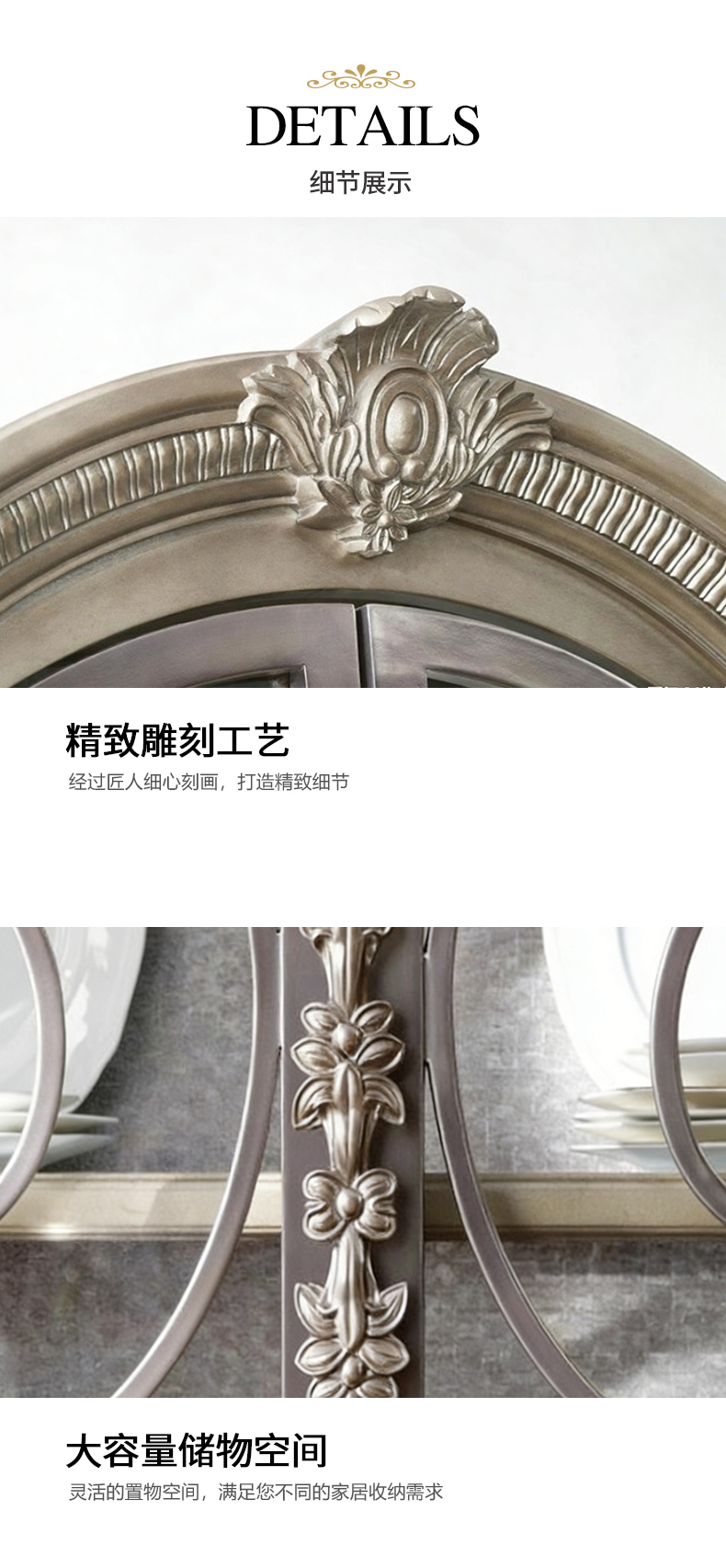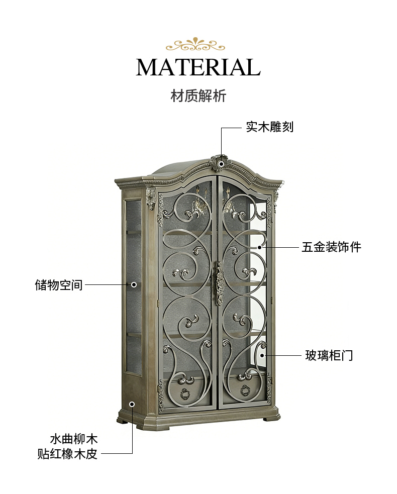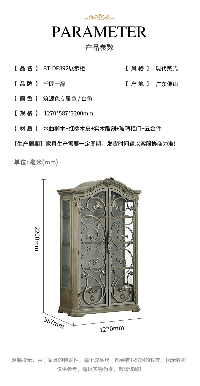 商品名称:【精品】千匠一品 现代美式风格 水曲柳木+红橡木皮+实木雕刻+玻璃柜门+五金件 时尚大气展示柜BT-DE892-L