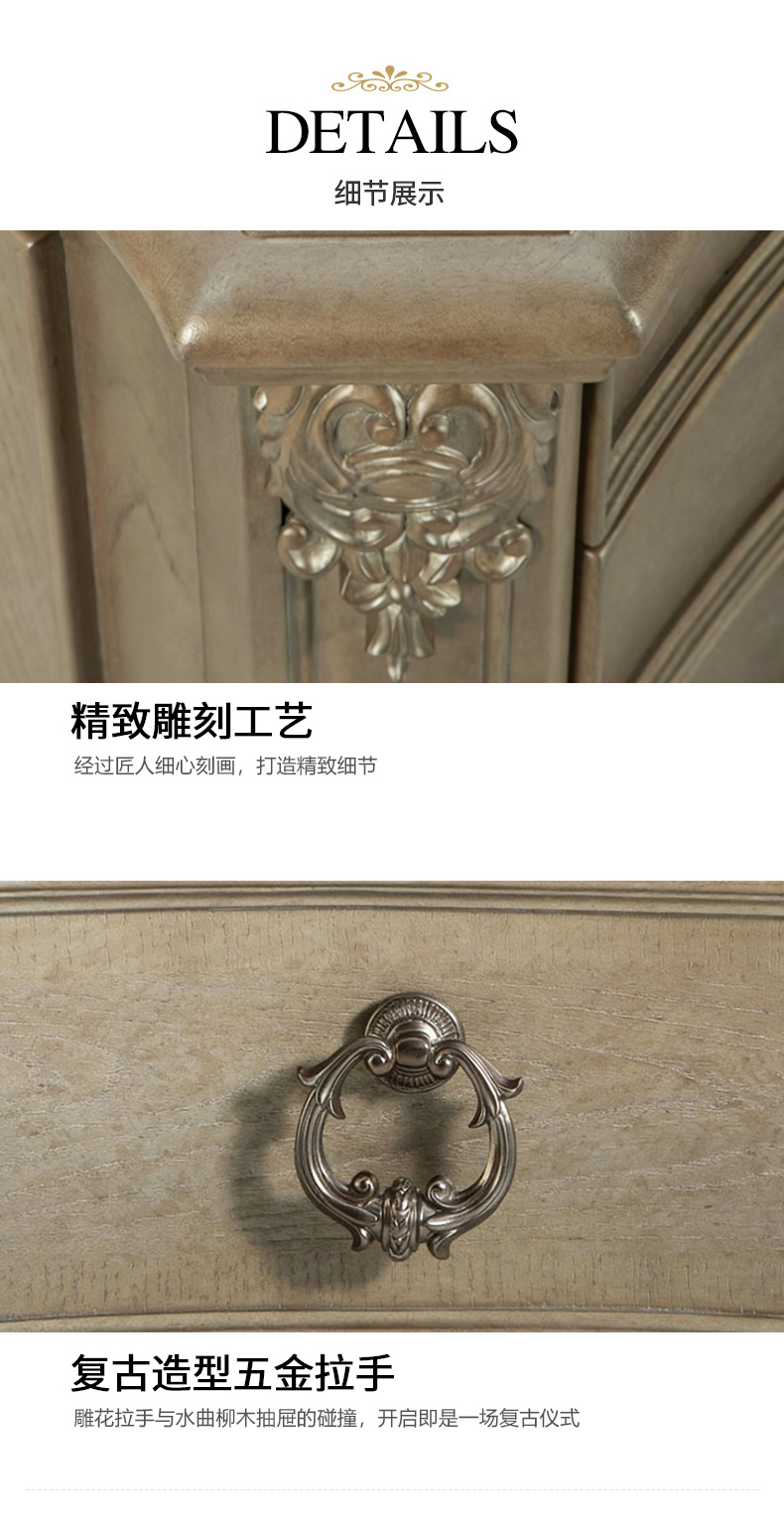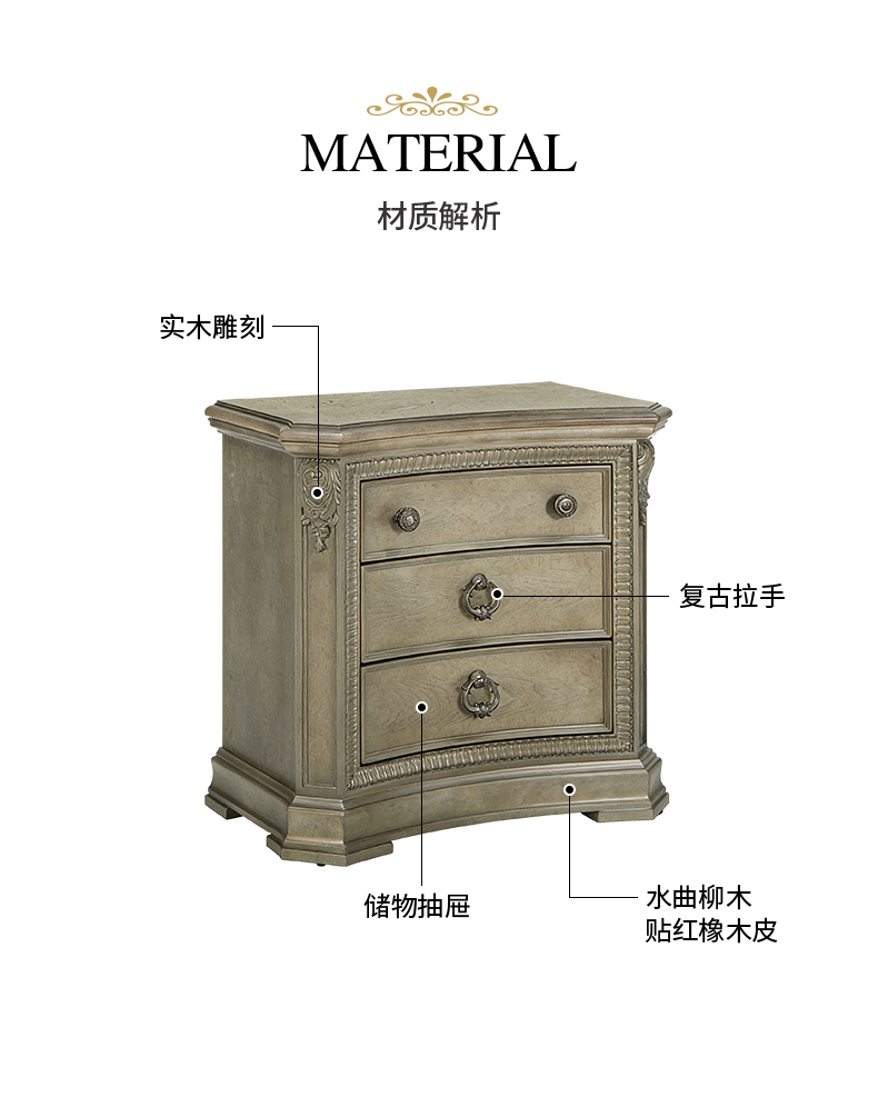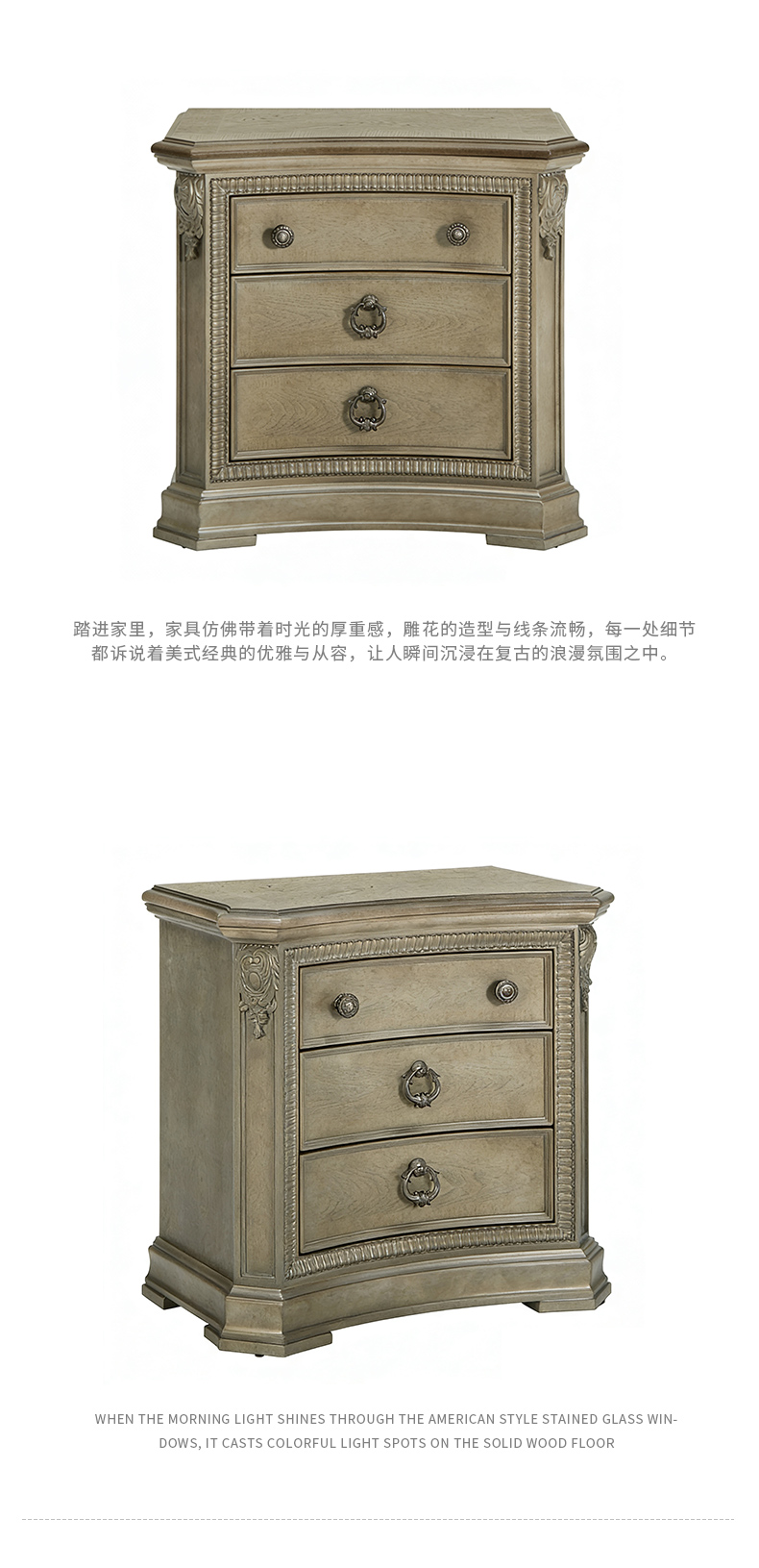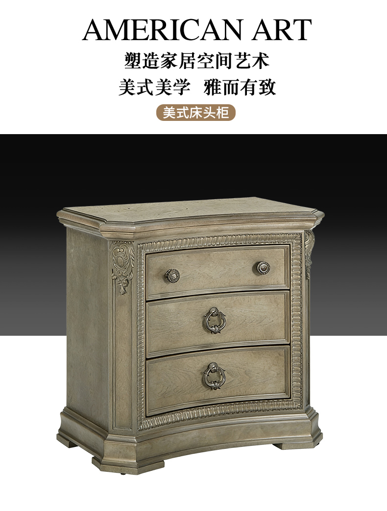 【精品】千匠一品 现代美式风格 水曲柳木+红橡木皮+实木雕刻 时尚大气床头柜BT-NT892-L