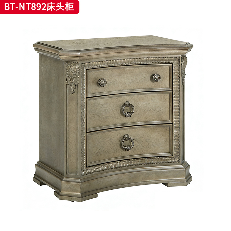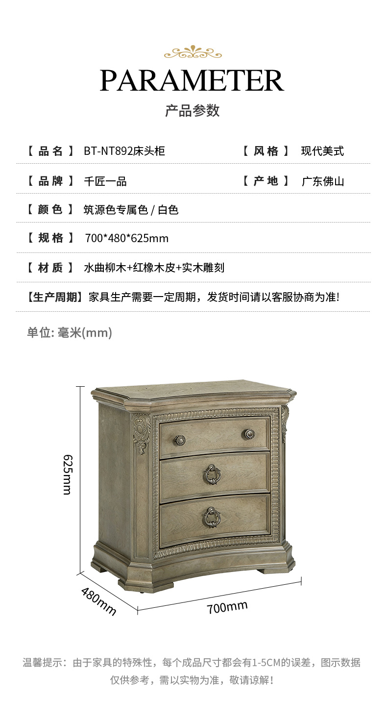 商品名称:【精品】千匠一品 现代美式风格 水曲柳木+红橡木皮+实木雕刻 时尚大气床头柜BT-NT892-L