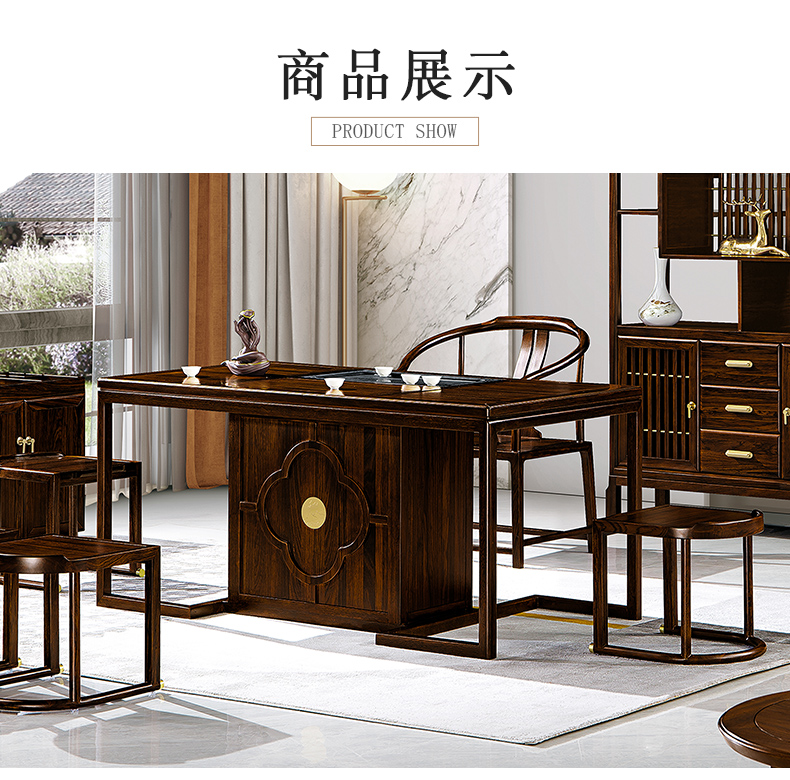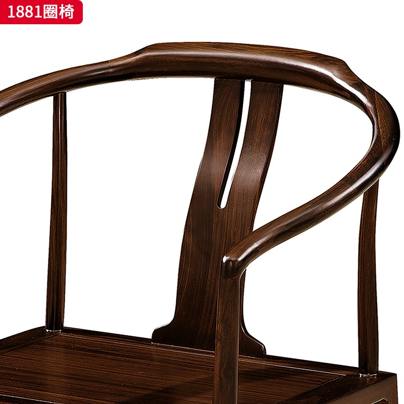 千匠一品 新中式风格 主材乌金木+辅材多层板贴乌金木皮 时尚大气圈椅1881-L