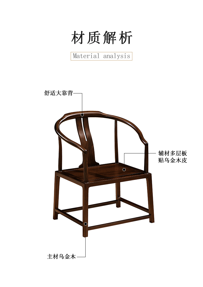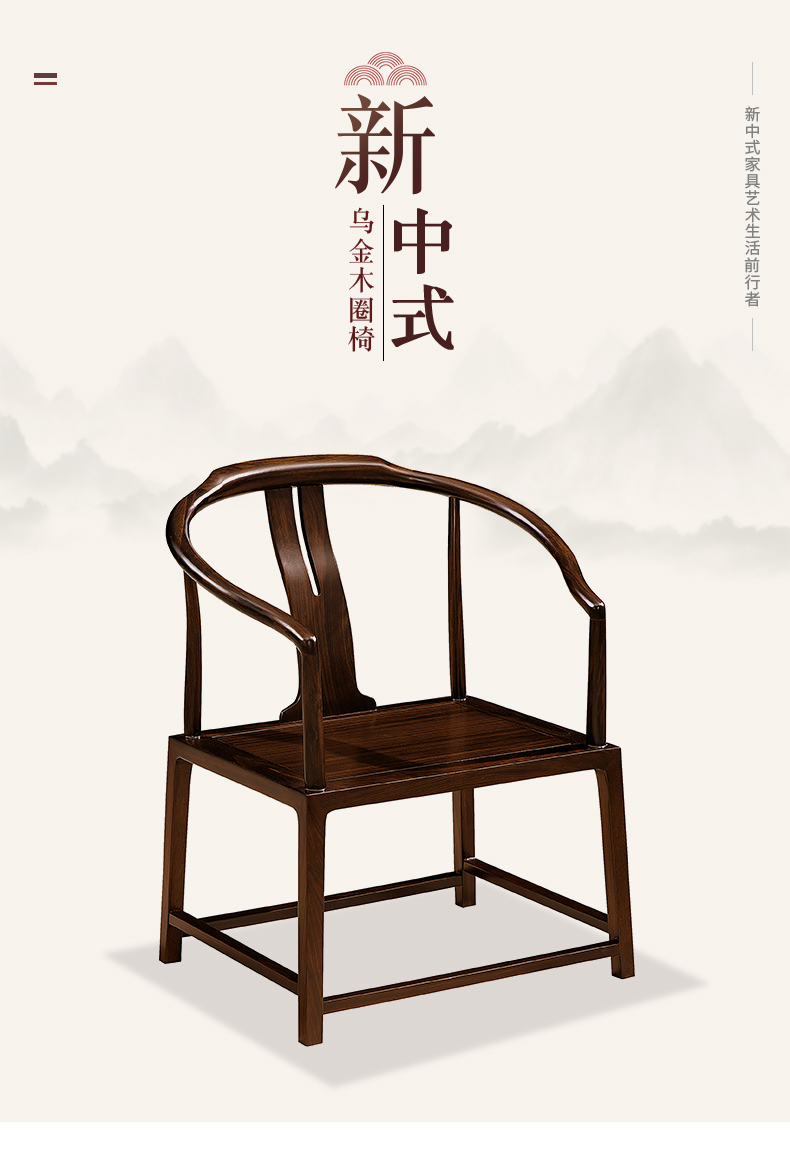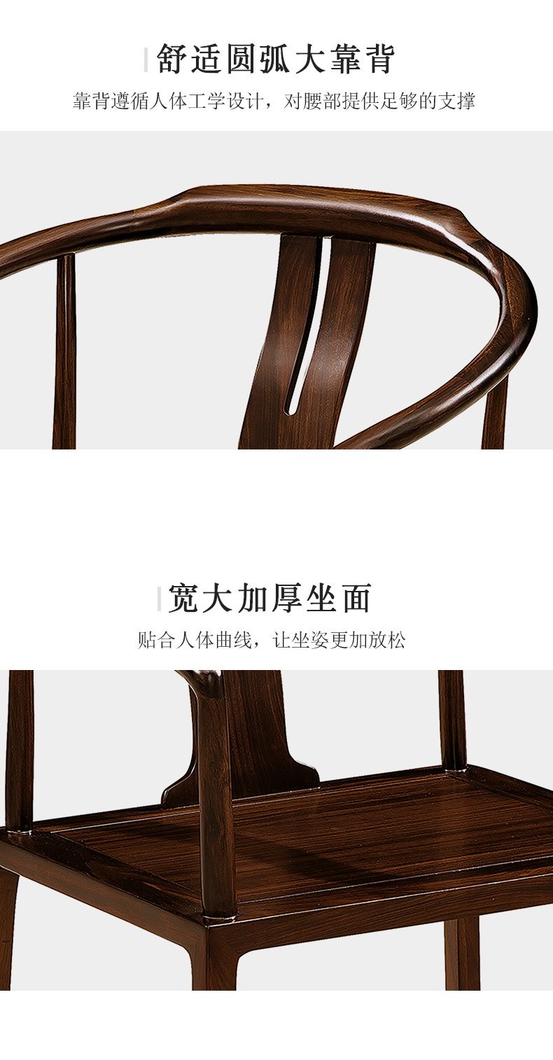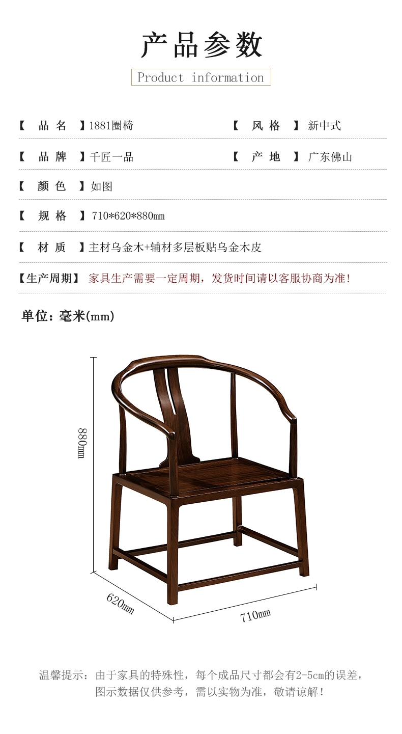商品名称:千匠一品 新中式风格 主材乌金木+辅材多层板贴乌金木皮 时尚大气圈椅1881-L