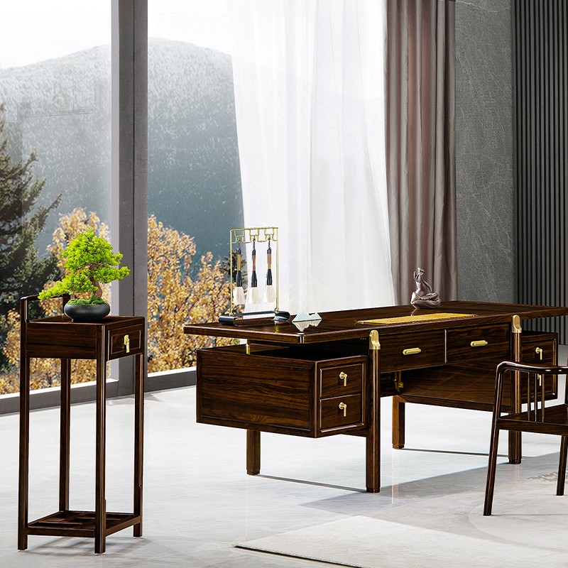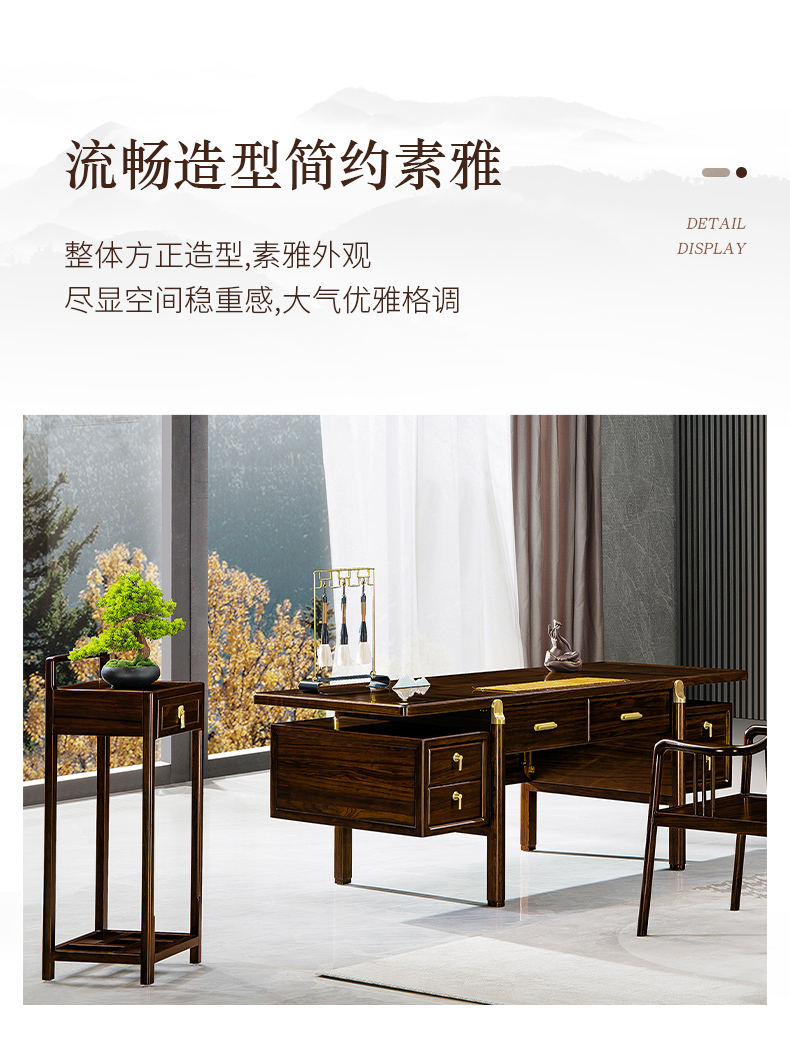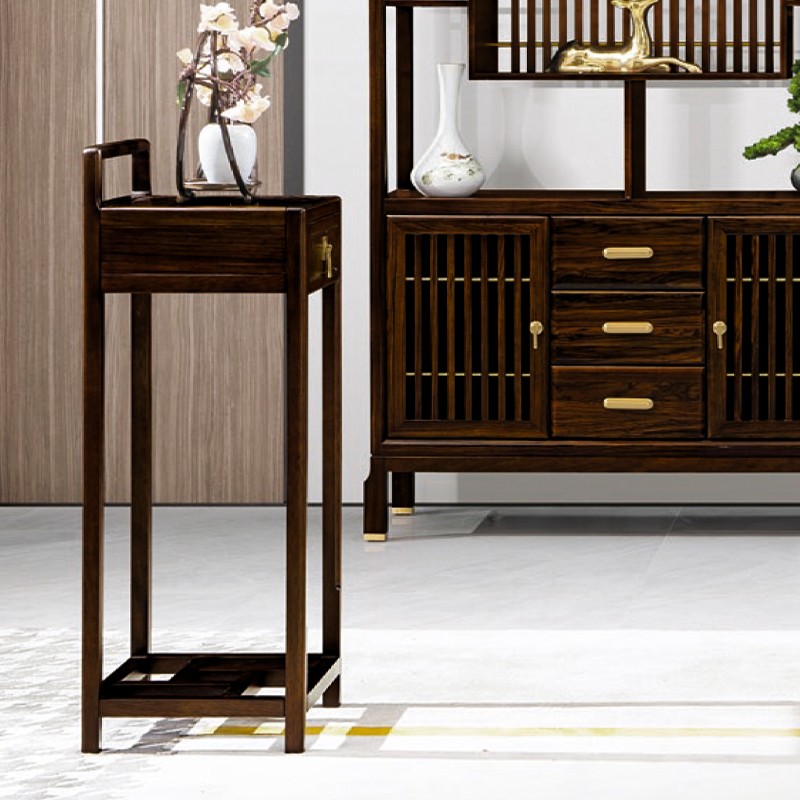 千匠一品 新中式风格 主材乌金木+辅材多层实木板贴乌金木皮+铜制拉手 时尚大气花架6833-L