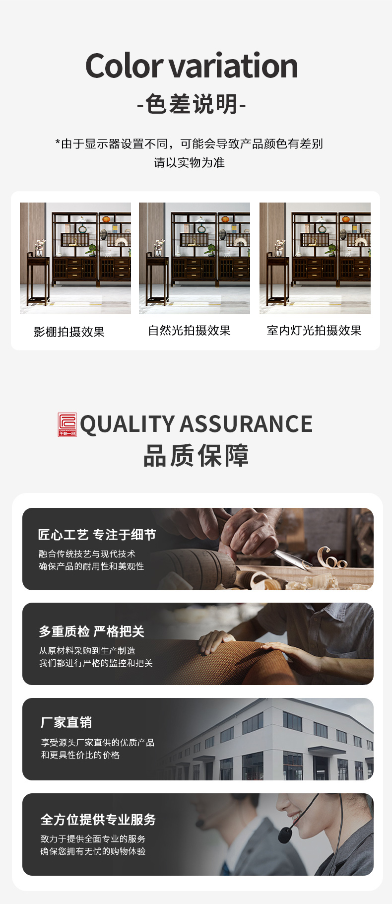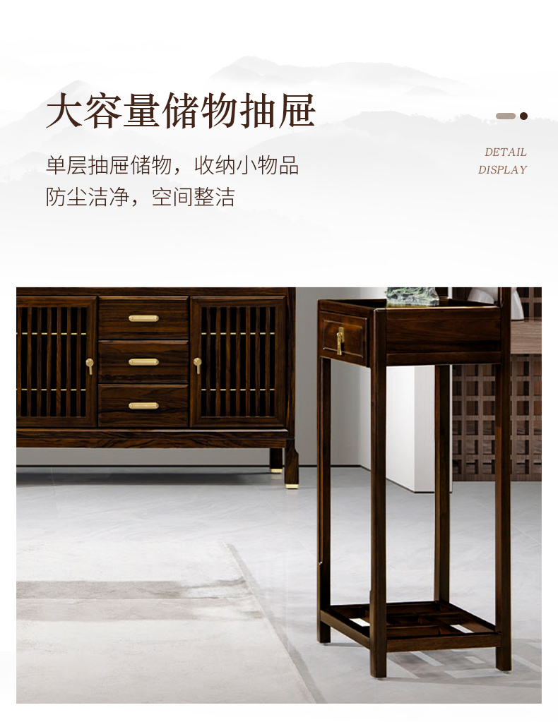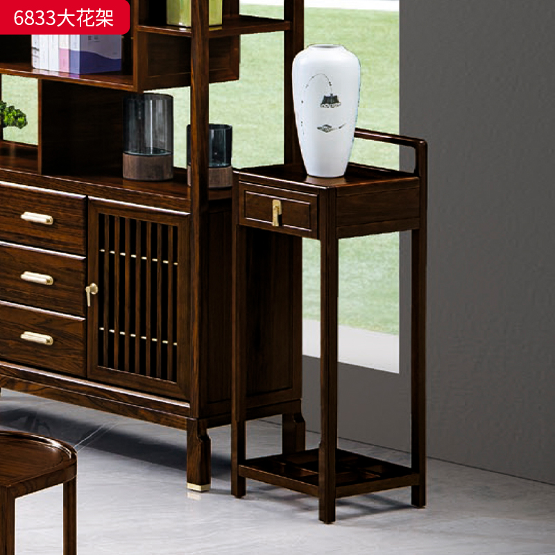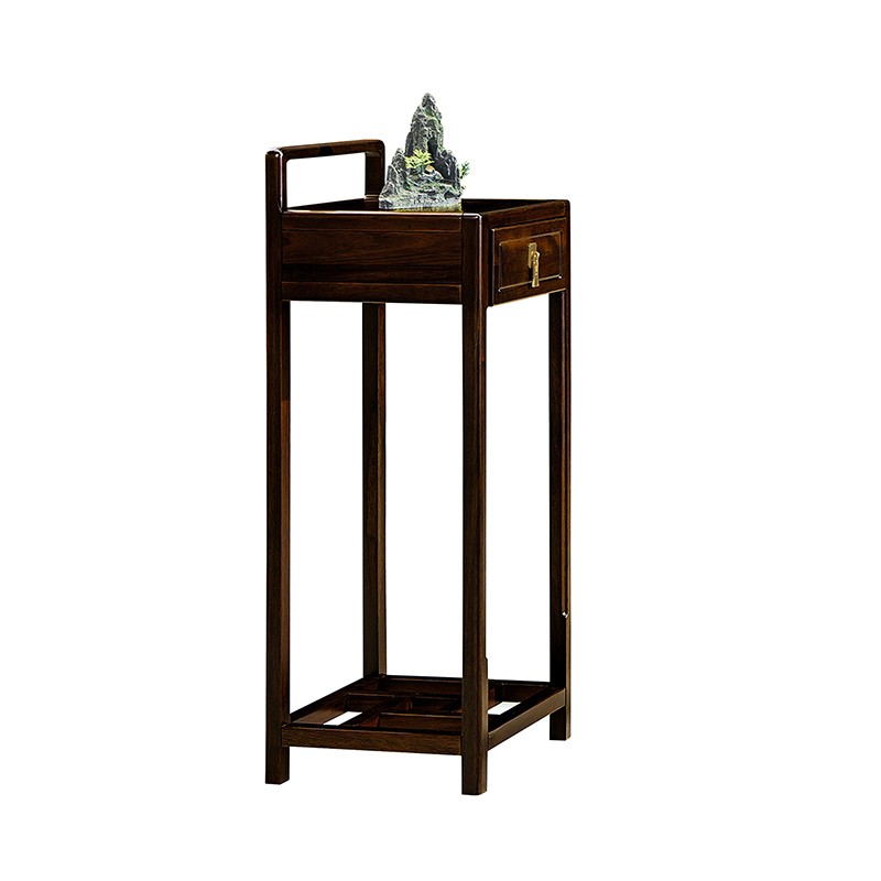 商品名称:千匠一品 新中式风格 主材乌金木+辅材多层实木板贴乌金木皮+铜制拉手 时尚大气花架6833-L