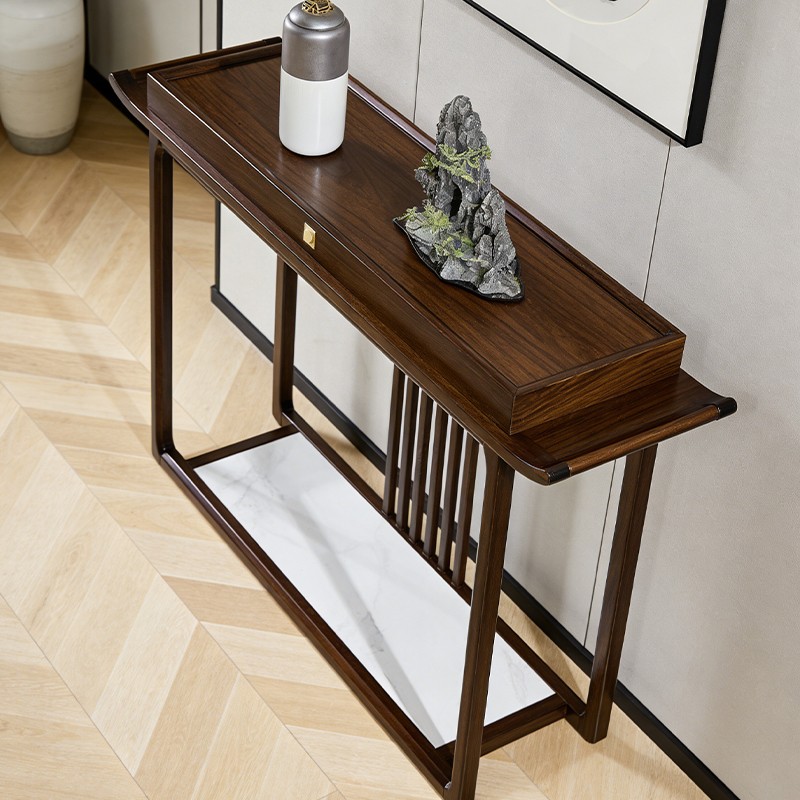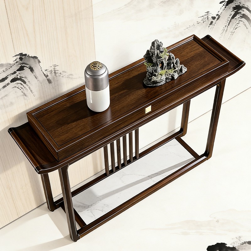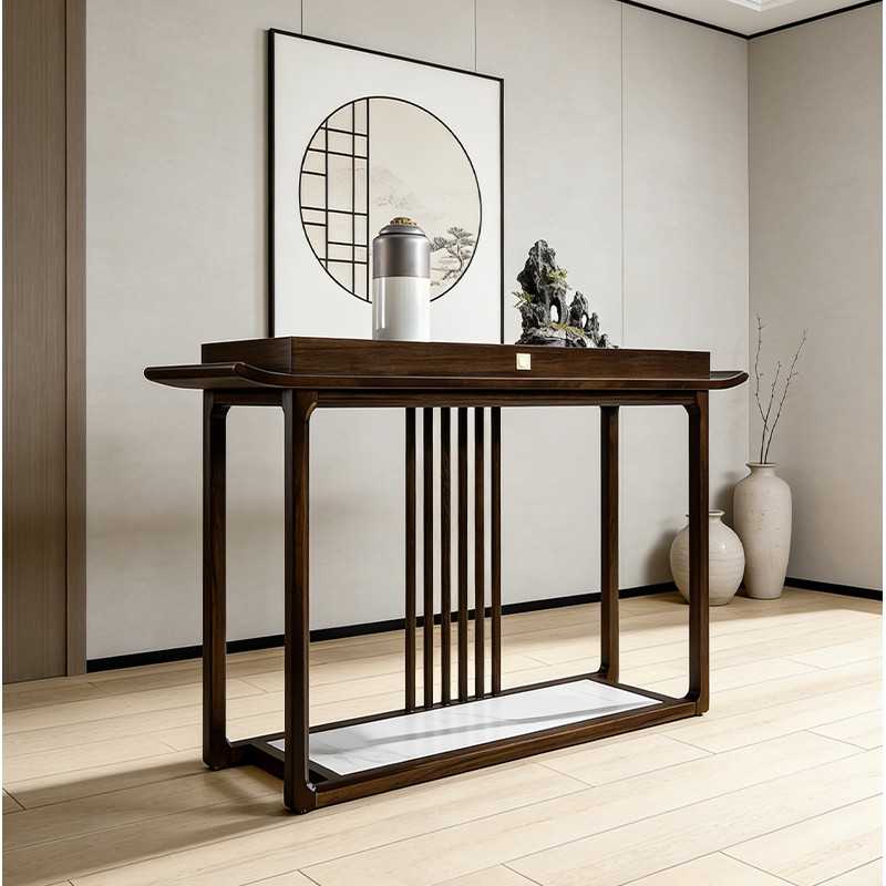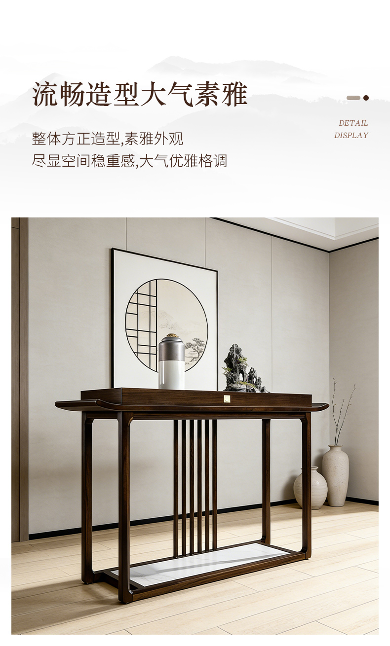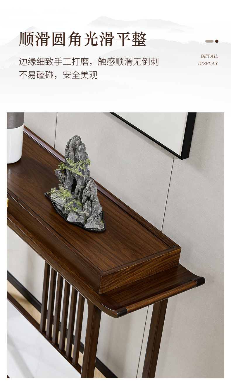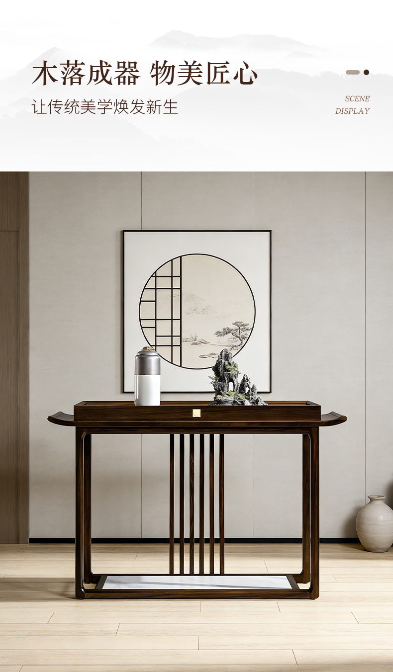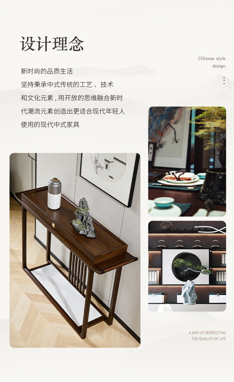 商品名称:千匠一品 新中式风格 主材乌金木+辅材多层实木板贴乌金木皮+铜制五金 时尚大气玄关6975-L