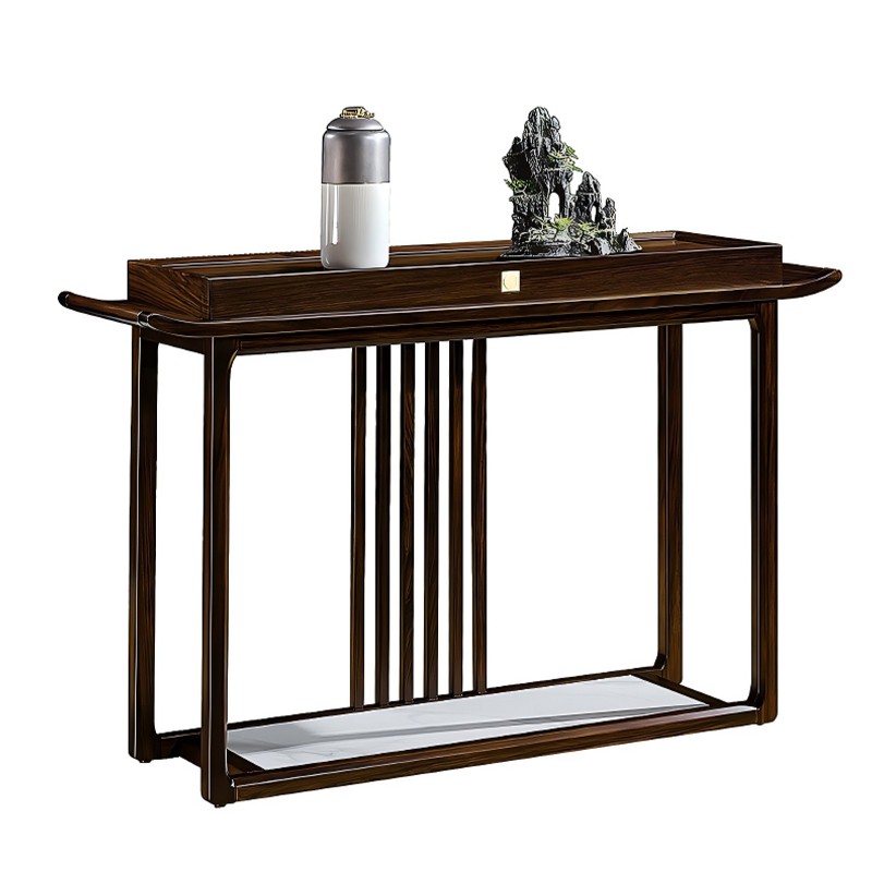 千匠一品 新中式风格 主材乌金木+辅材多层实木板贴乌金木皮+铜制五金 时尚大气玄关6975-L