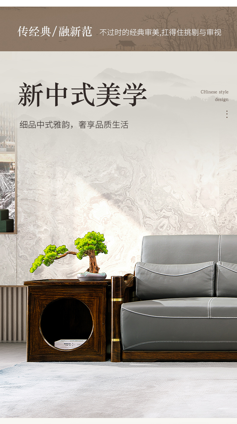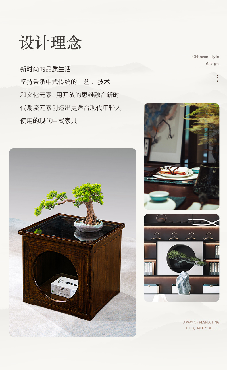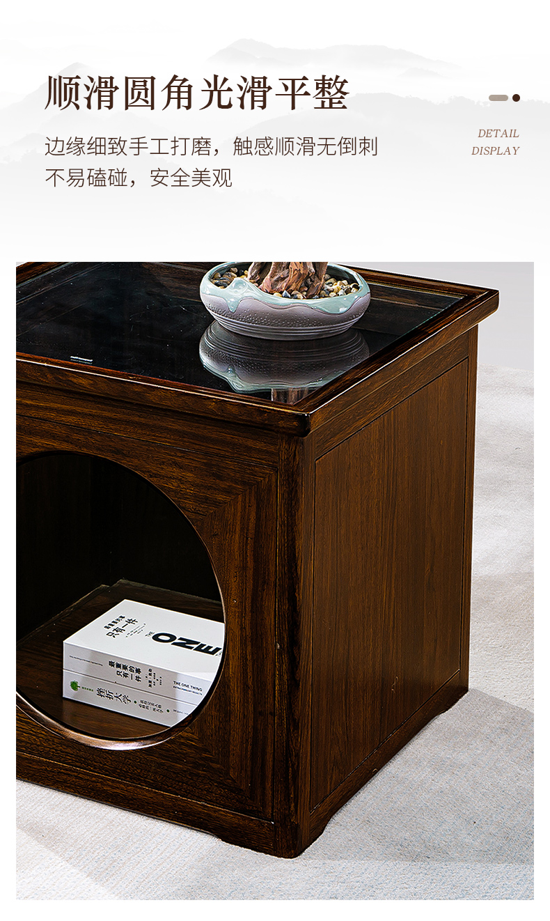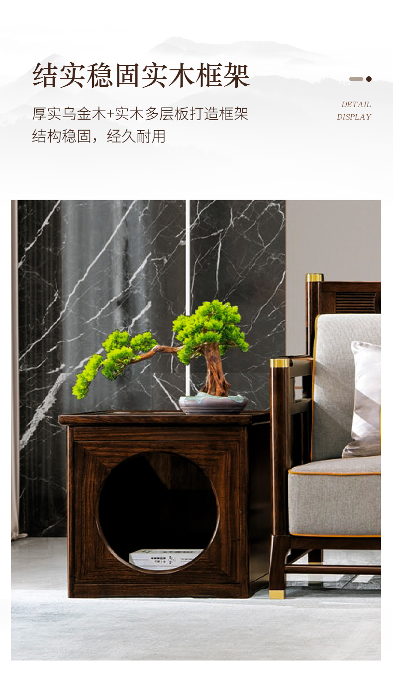 商品名称:千匠一品 新中式风格 主材乌金木+辅材多层实木板贴乌金木皮 时尚大气角几9850-L