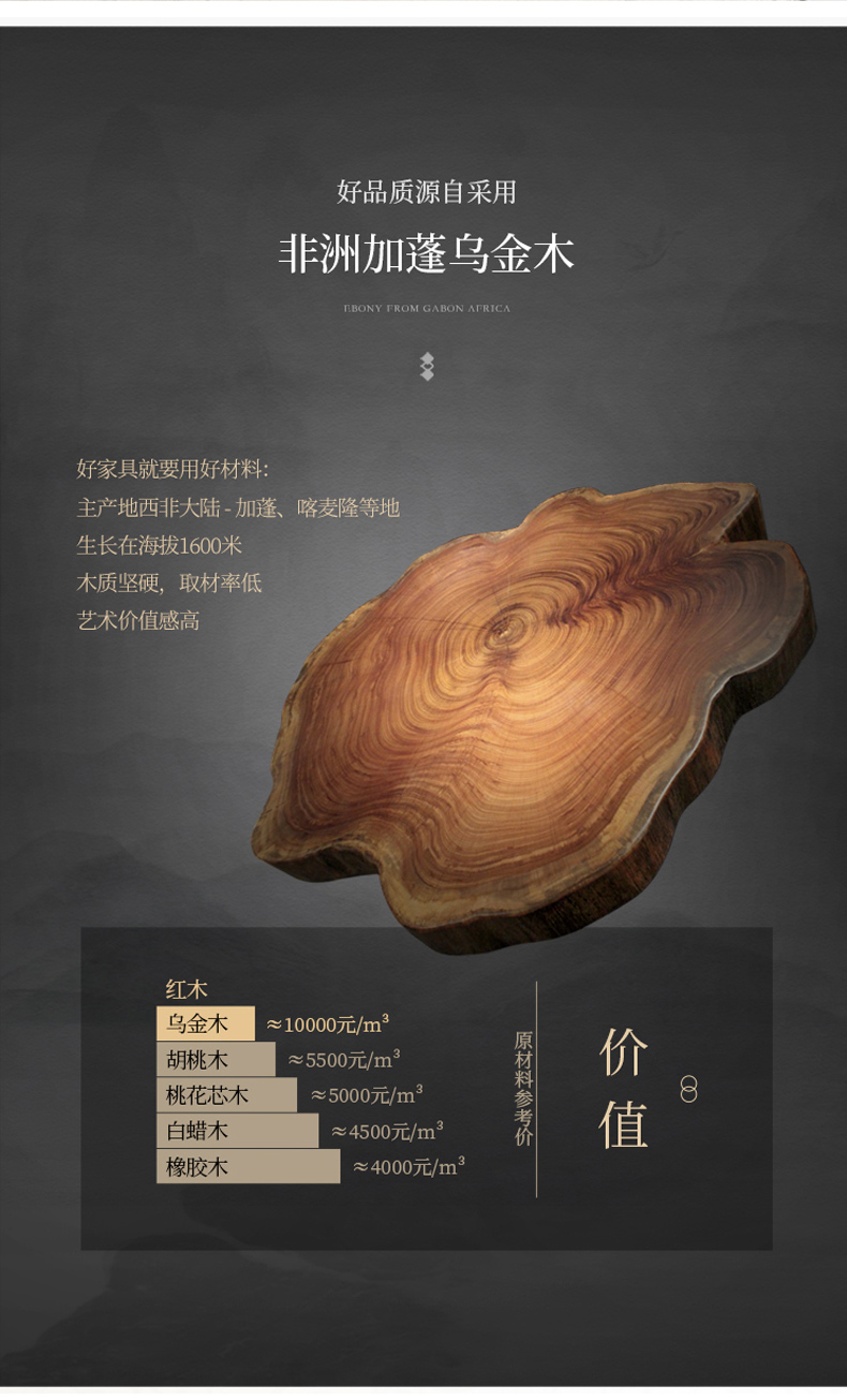 千匠一品 新中式风格 主材乌金木+辅材多层实木板贴乌金木皮 时尚优雅圆餐桌9903-J