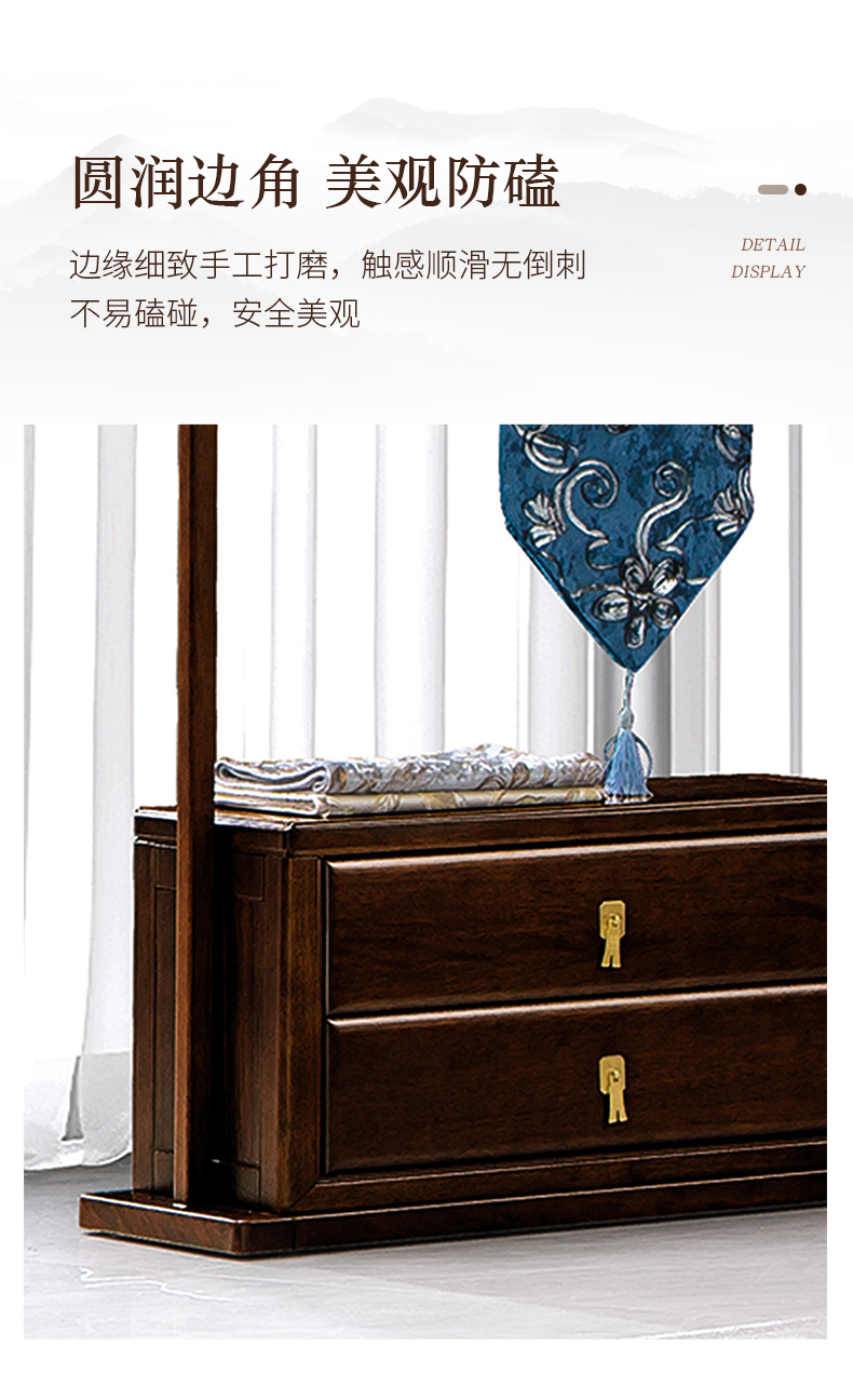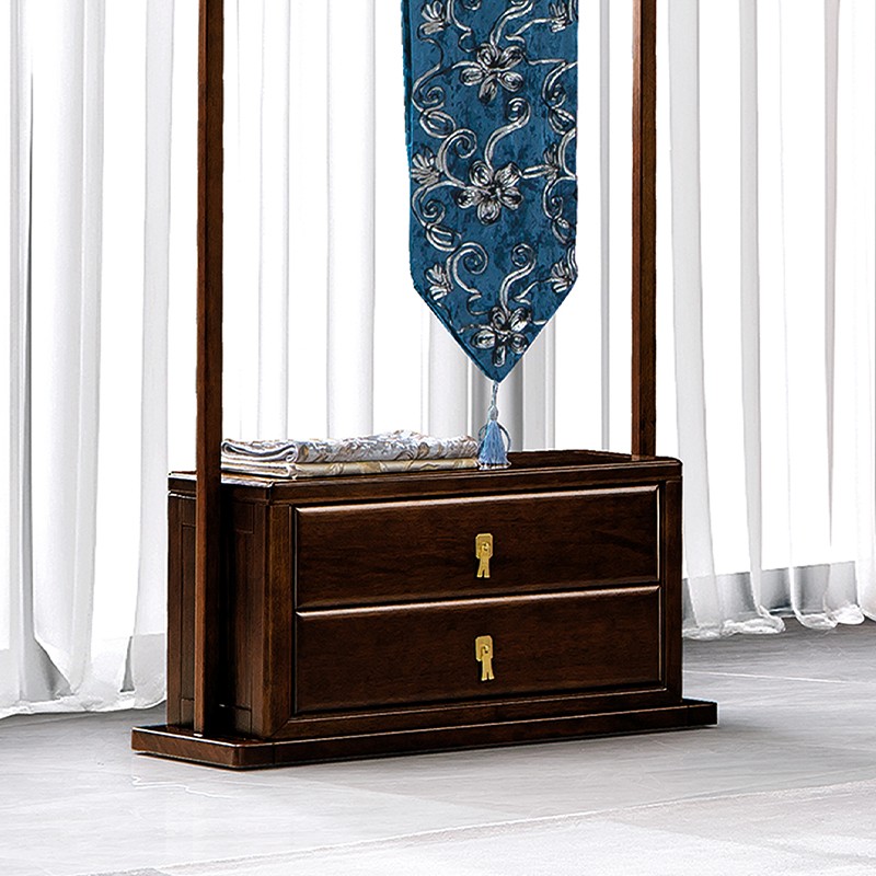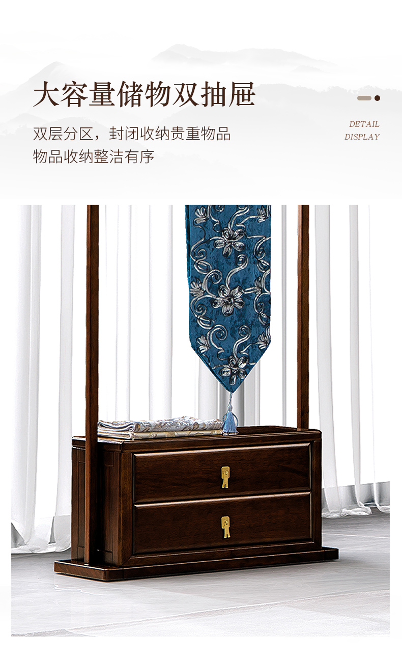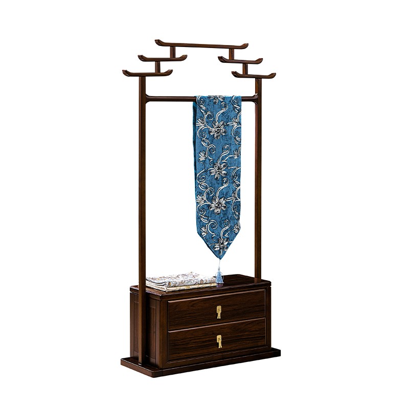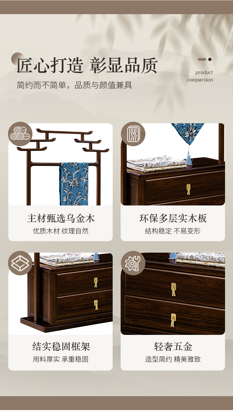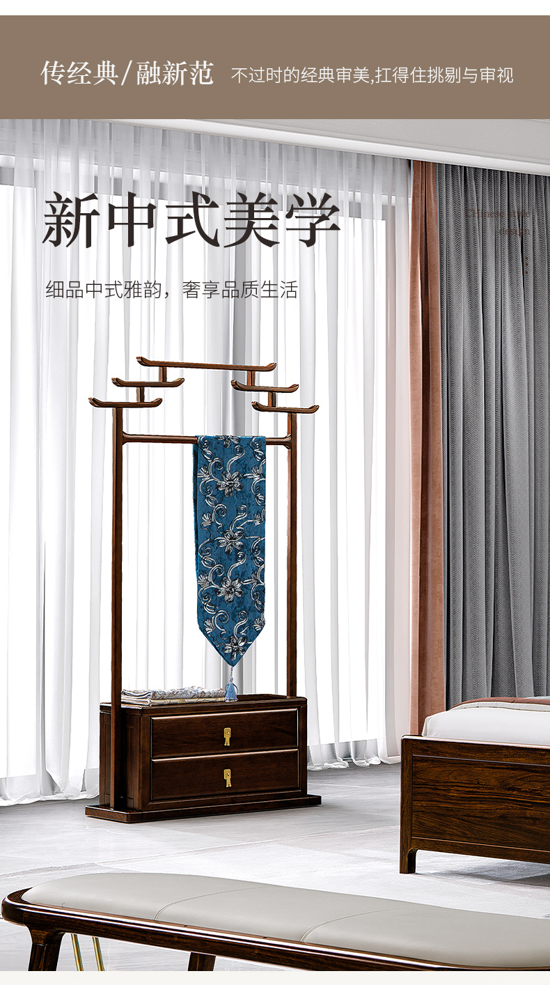 千匠一品 新中式风格 主材乌金木+辅材多层实木板贴乌金木皮+铜拉手 时尚优雅衣帽架6961-J