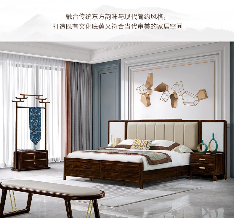 △千匠一品 美式风格金丝檀木框架+油蜡仿真皮+海绵1.8M床9812-C