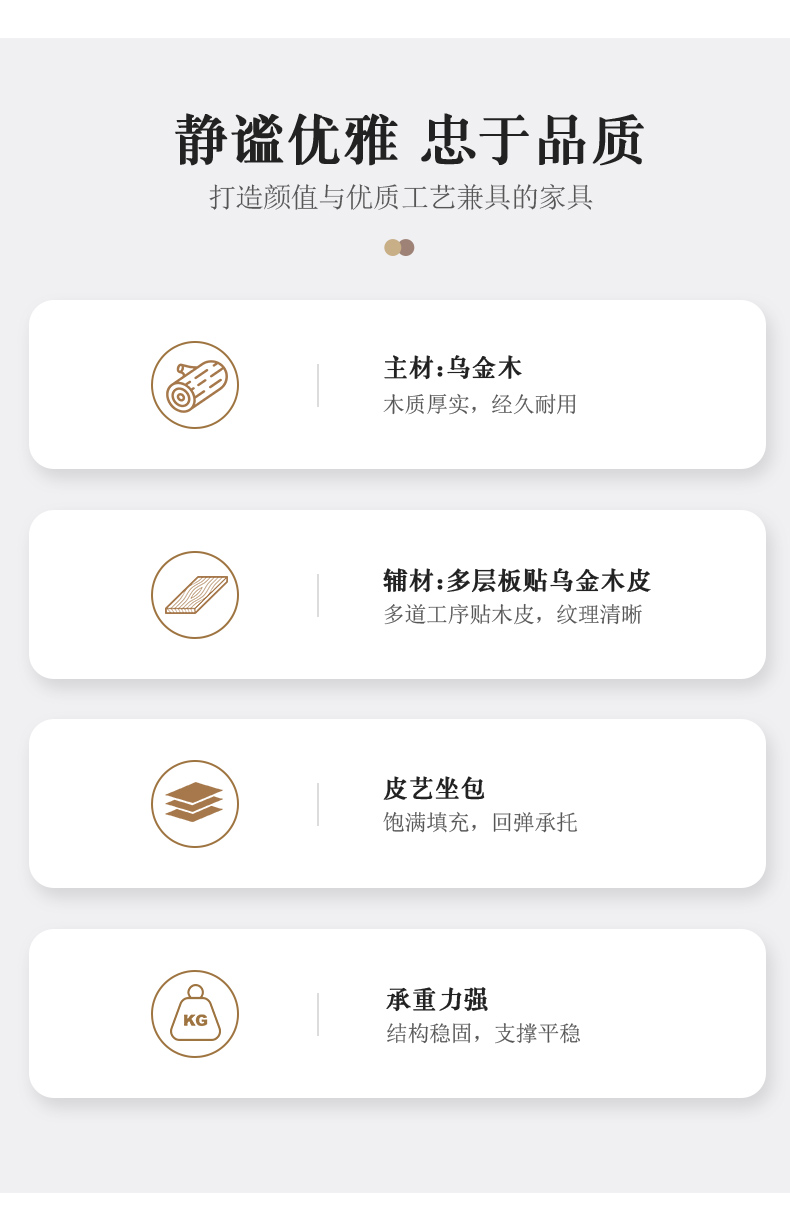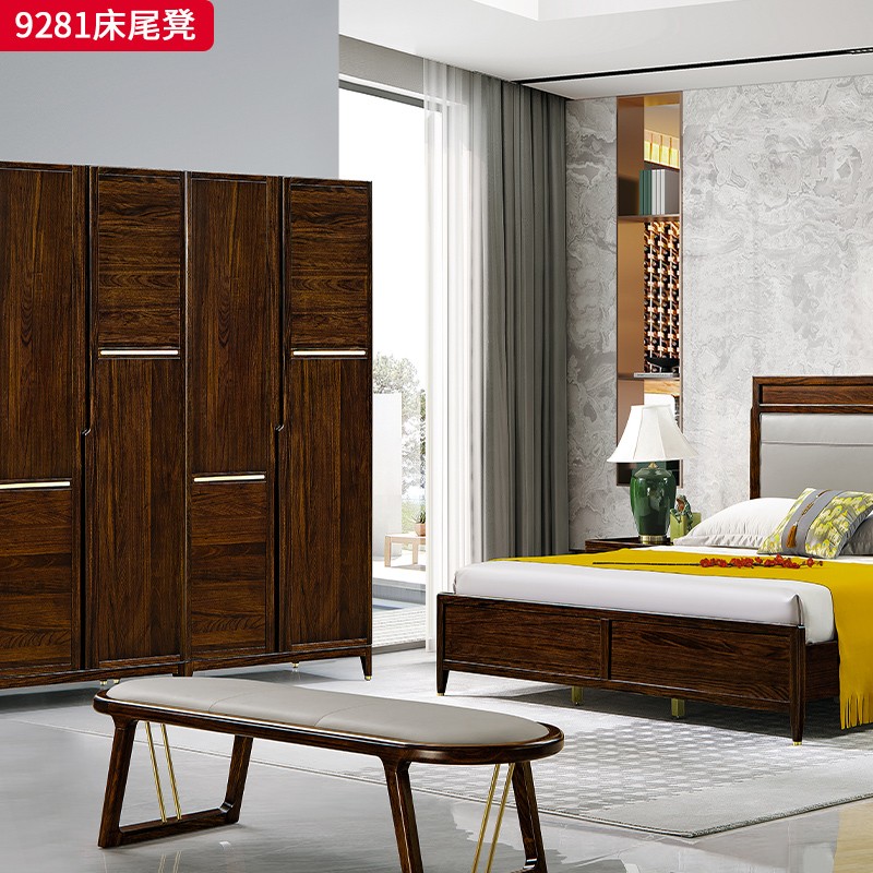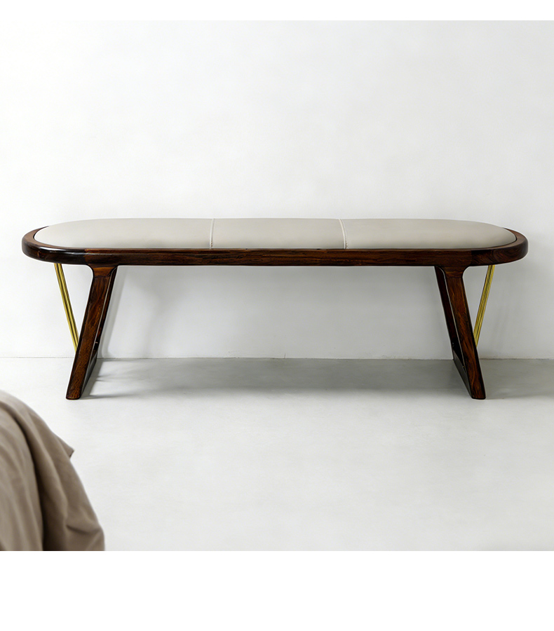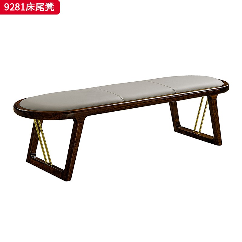 千匠一品 新中式风格 主材乌金木+辅材多层板贴乌金木皮+皮艺座包+五金饰条 时尚优雅床尾凳9281-J