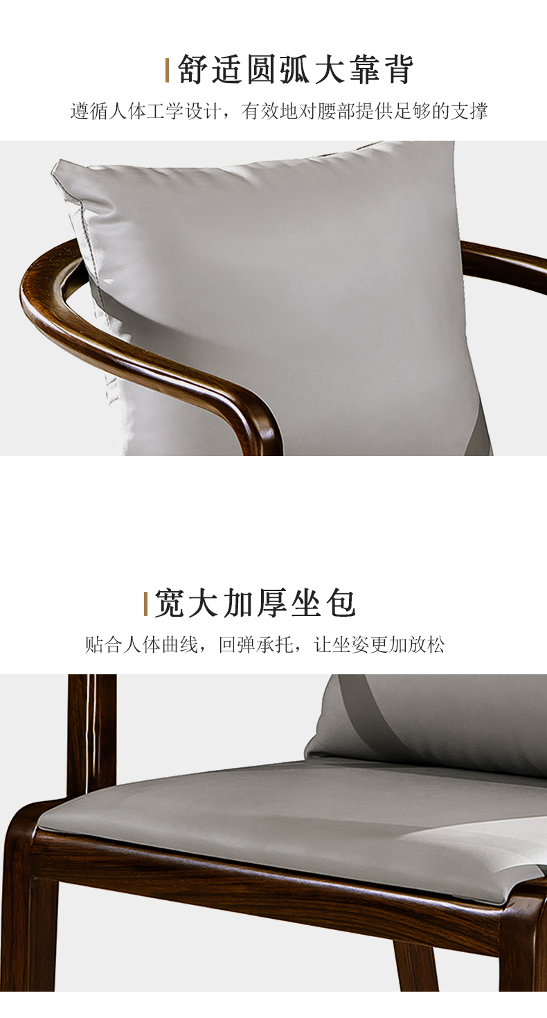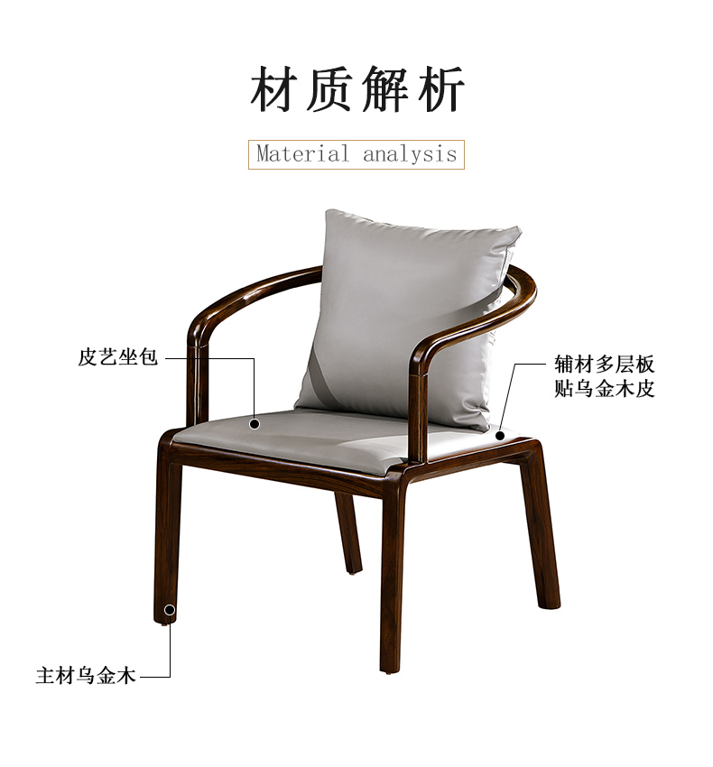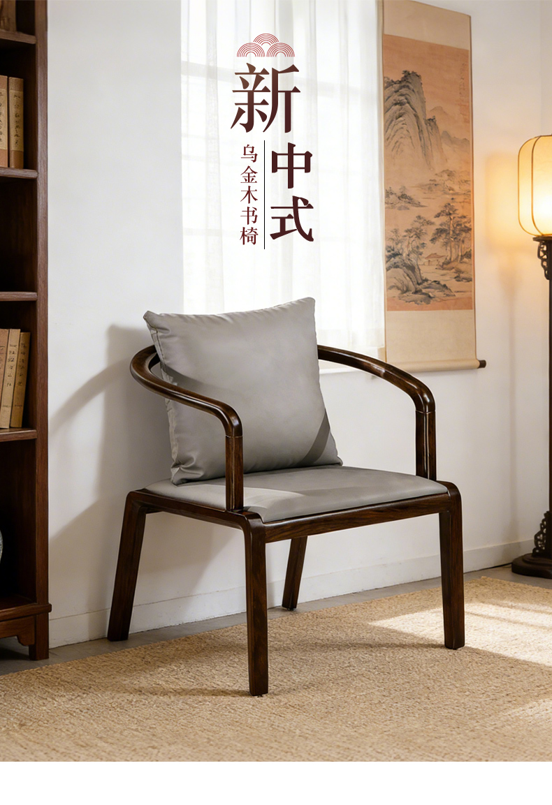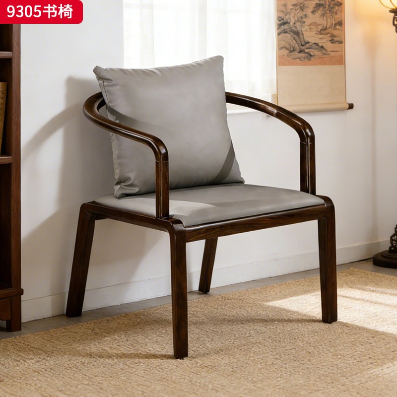 千匠一品 新中式风格 主材乌金木+辅材多层板贴乌金木皮+皮艺座包 时尚优雅书椅9305-J