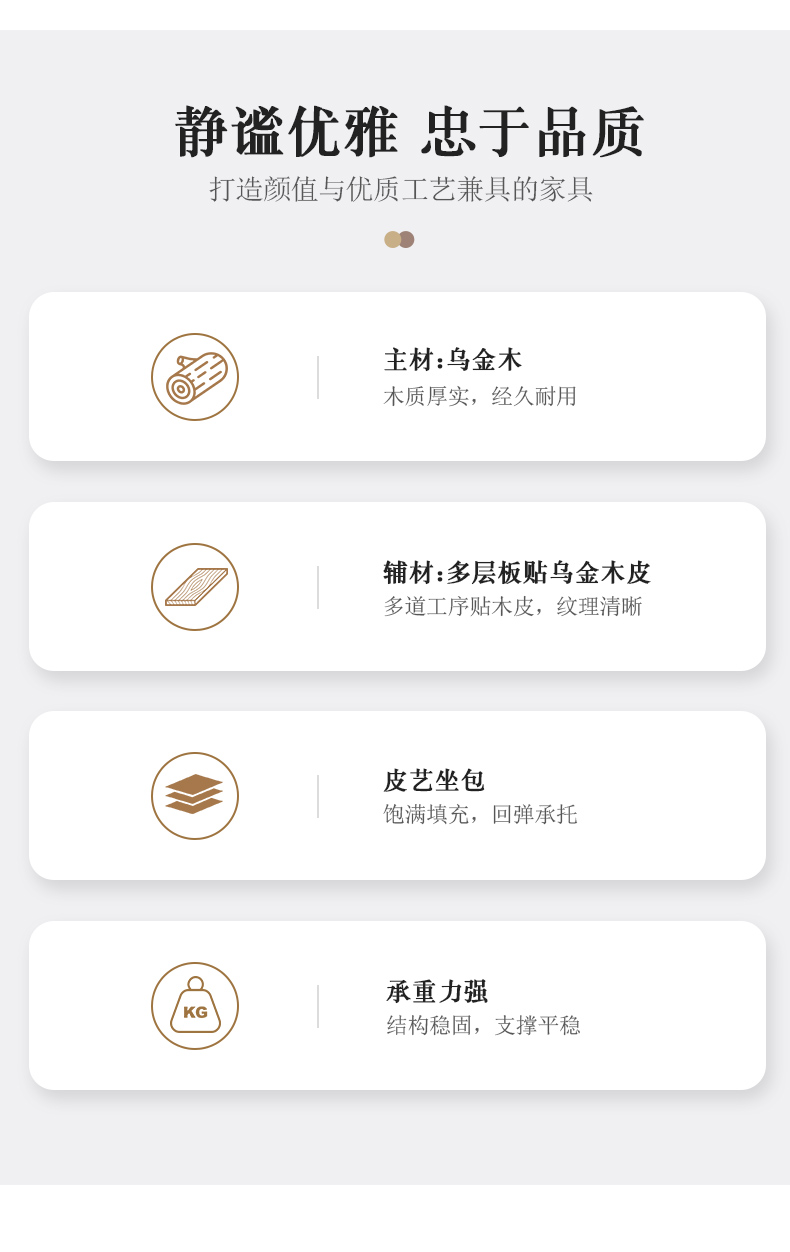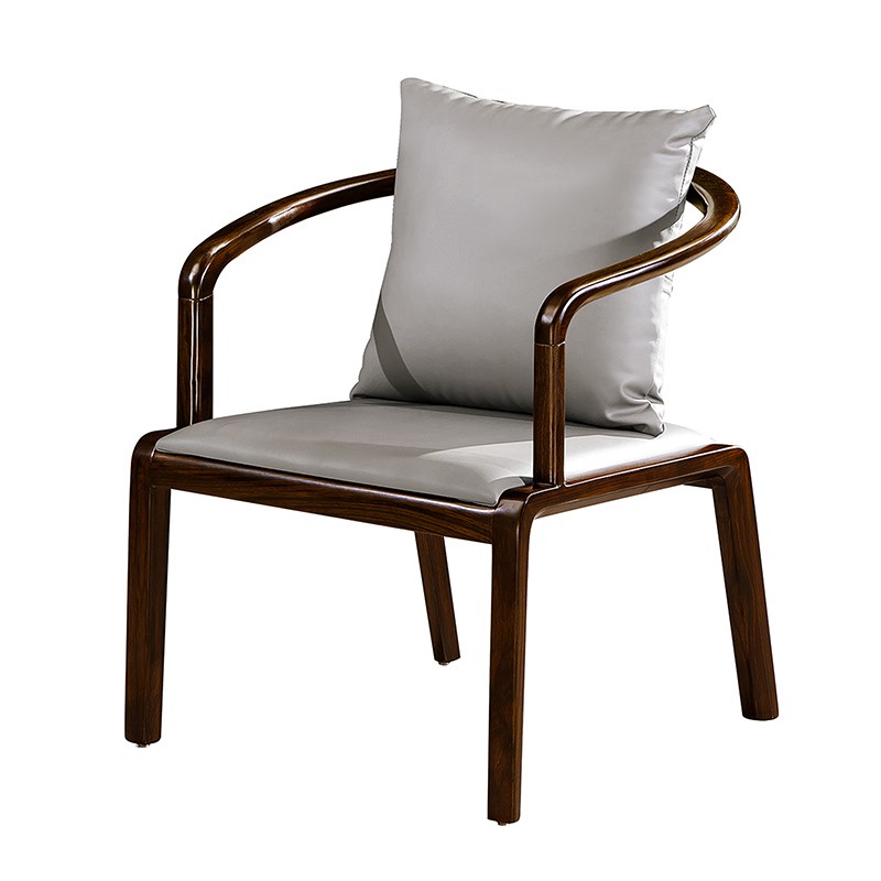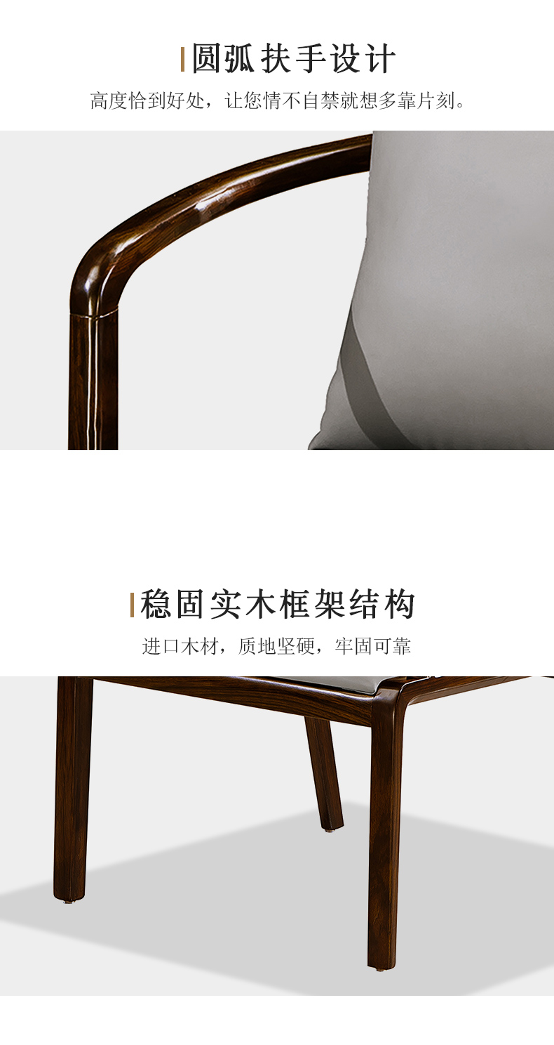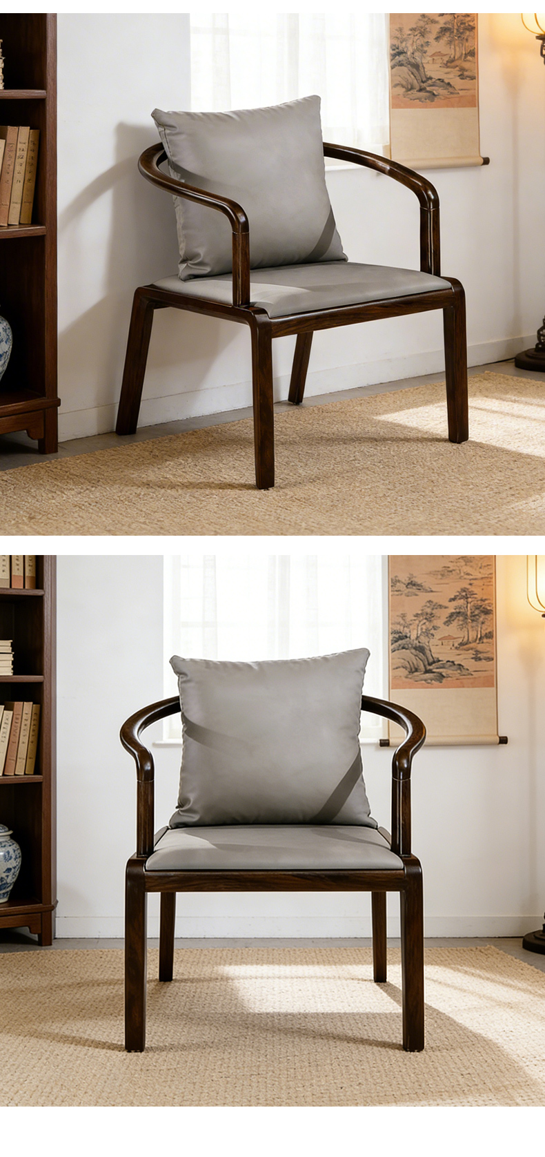千匠一品 新中式风格 主材乌金木+辅材多层板贴乌金木皮+皮艺座包 时尚优雅书椅9305-J