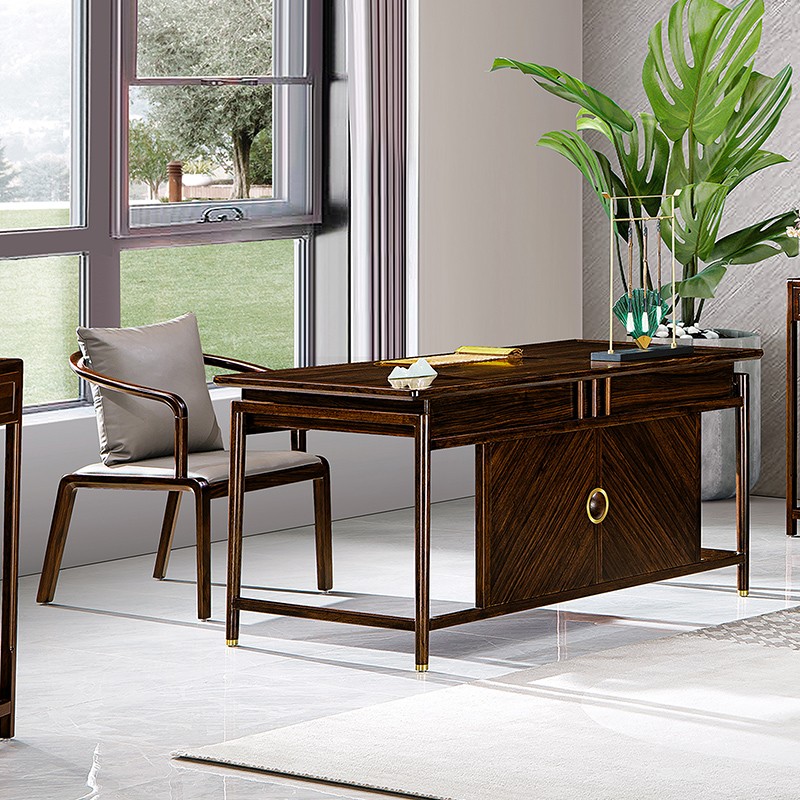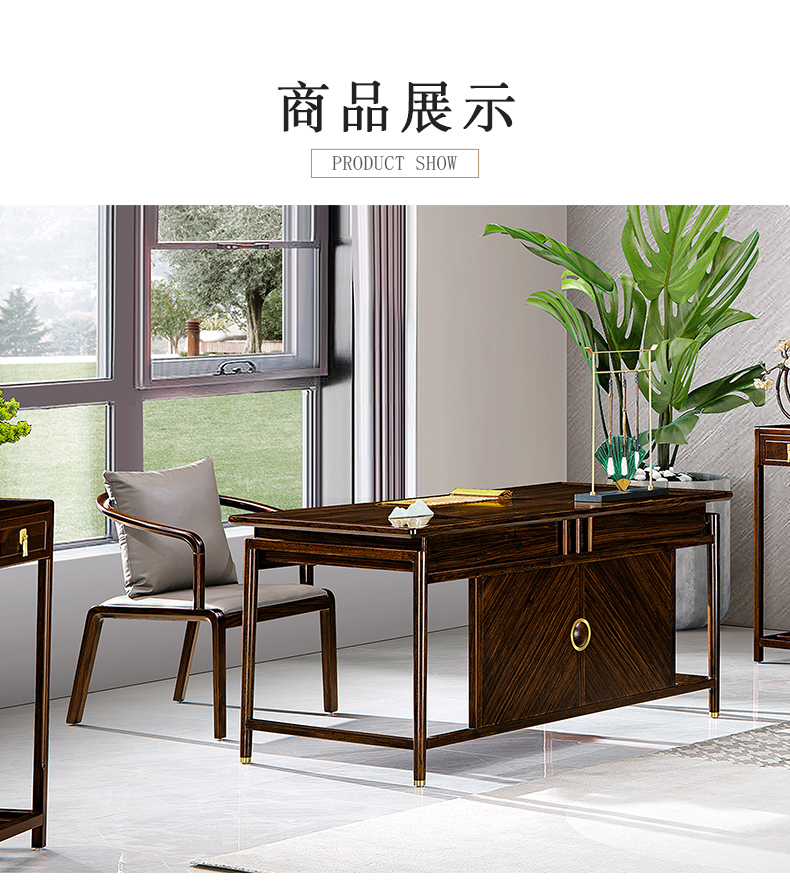 商品名称:千匠一品 新中式风格 主材乌金木+辅材多层板贴乌金木皮+皮艺座包 时尚优雅书椅9305-J