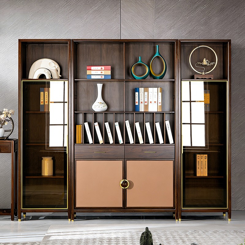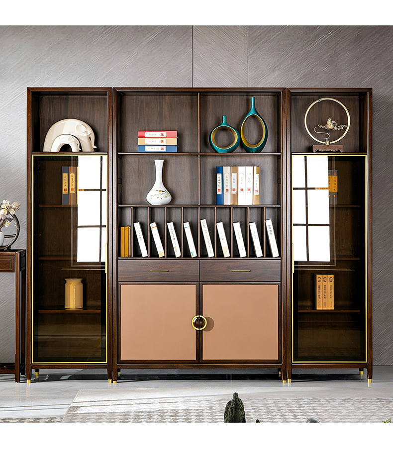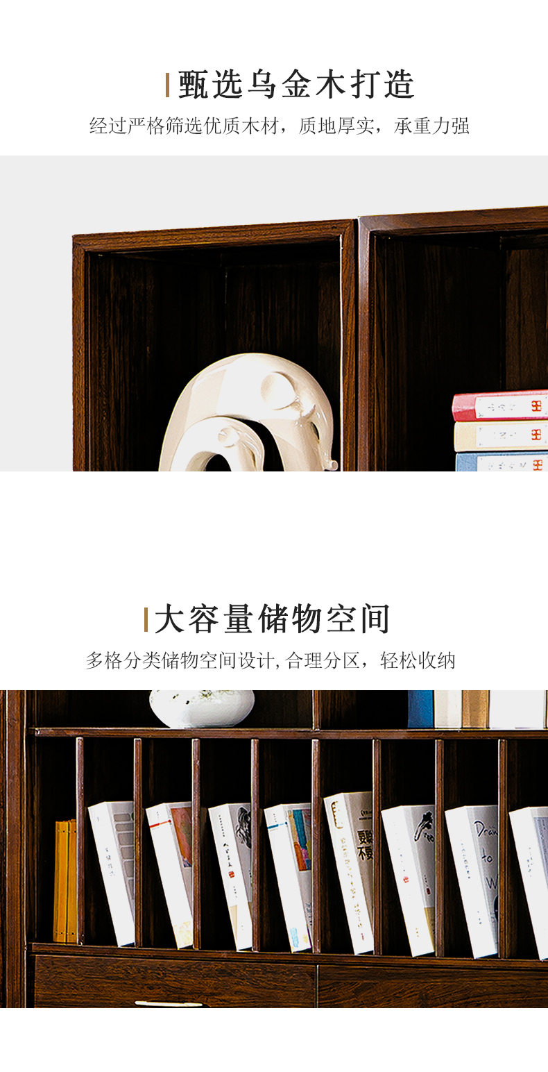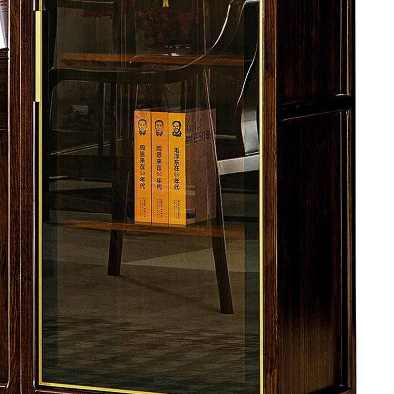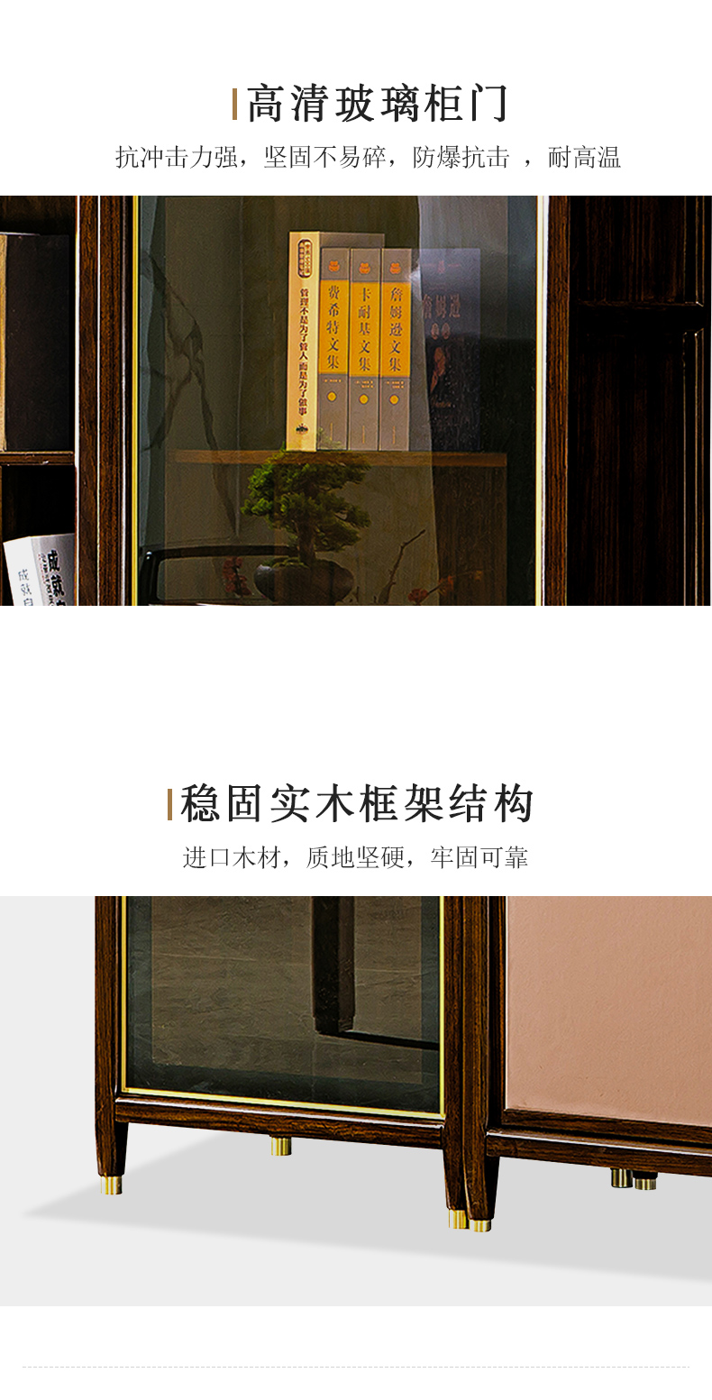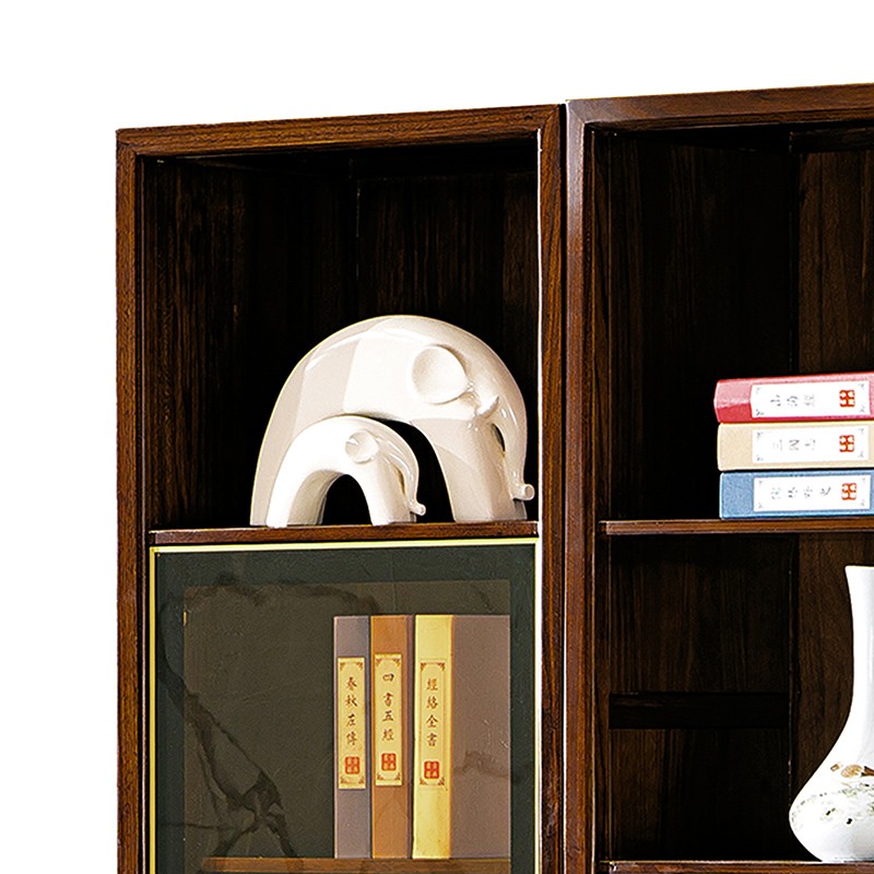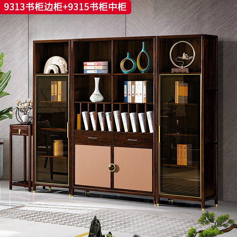 千匠一品 新中式风格 主材乌金木+辅材多层板贴乌金木皮+玻璃柜门+五金饰件 时尚优雅书柜边柜9313 书柜中柜9315-J
