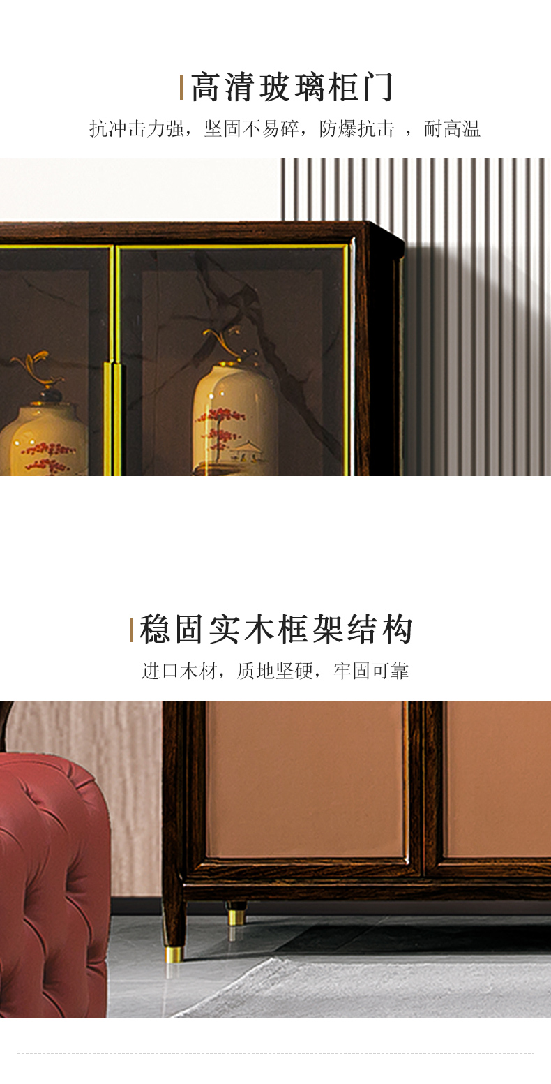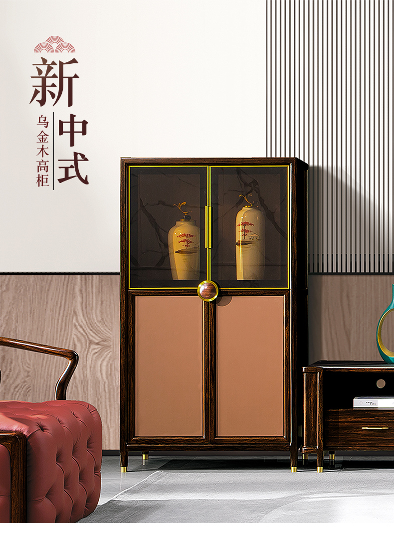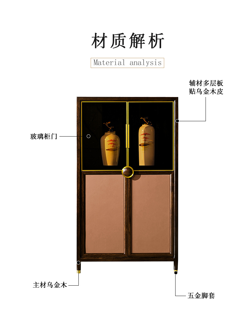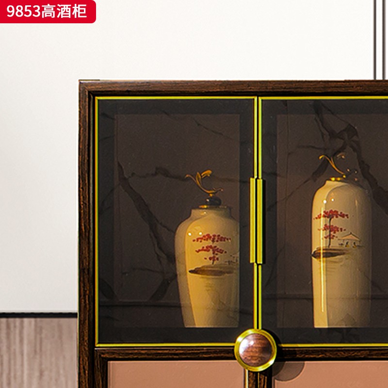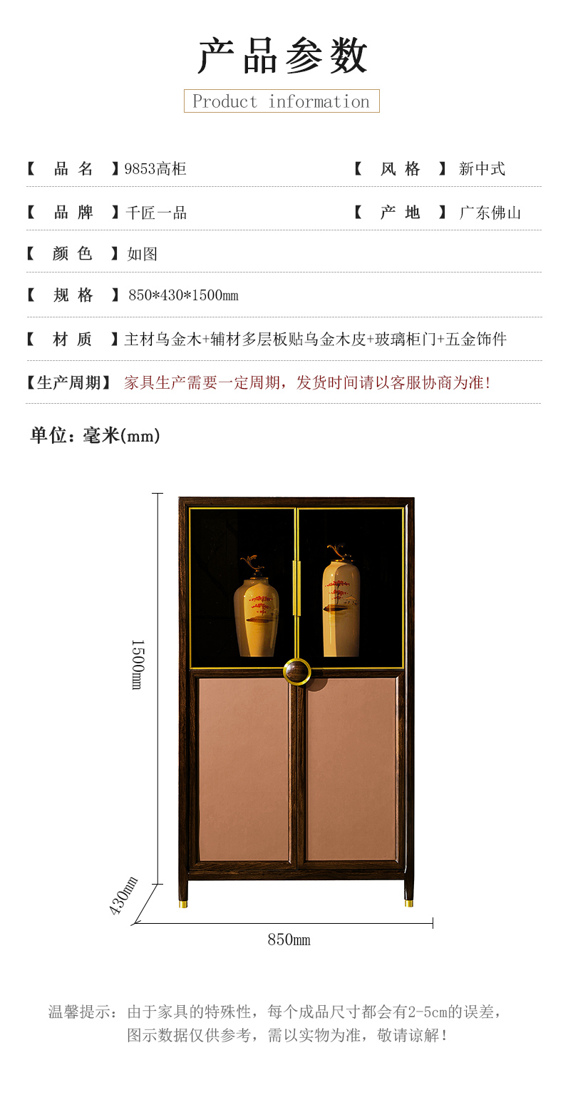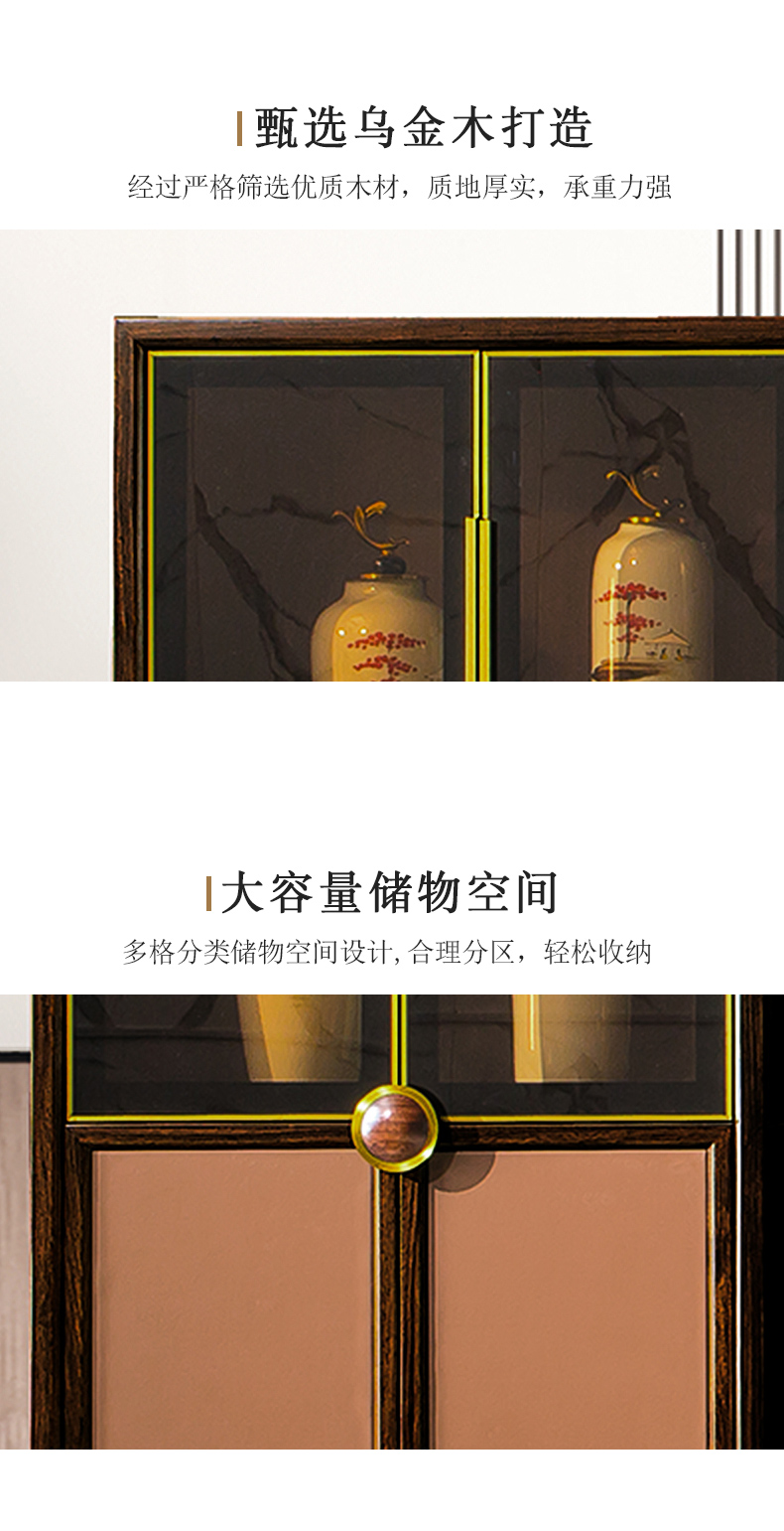 商品名称:千匠一品 新中式风格 主材乌金木+辅材多层板贴乌金木皮+玻璃柜门+五金饰件 时尚优雅高酒柜9853-J