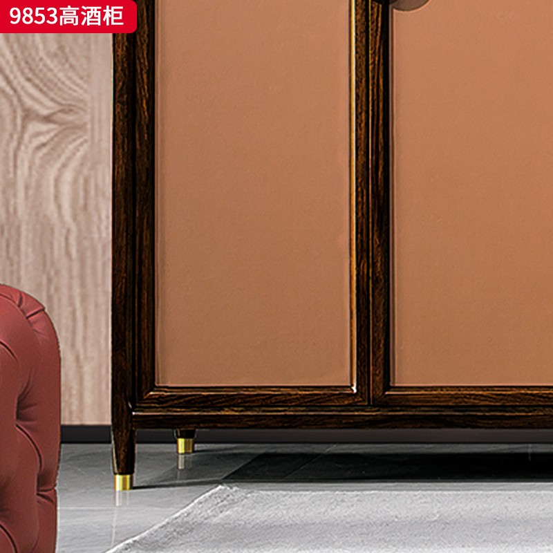 千匠一品 新中式风格 主材乌金木+辅材多层板贴乌金木皮+玻璃柜门+五金饰件 时尚优雅高酒柜9853-J