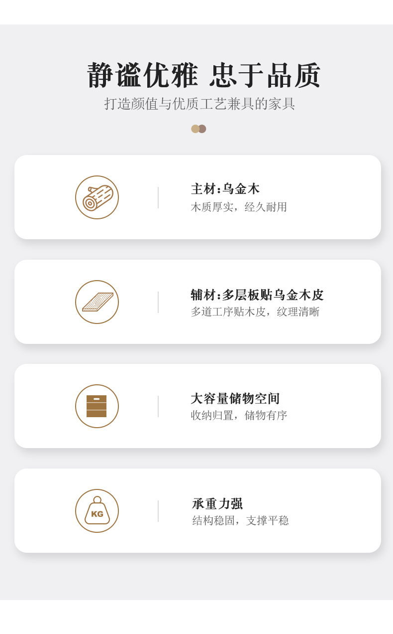千匠一品 新中式风格 岩板+主材乌金木+辅材多层实木板贴乌金木皮+铜制五金 时尚优雅边几9616-J