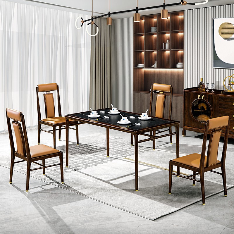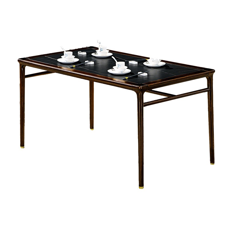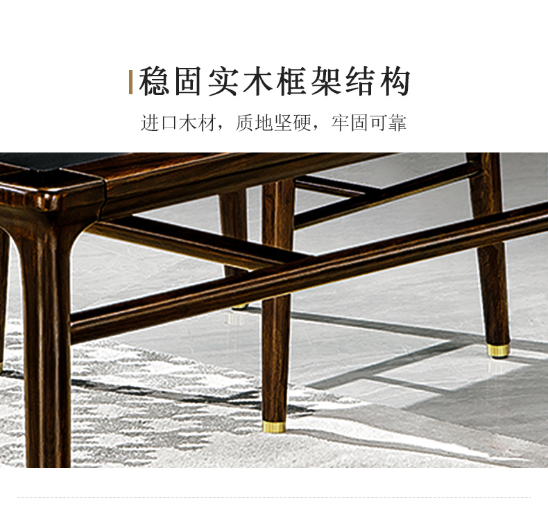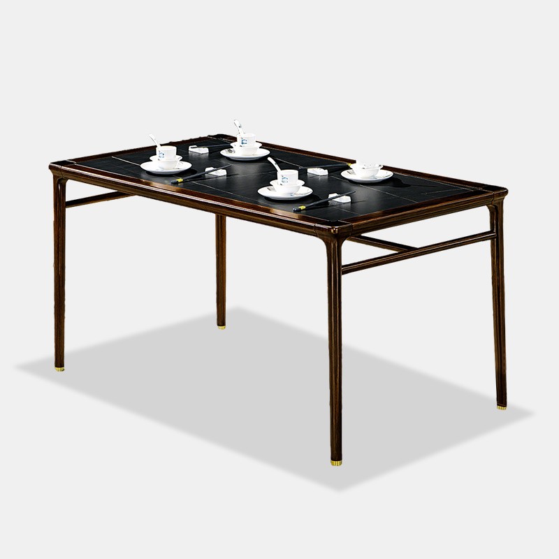 千匠一品 新中式风格 主材乌金木+辅材多层板贴乌金木皮+岩板台面 时尚大气餐台9905-J