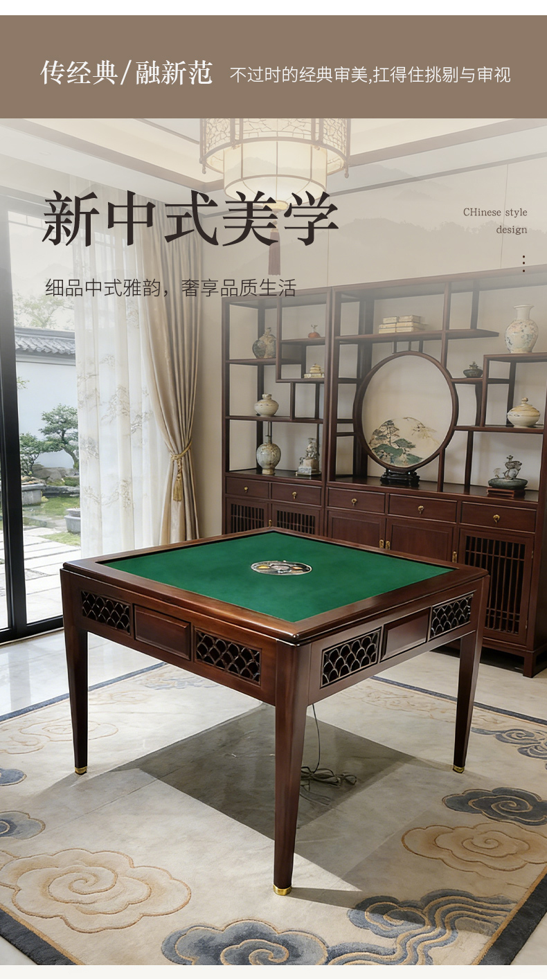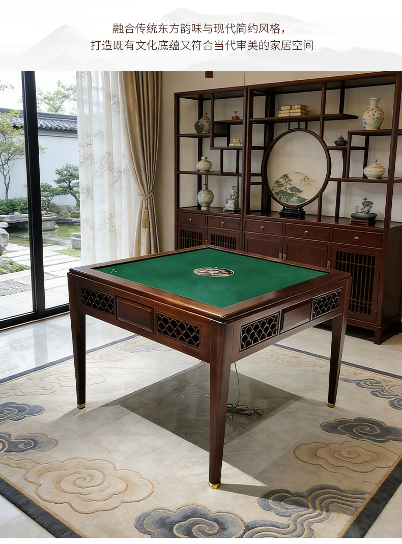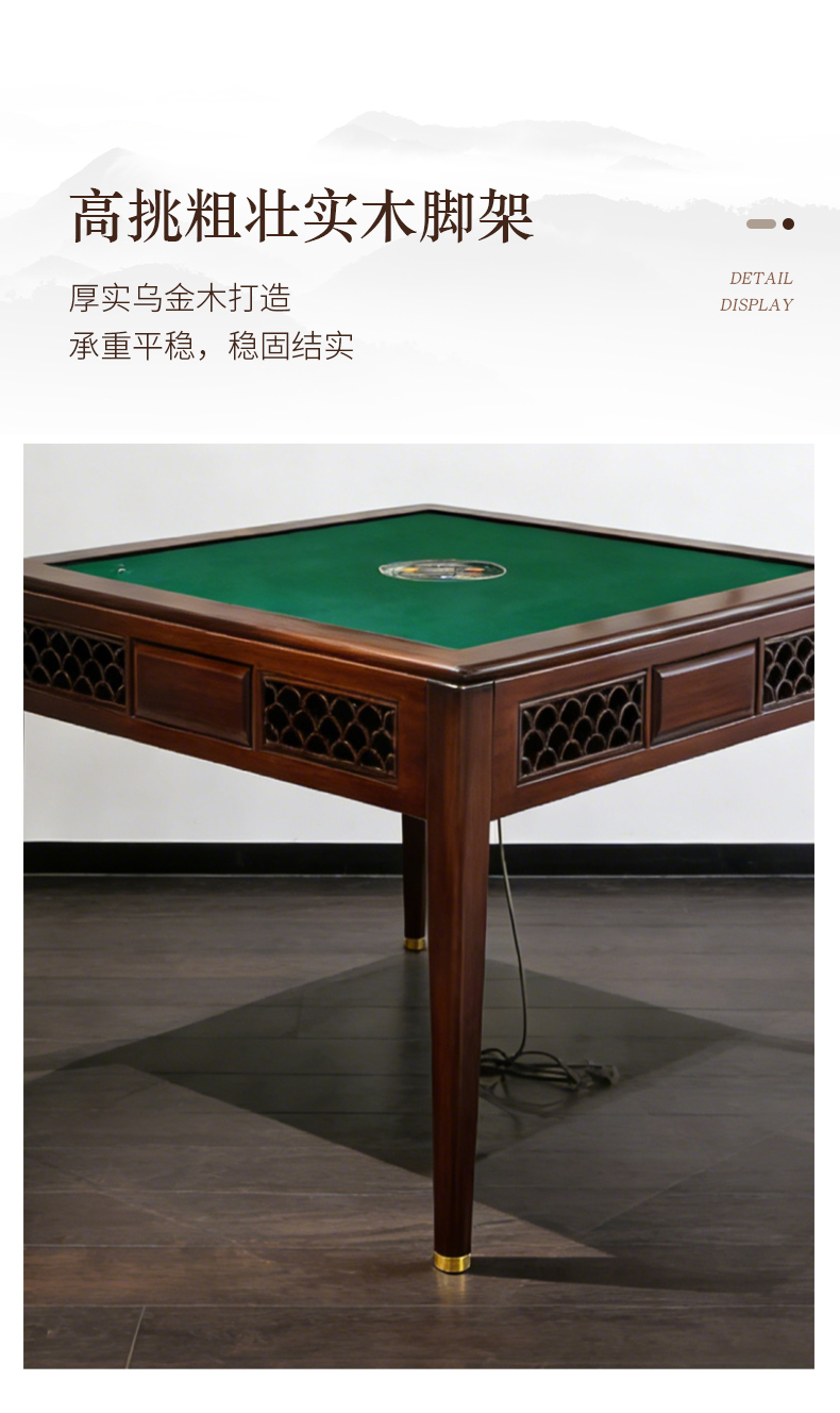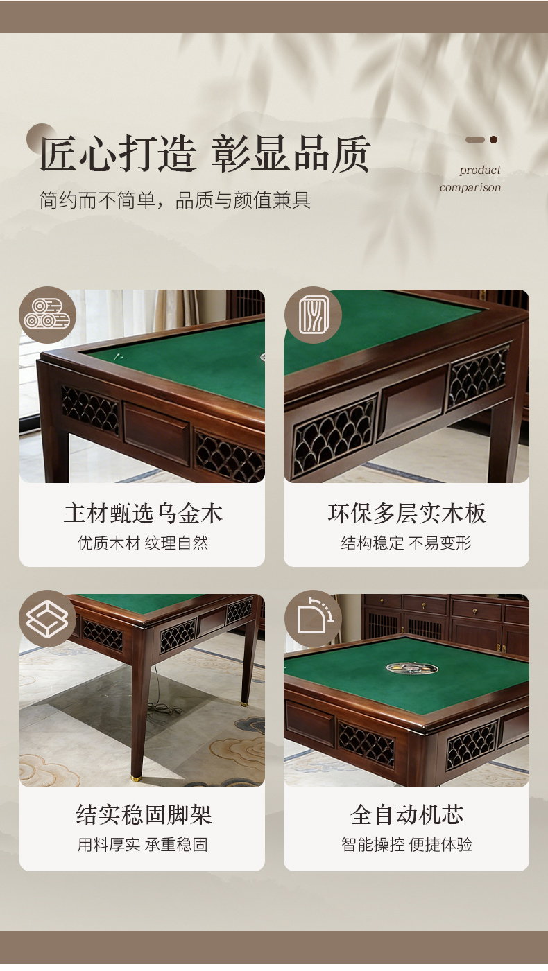 千匠一品 新中式风格 主材乌金木+辅材多层实木板贴乌金木皮+机芯+五金脚套 时尚优雅麻将桌9907-J