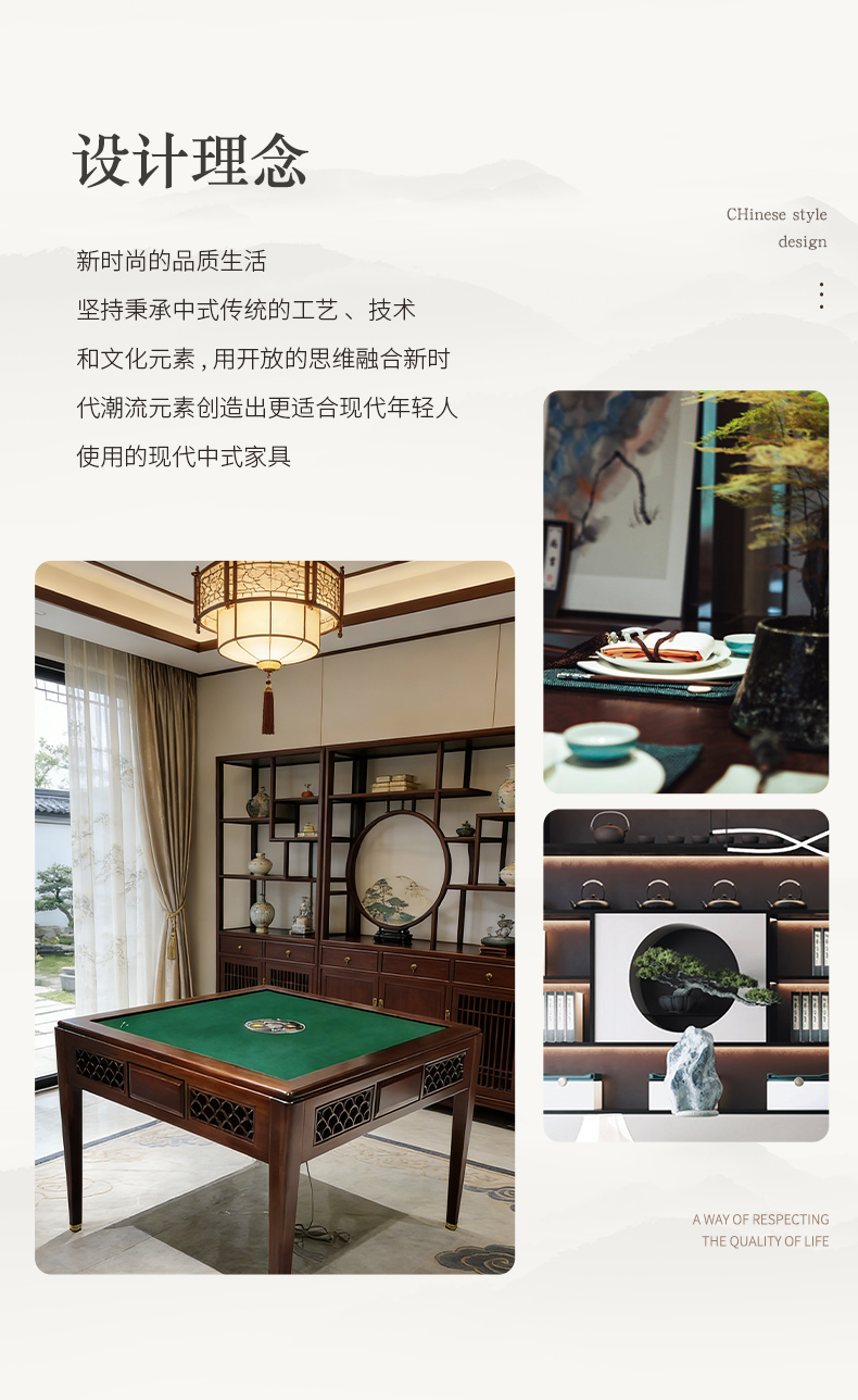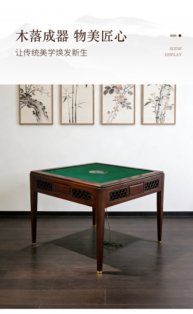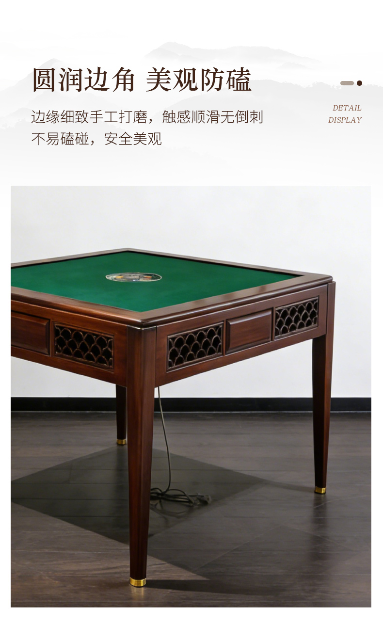 千匠一品 新中式风格 主材乌金木+辅材多层实木板贴乌金木皮+机芯+五金脚套 时尚优雅麻将桌9907-J