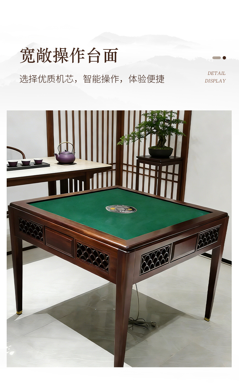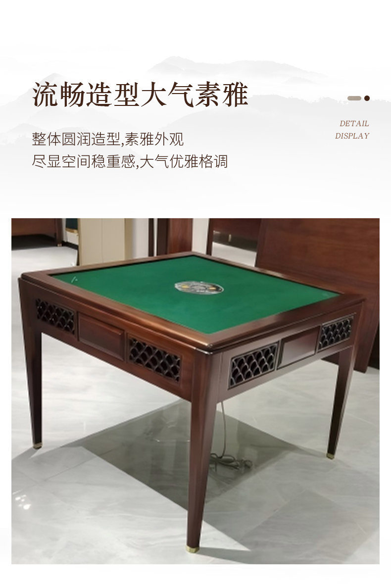 商品名称:千匠一品 新中式风格 主材乌金木+辅材多层实木板贴乌金木皮+机芯+五金脚套 时尚优雅麻将桌9907-J