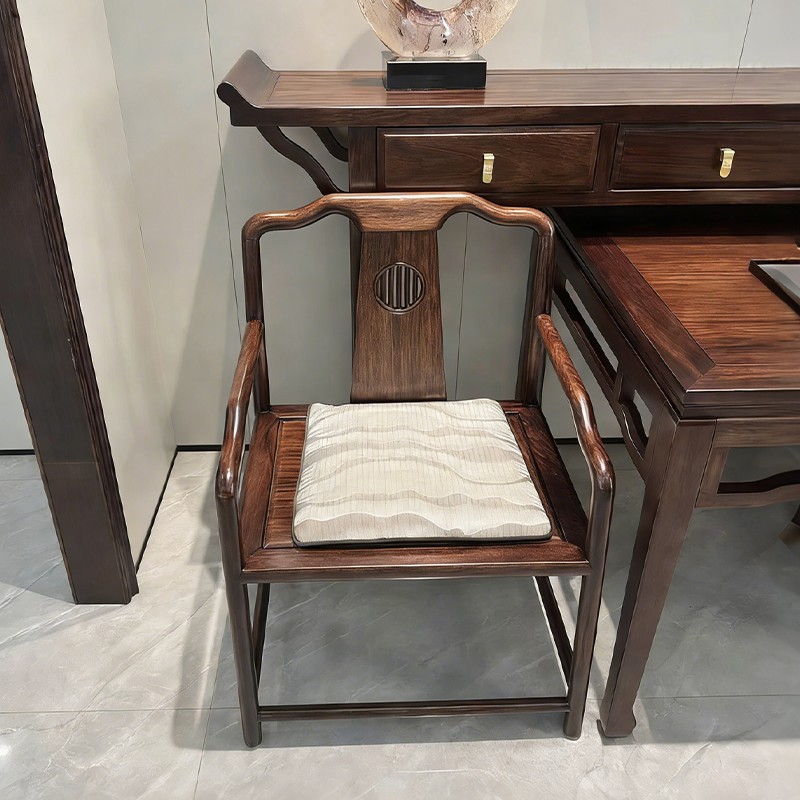 千匠一品 新中式风格 主材乌金木+辅材多层实木板贴乌金木皮 时尚大气茶凳6572-J