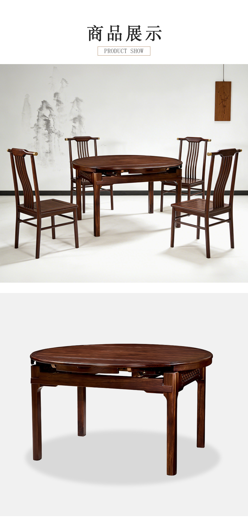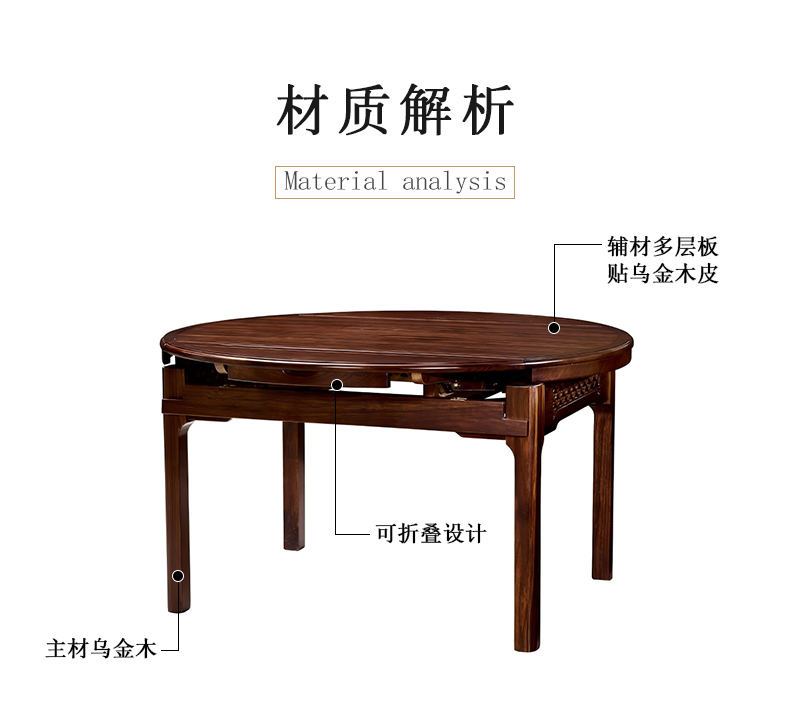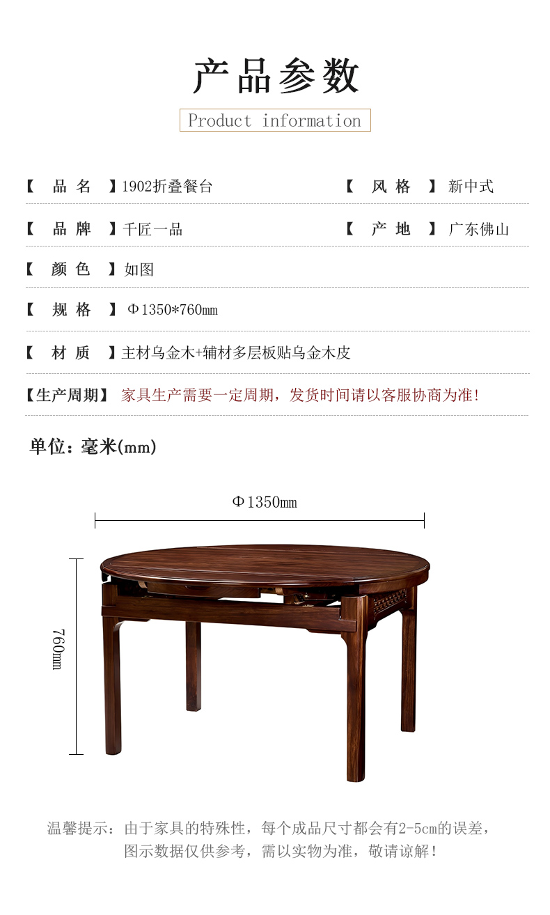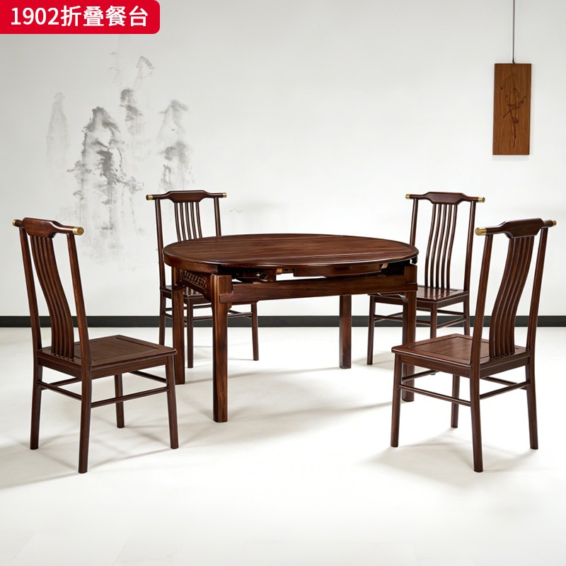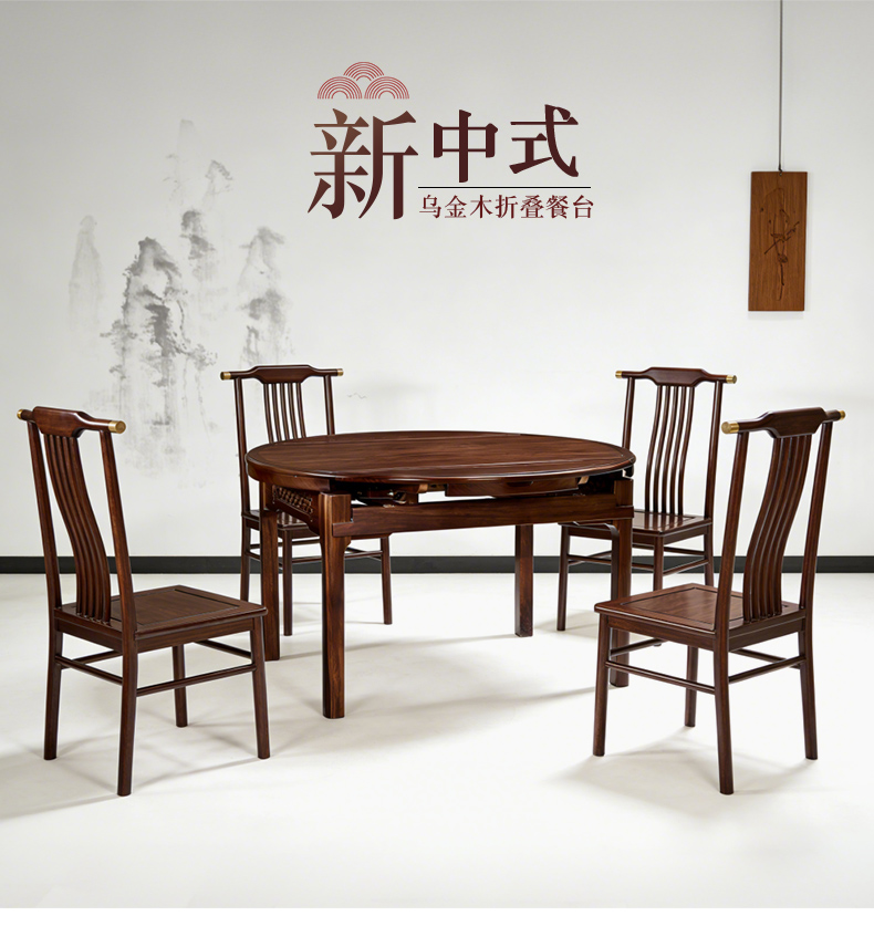 商品名称:千匠一品 新中式风格 主材乌金木+辅材多层实木板贴乌金木皮 时尚优雅折叠餐台1902-J