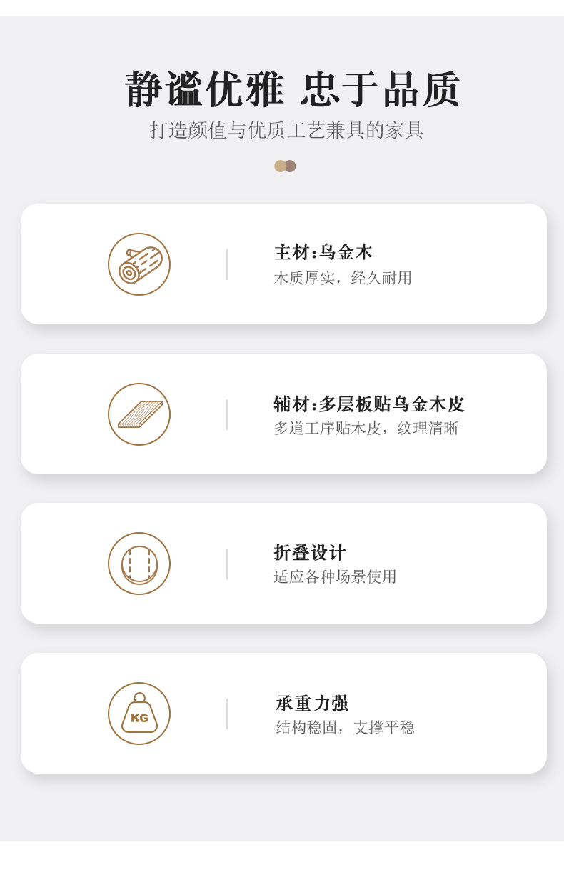 千匠一品 新中式风格 主材乌金木+辅材多层实木板贴乌金木皮 时尚优雅折叠餐台1902-J