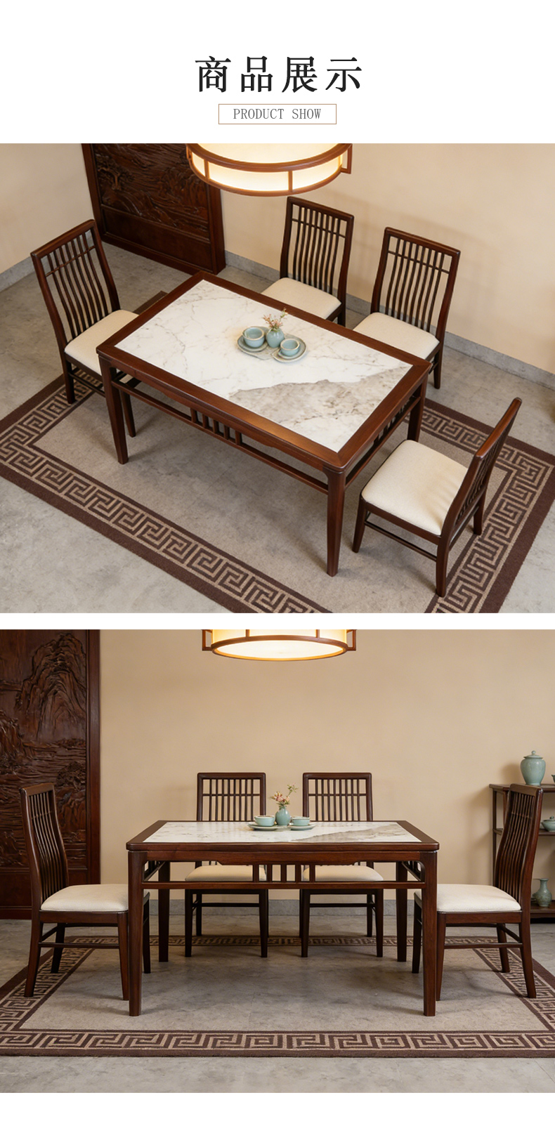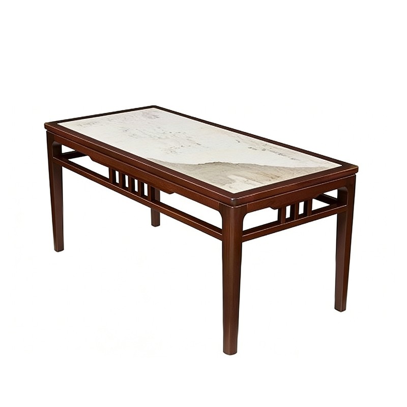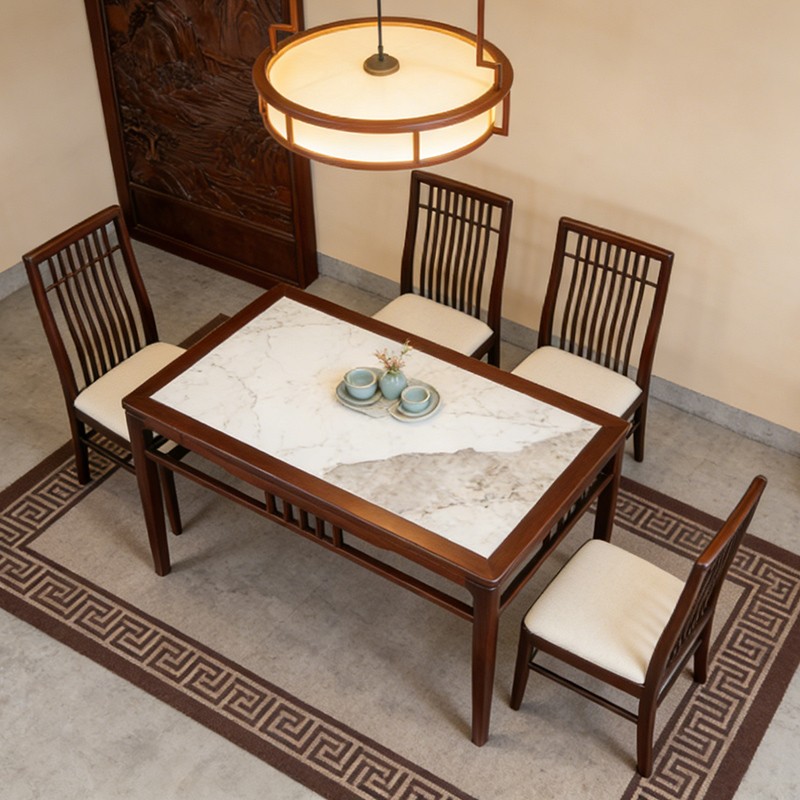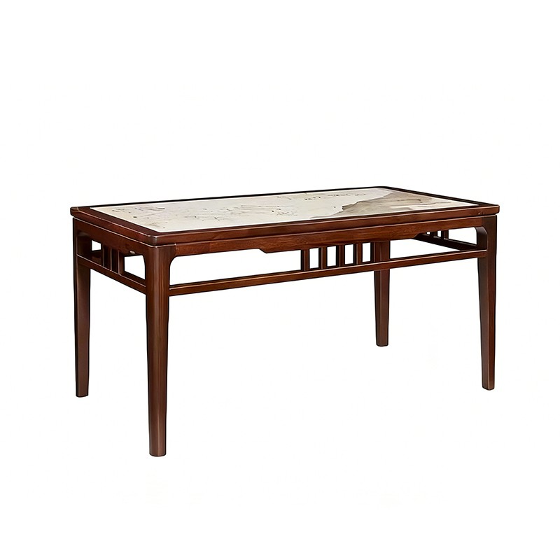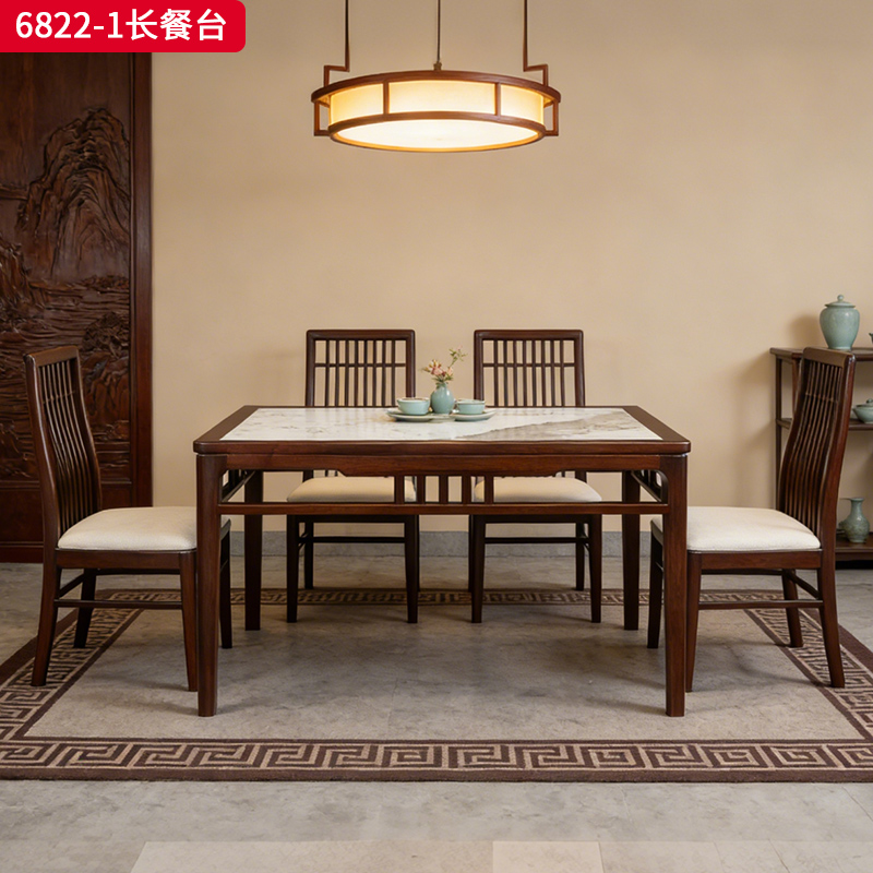 千匠一品 新中式风格 主材乌金木+辅材多层实木板贴乌金木皮+另购大理石桌面 时尚优雅石木两用餐台6820-J