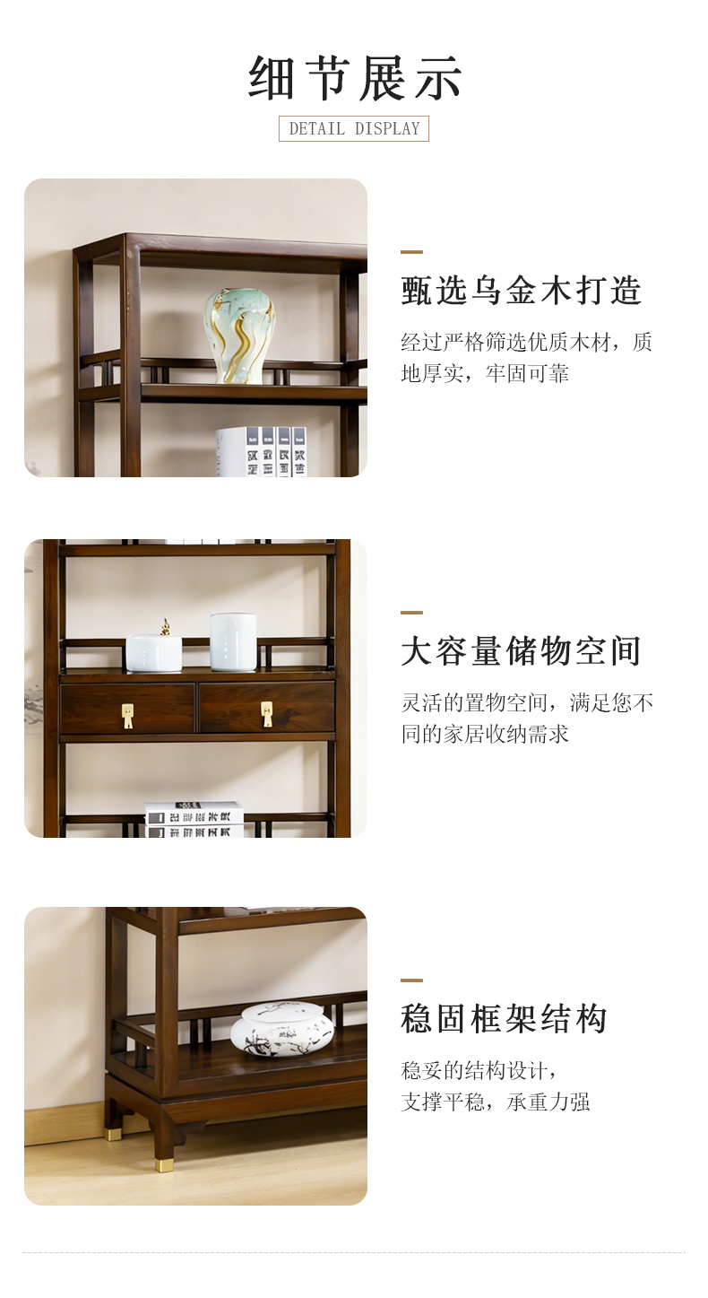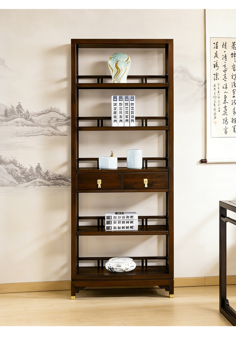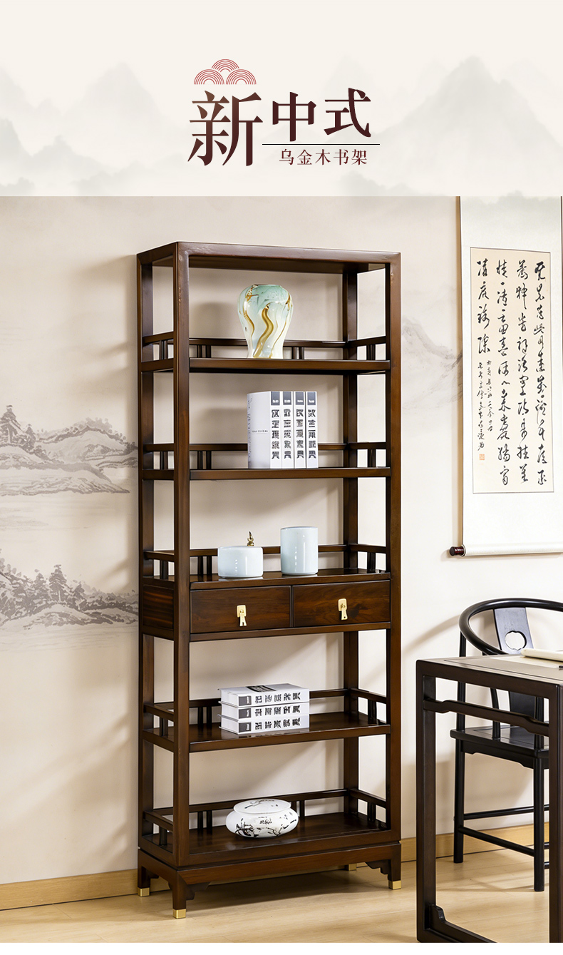 千匠一品 新中式风格 主材乌金木+辅材多层实木板贴乌金木皮+五金饰件 时尚优雅书架6827-J