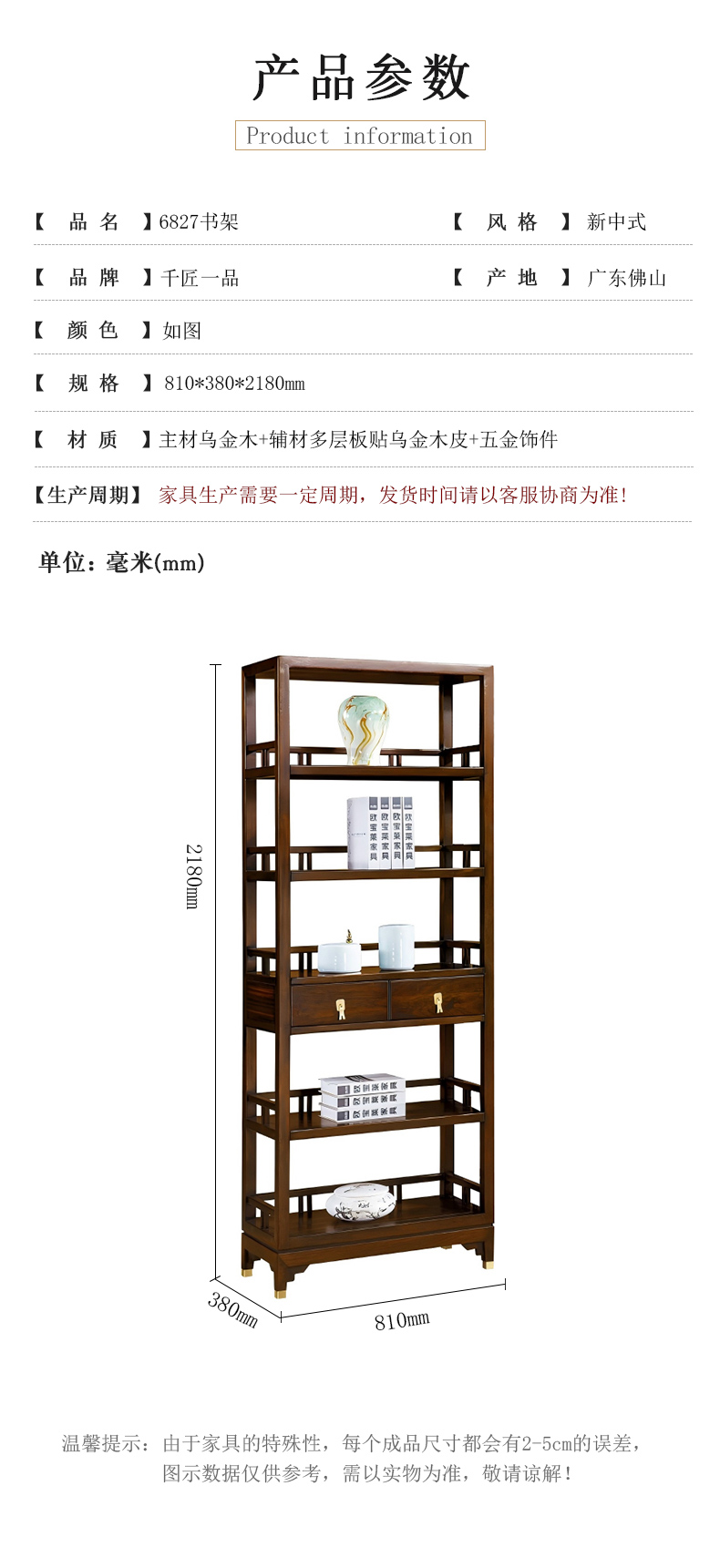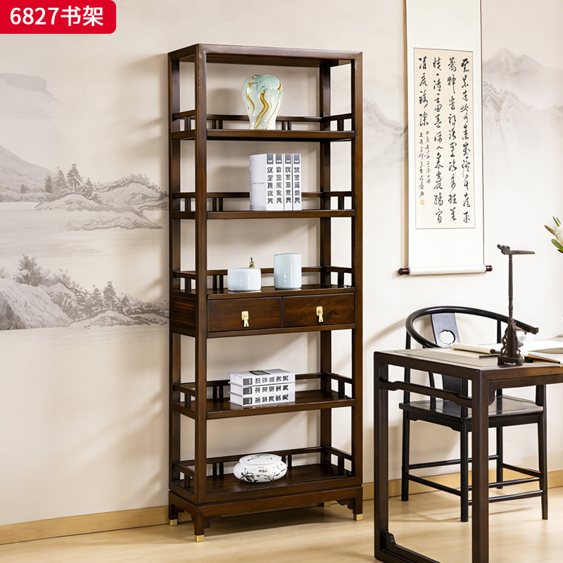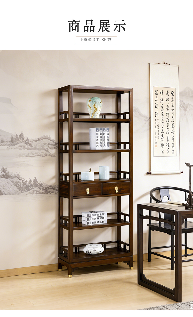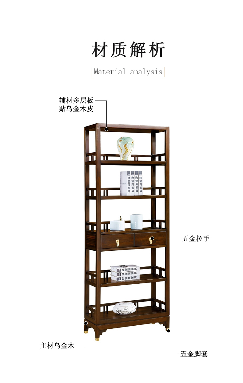商品名称:千匠一品 新中式风格 主材乌金木+辅材多层实木板贴乌金木皮+五金饰件 时尚优雅书架6827-J
