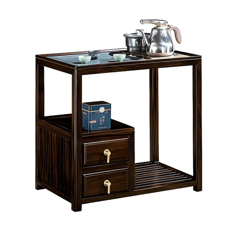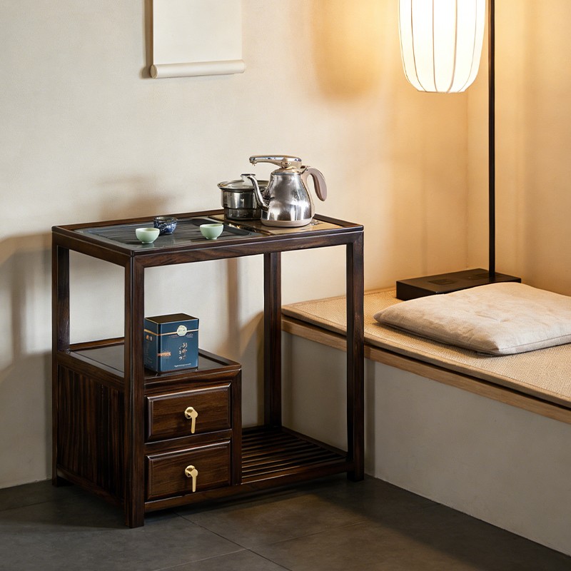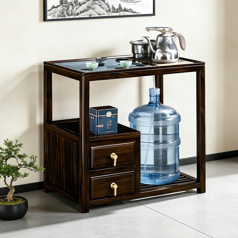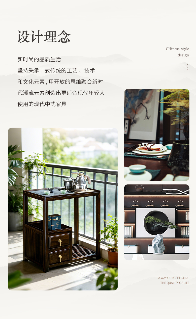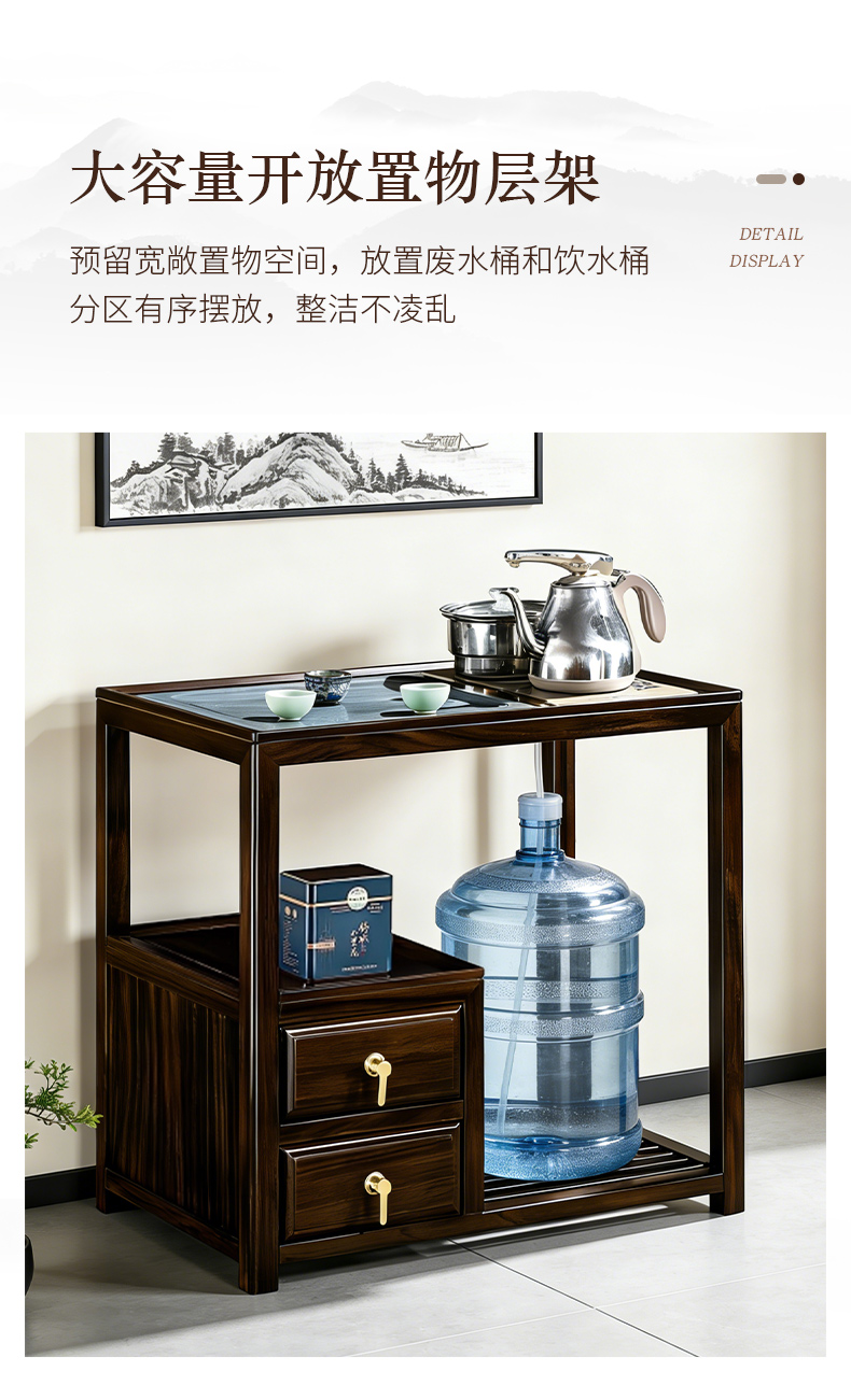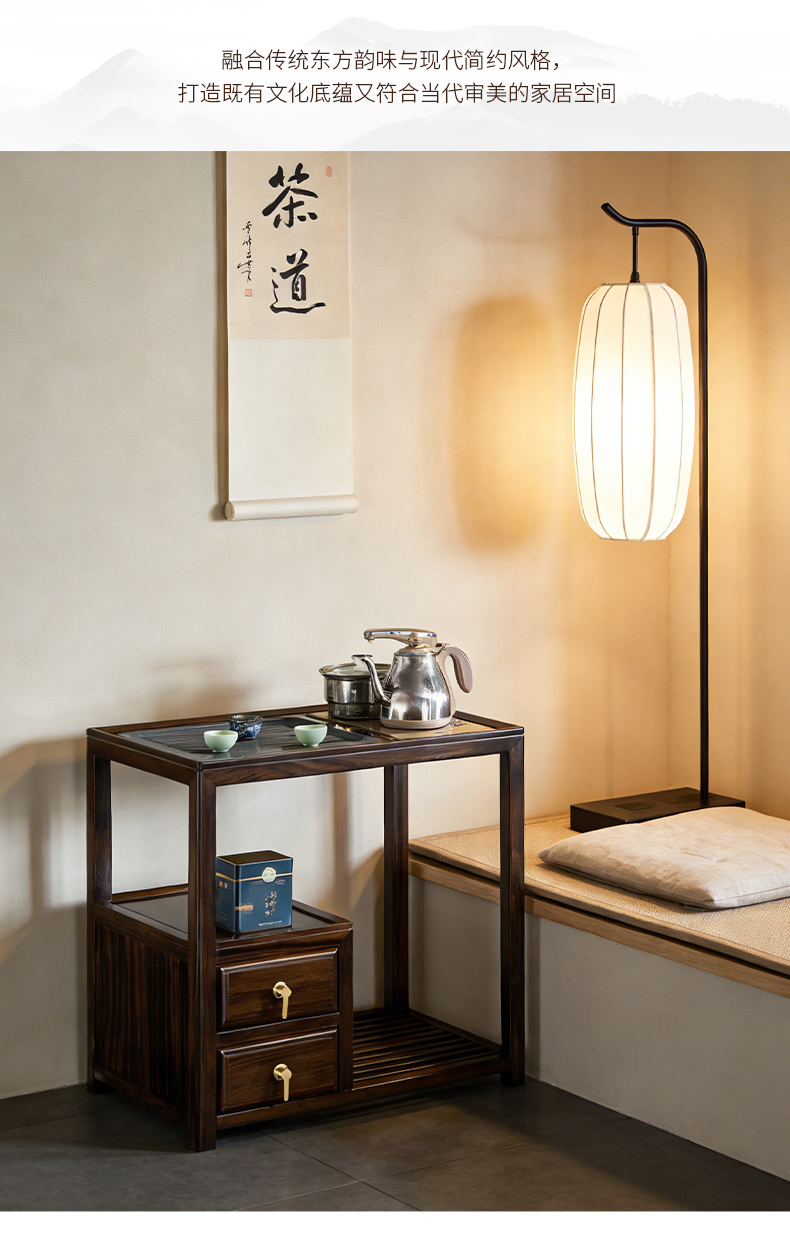 千匠一品 新中式风格 主材乌金木+辅材多层实木板贴乌金木皮+铜拉手+智能茶炉 时尚优雅茶水柜9612-J