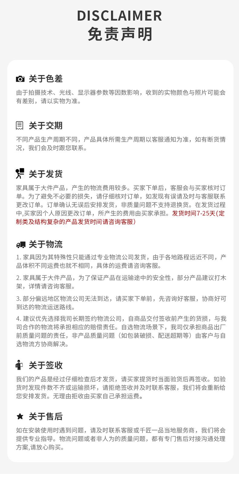 千匠一品将您购买的商品配送到家并安装,需注意该服务仅限电梯入户,若为步梯搬楼请事先与客服沟通。