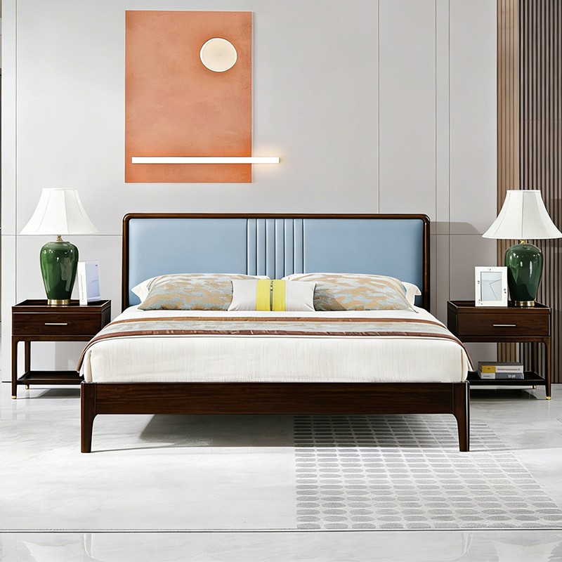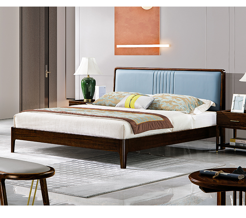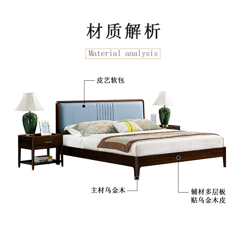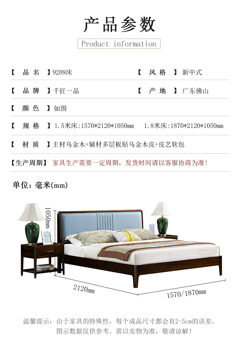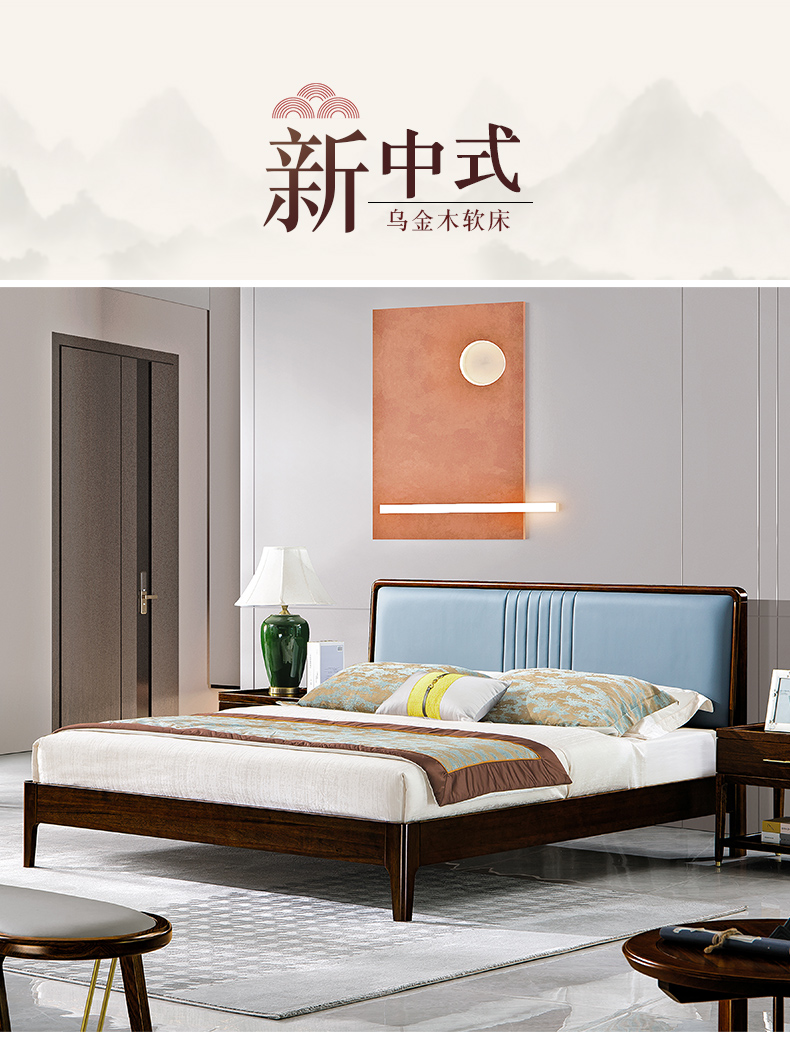 商品名称:千匠一品 新中式风格 主材乌金木+辅材多层板贴乌金木皮+皮艺软包 时尚大气床9209-L