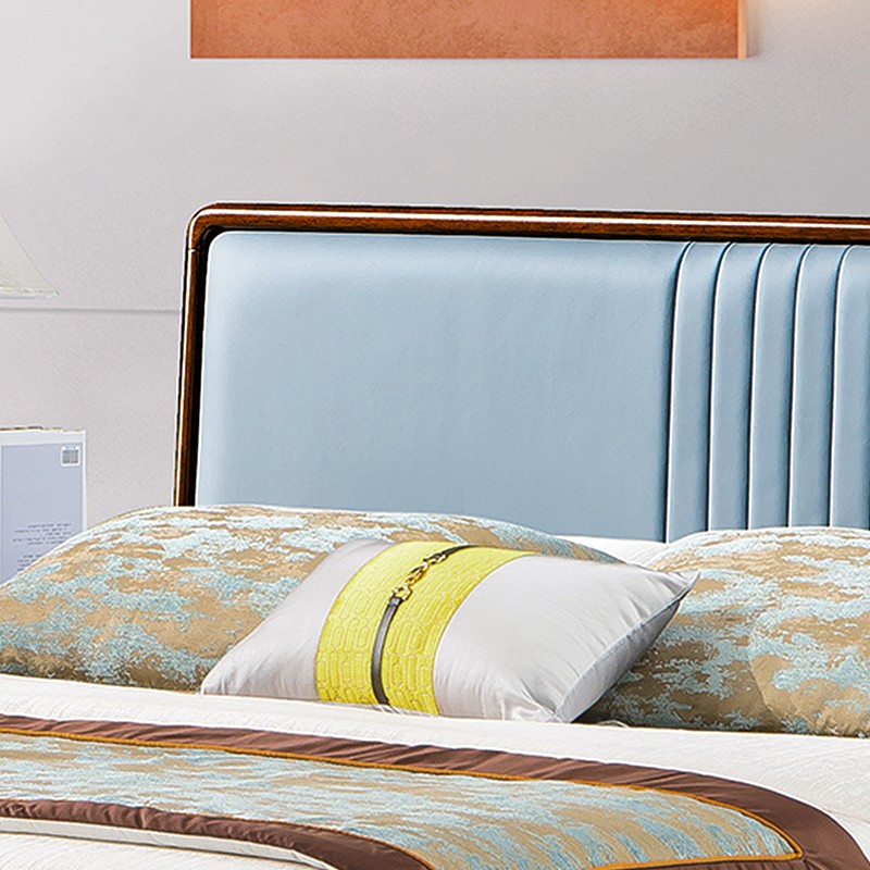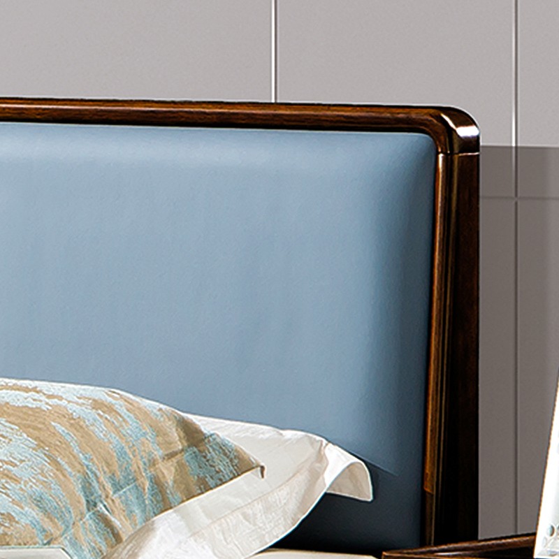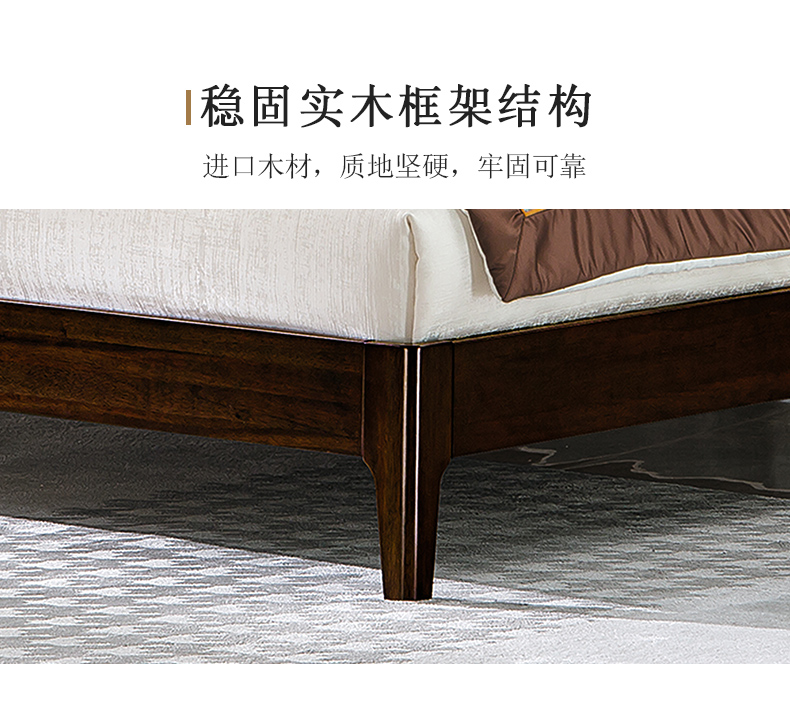 千匠一品 新中式风格 主材乌金木+辅材多层板贴乌金木皮+皮艺软包 时尚大气床9209-L