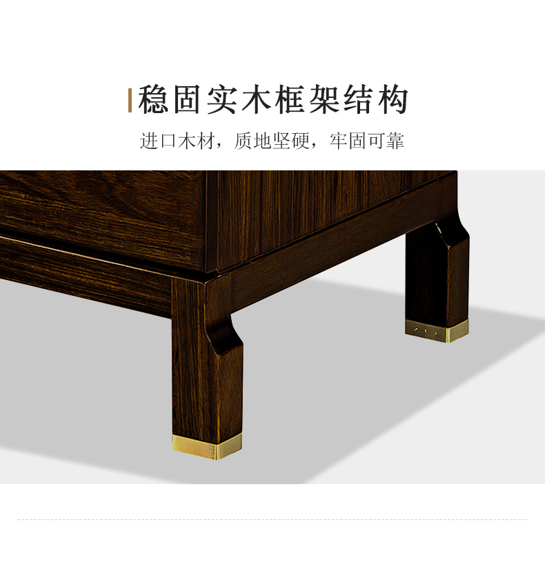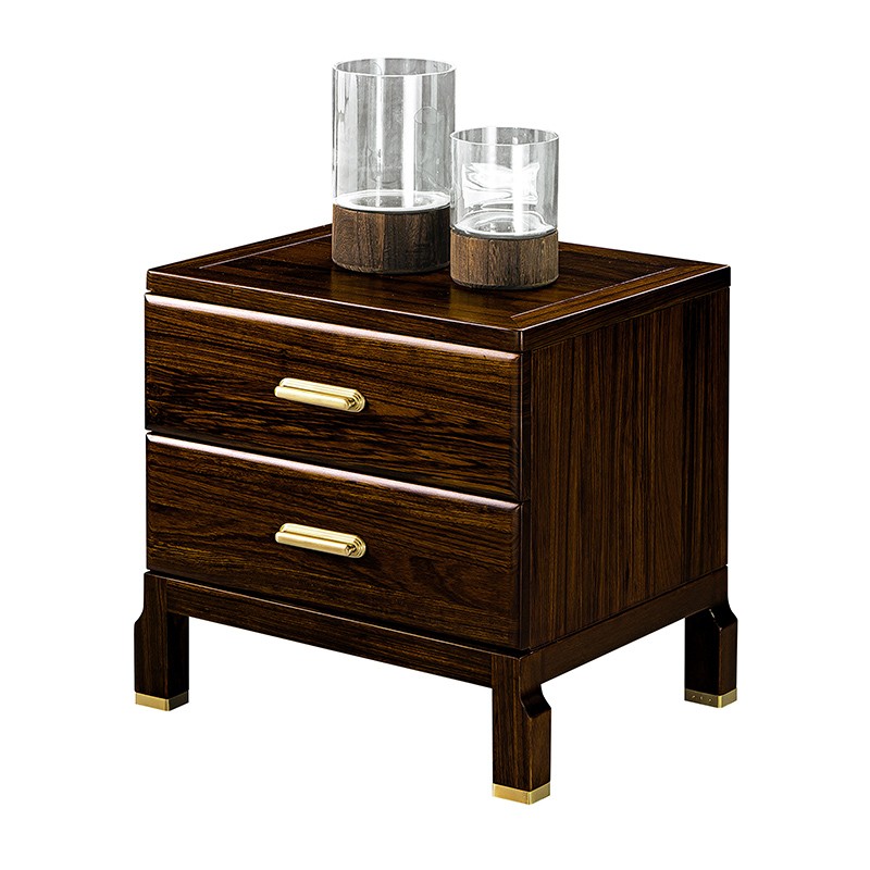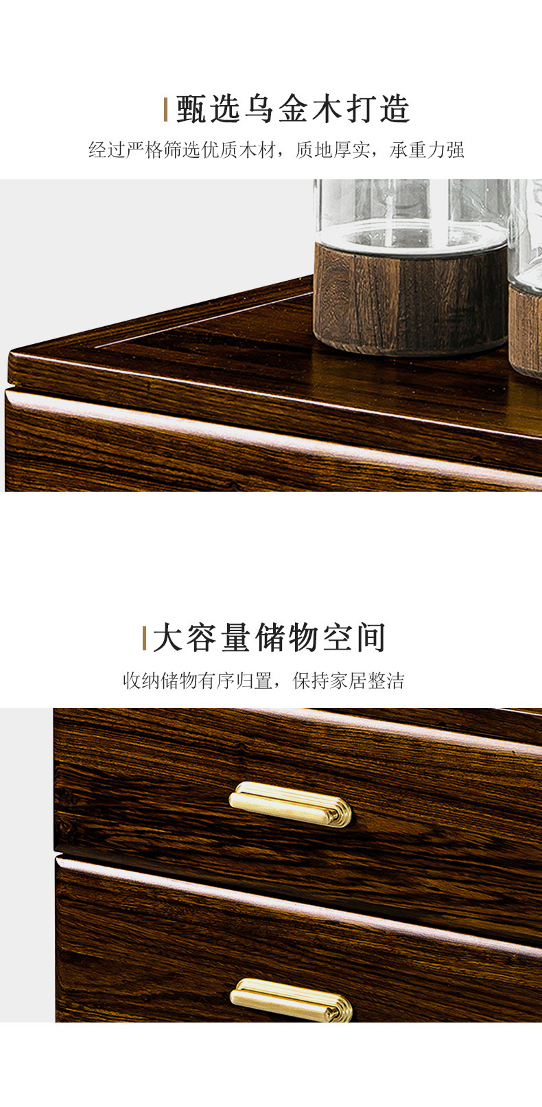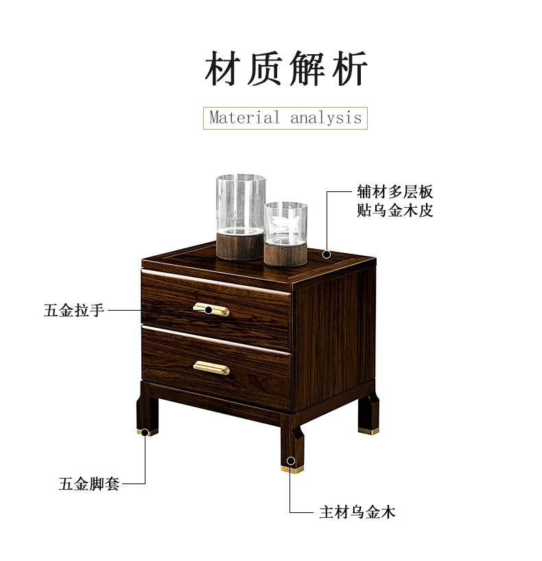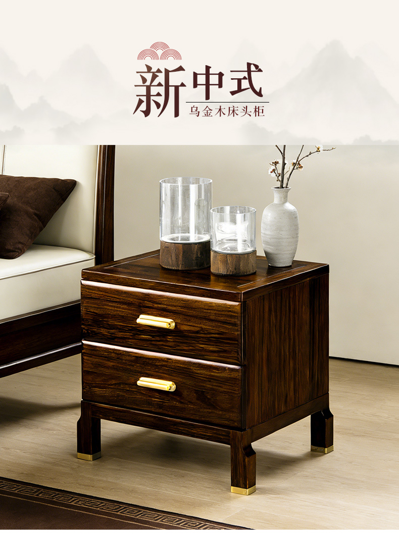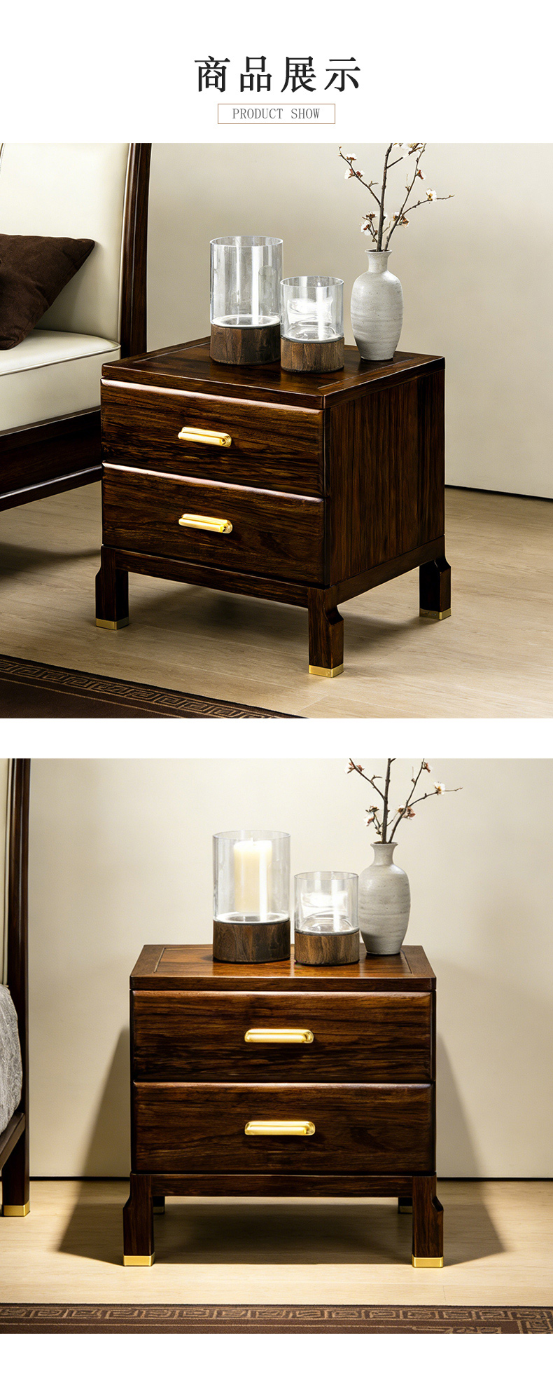 千匠一品 新中式风格 主材乌金木+辅材多层板贴乌金木皮+五金饰件 时尚大气床头柜9232-L